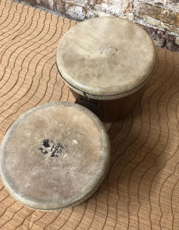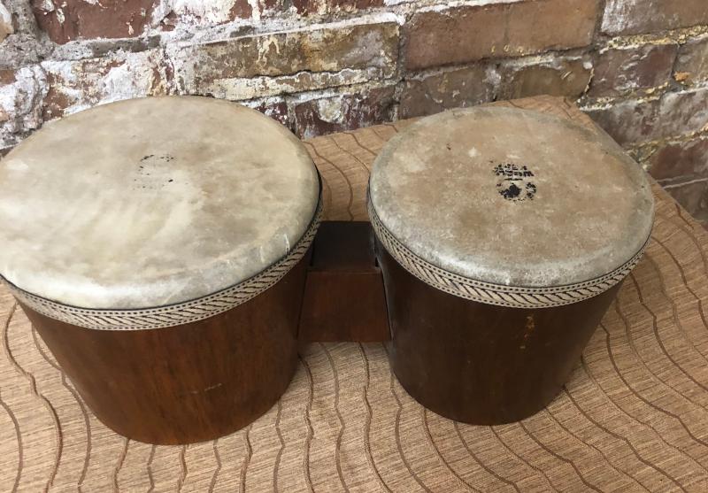 Here is an authentic pair of wooden Bongo Drums...Vintage...Good used condition....