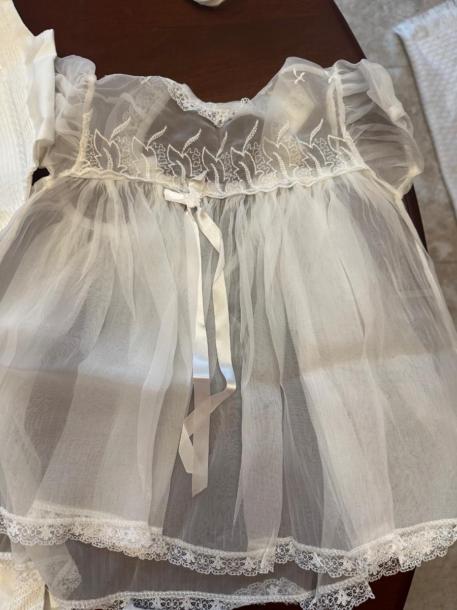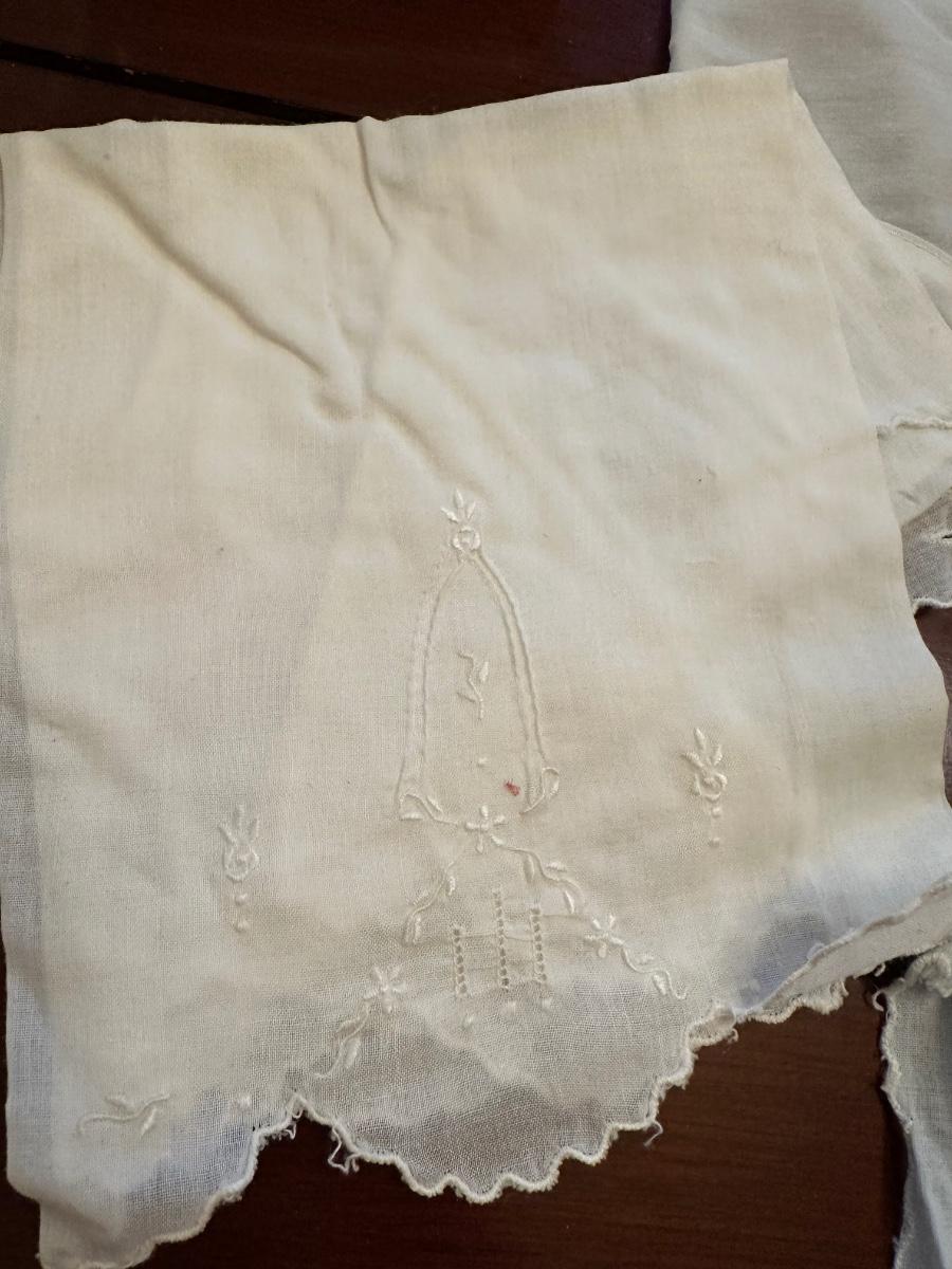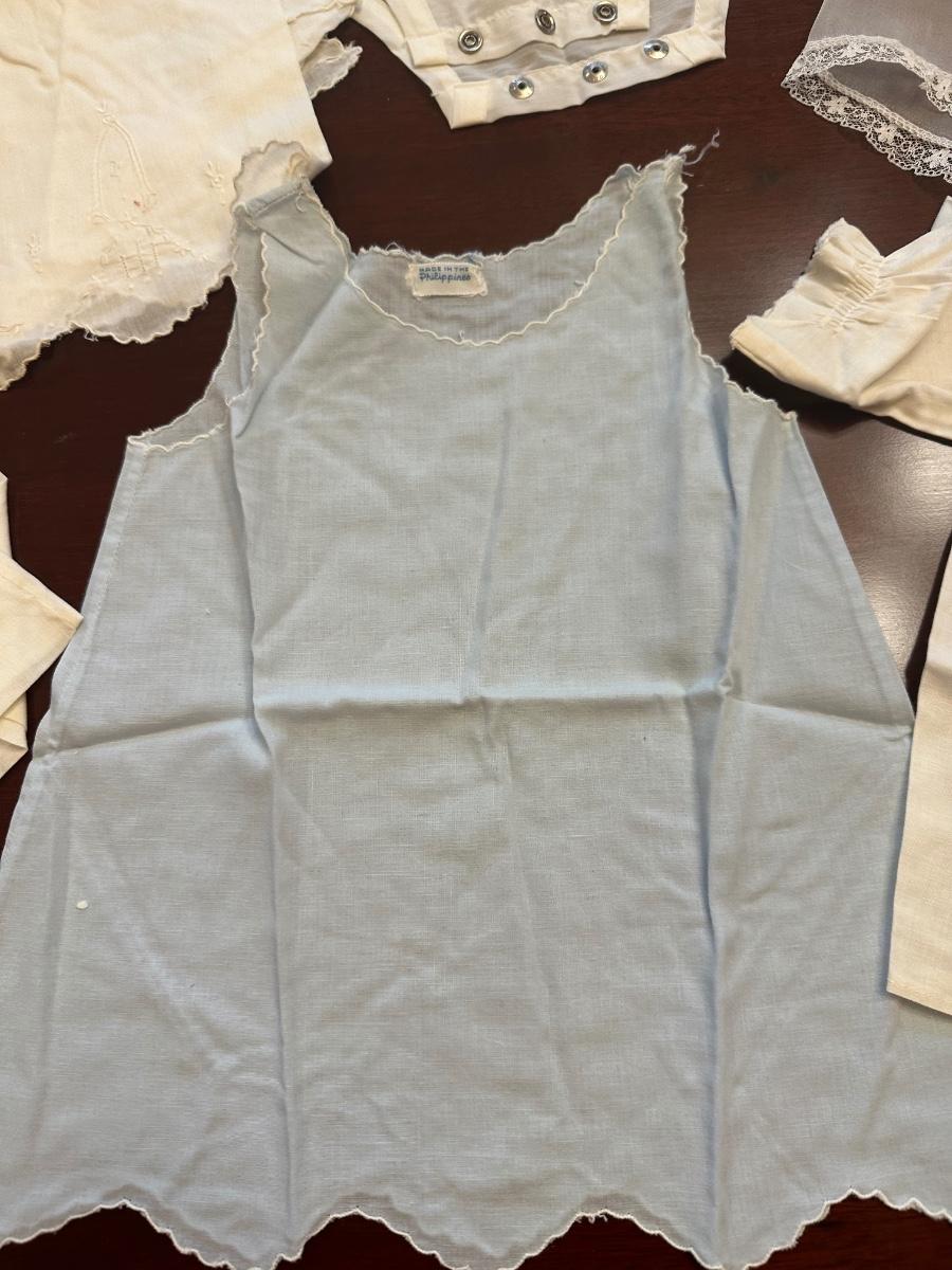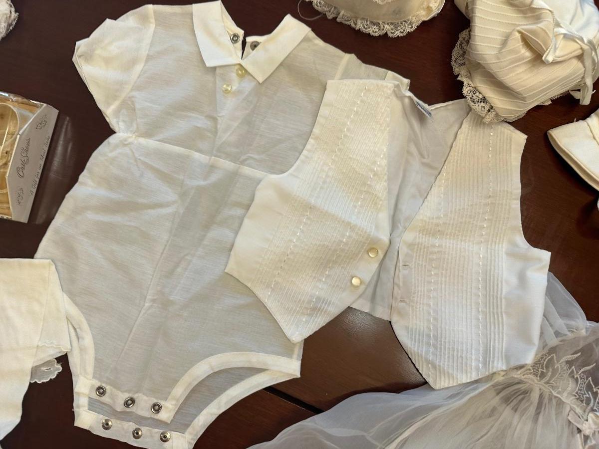 No stains. All beautiful handmade infant outfits, shoes (size 0) and bonnets.