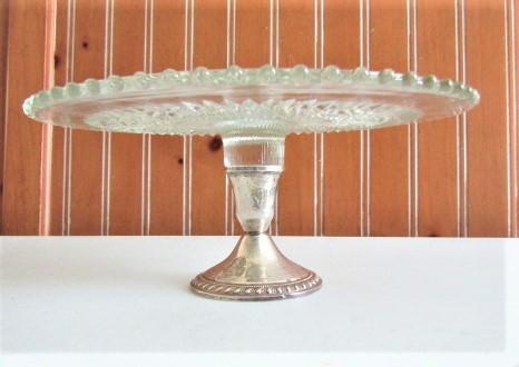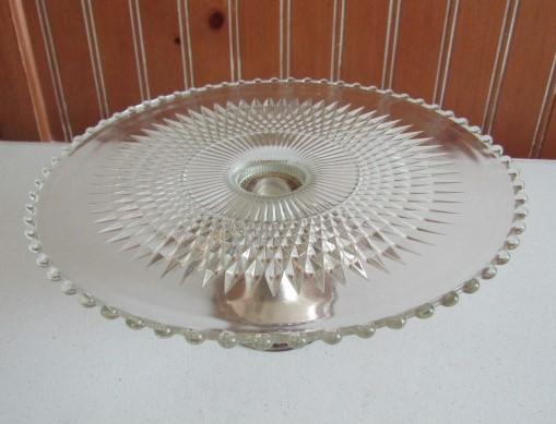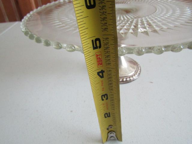 Vintage Imperial Candlewick Glass Cake Plate with Weighted Sterling Pedestal 11"
