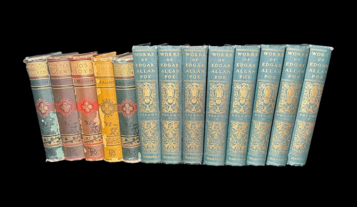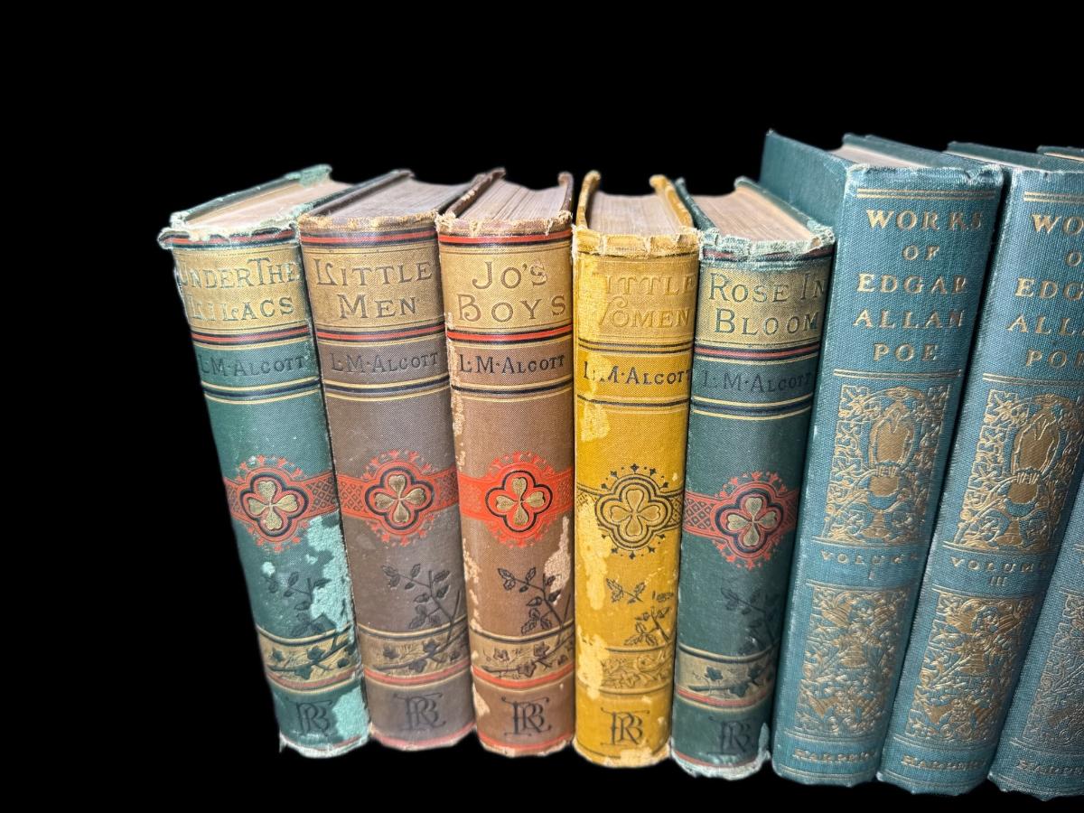 Includes the Works of Edgar Allen Poe (eight books); and a series by Louisa M. Alcott (Little Women, Little Men, Jo’s Boys, Under the Lilacs, and Rose in Bloom). Total of 13 books. Age related wear. [CS]