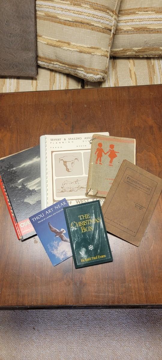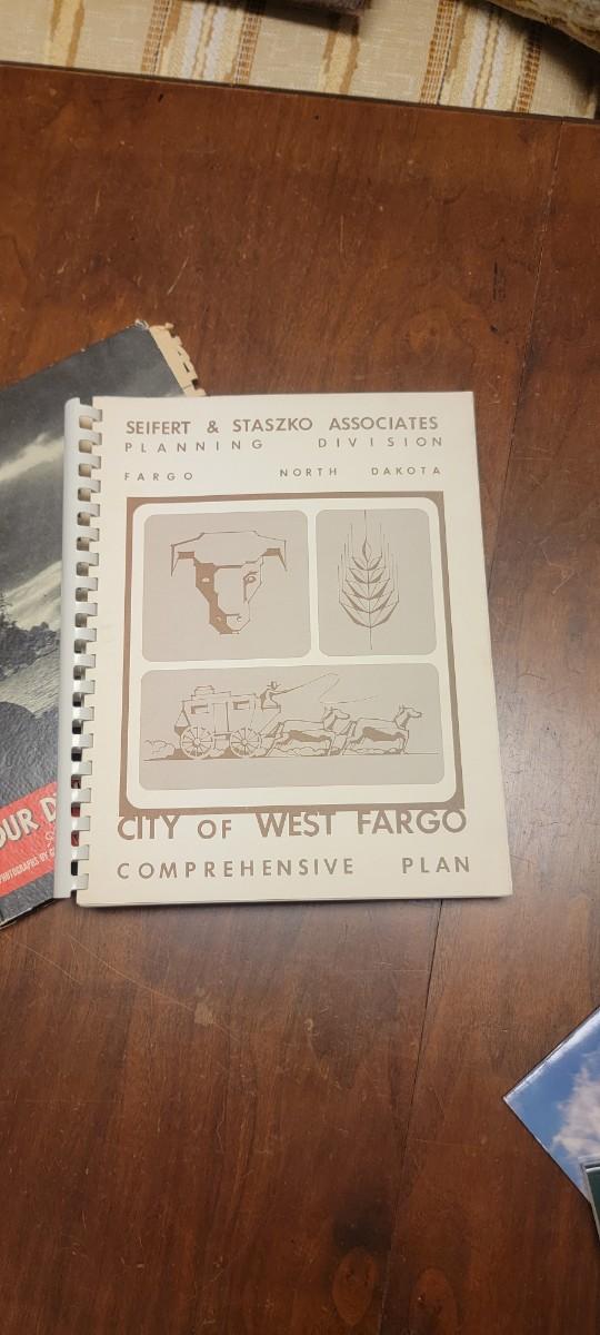 Vintage books, "Our Dwelling Place" , "City of West Fargo Comprehensive Plan" and more.