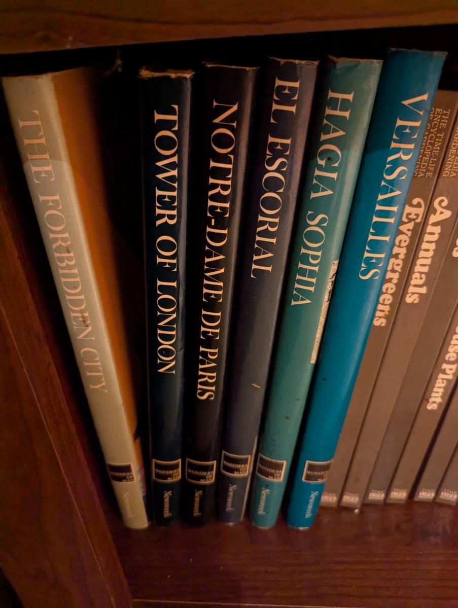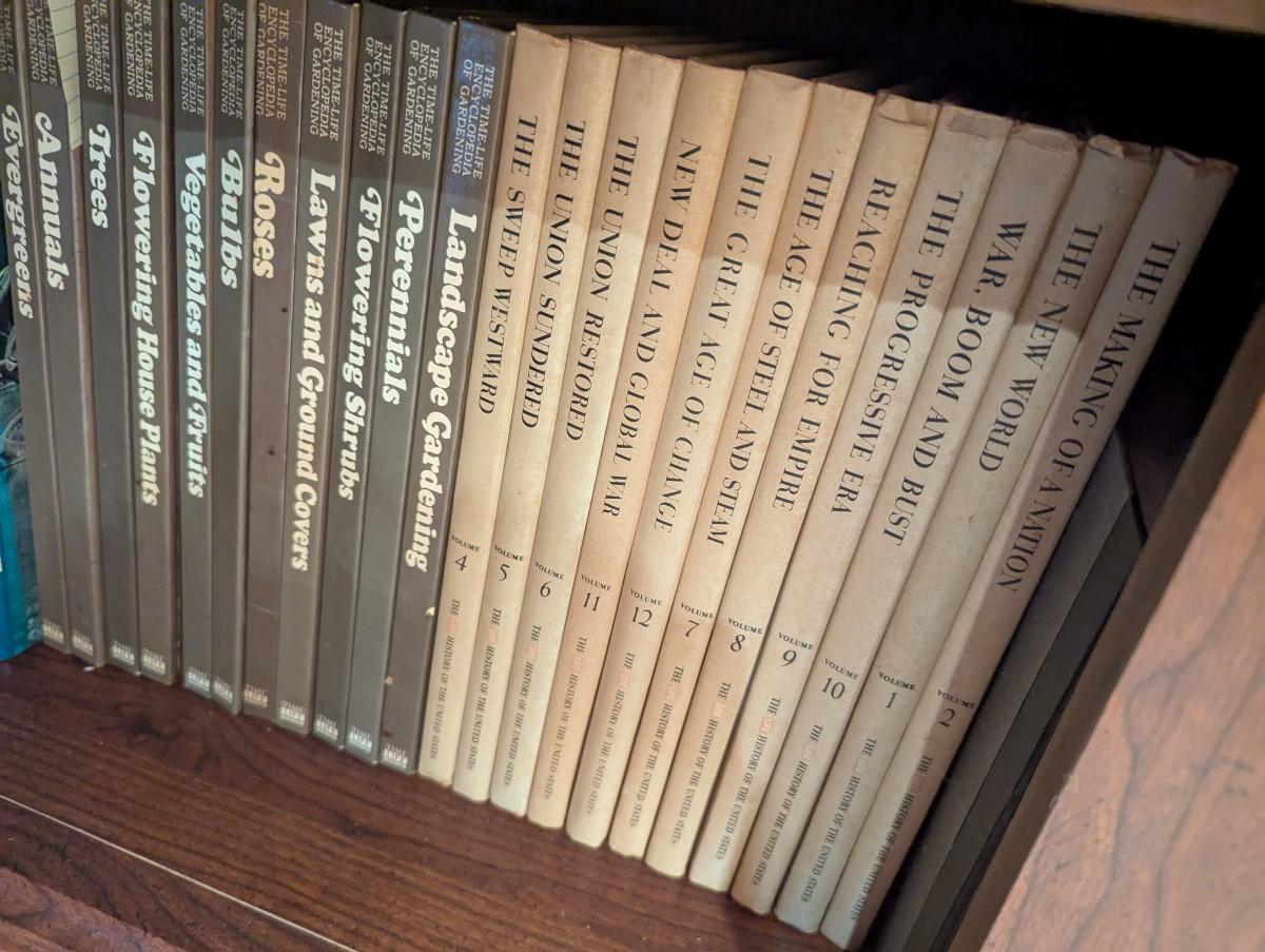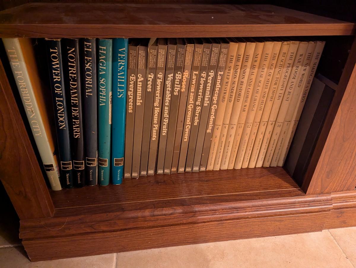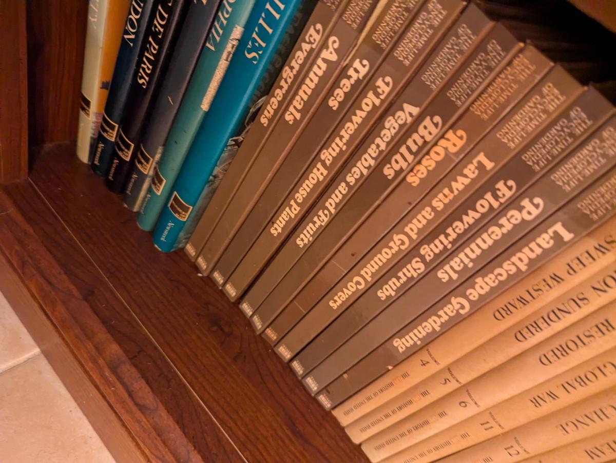 Books have been stored down stairs and have foxing - - Books are down stairs there is a sliding door to go out at the back of the house and go up some stairs to the driveway