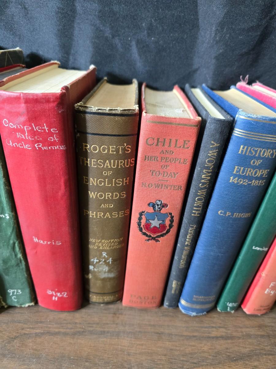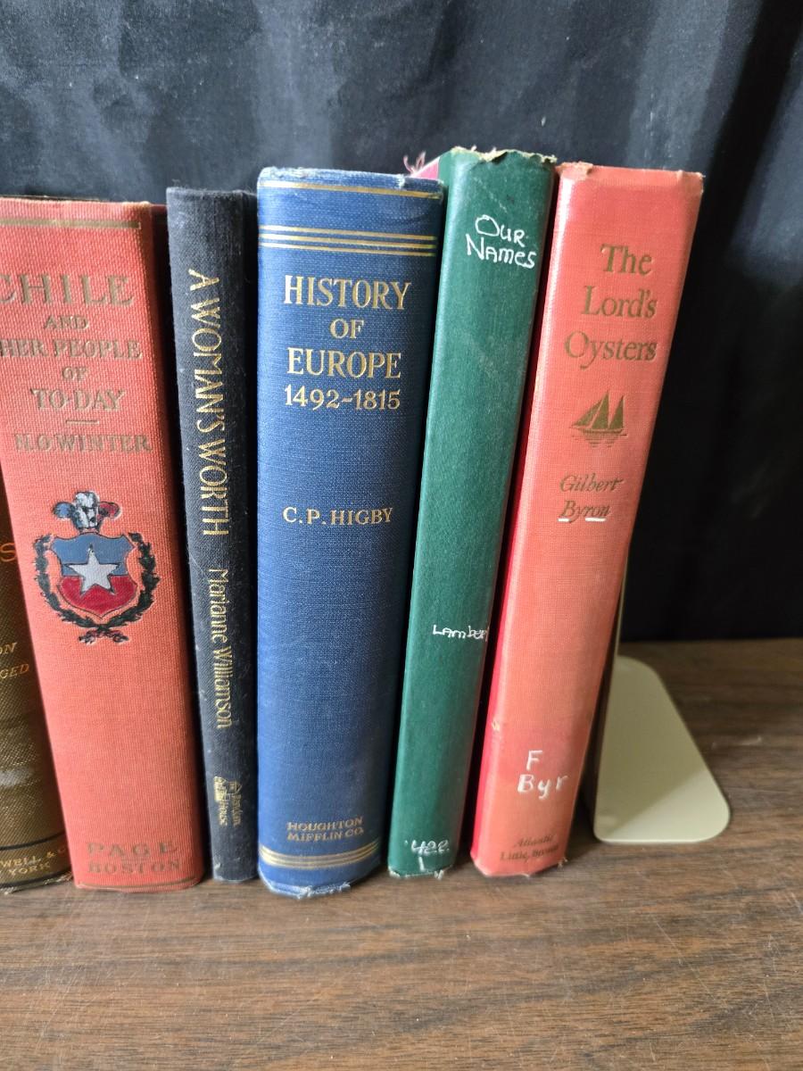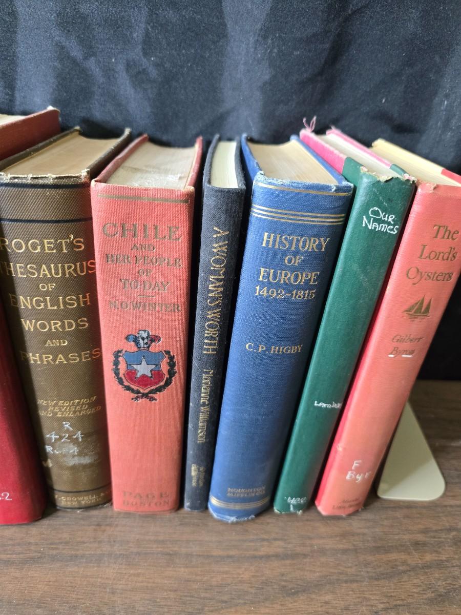 Vintage books - mostly all history - History of Europe - Chile - Thesaurus of English words and others