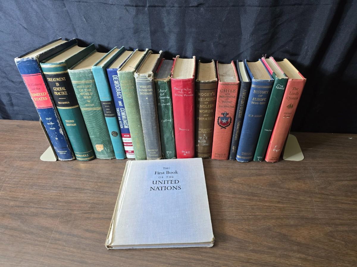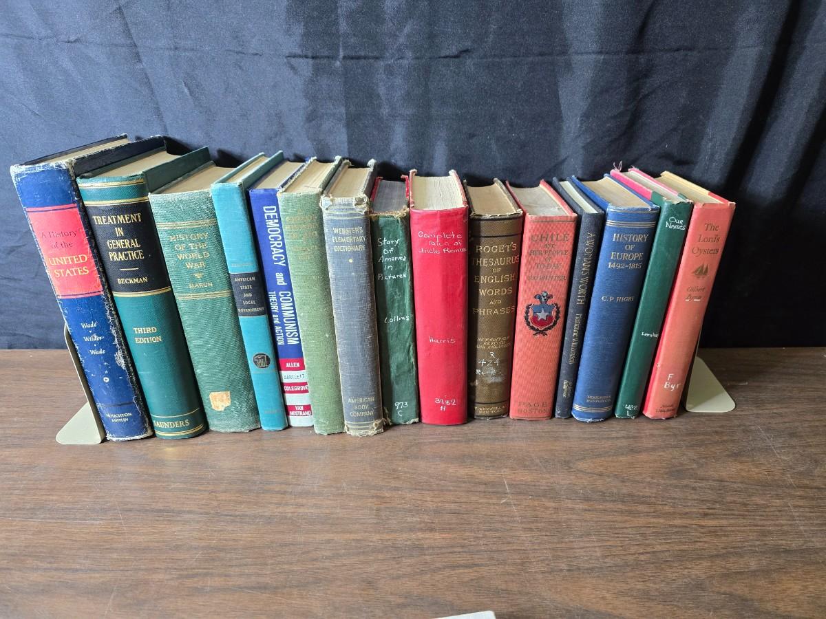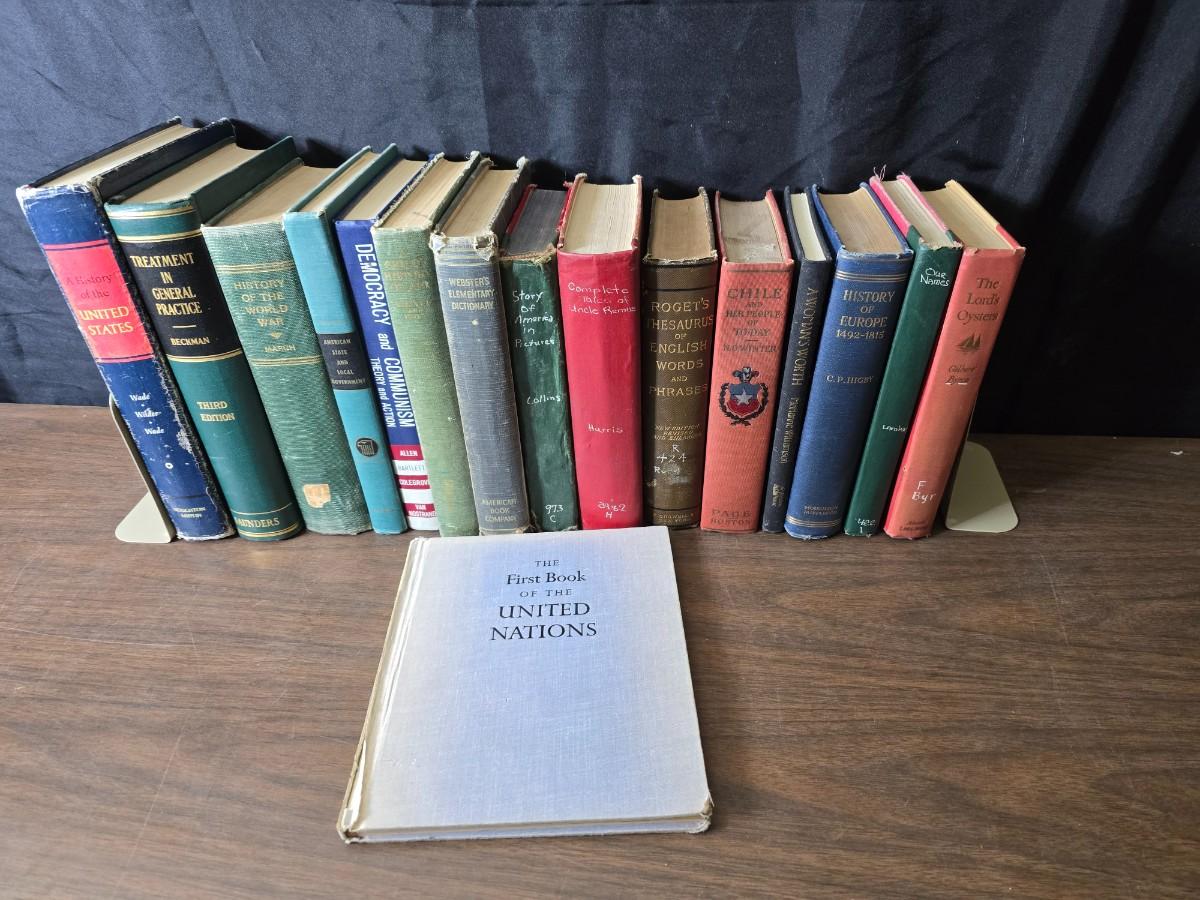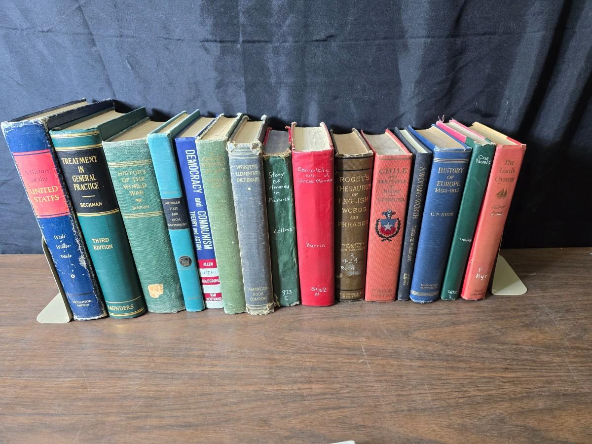 Vintage books - mostly all history - History of Europe - Chile - Thesaurus of English words and others