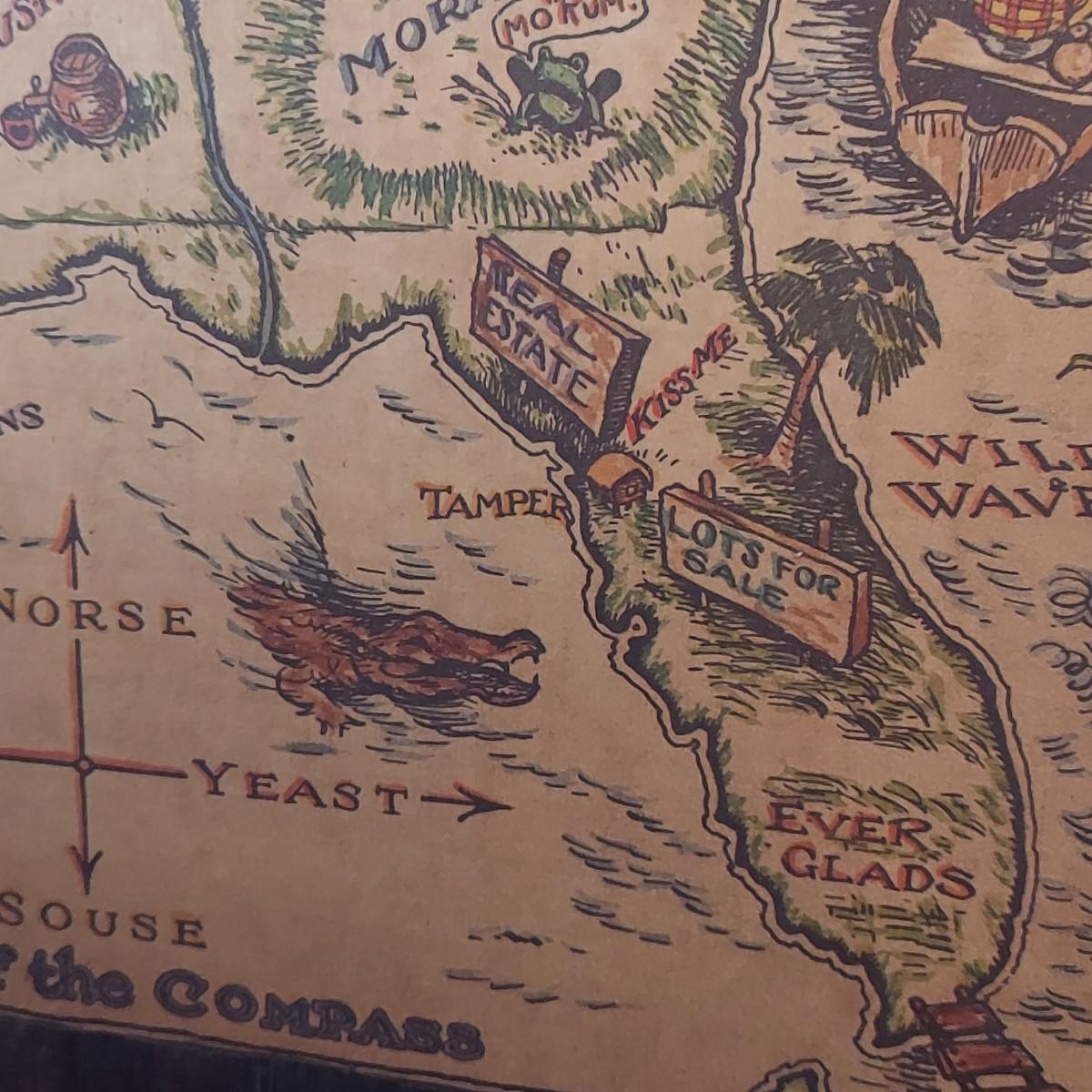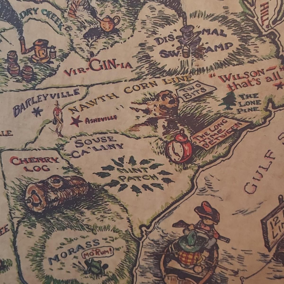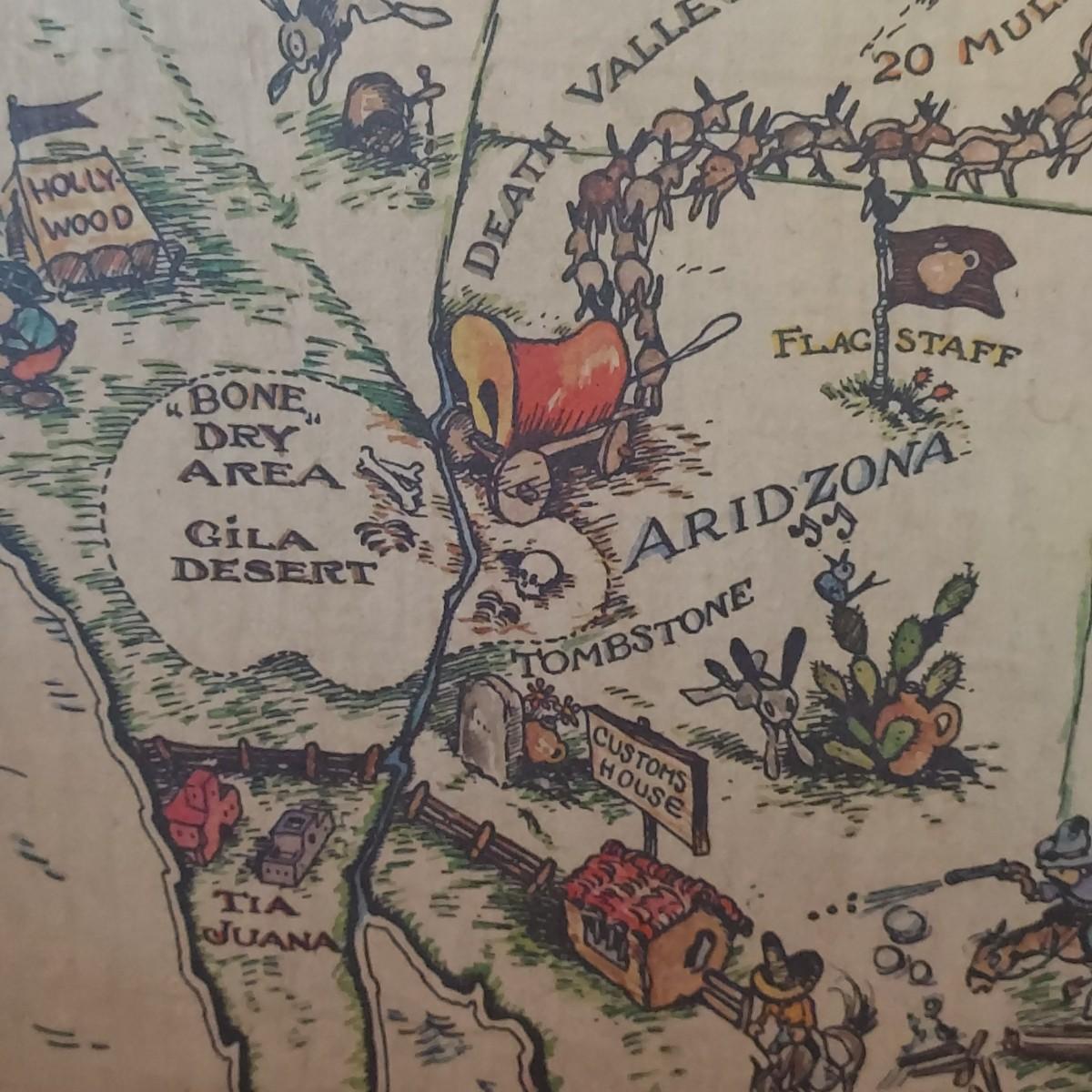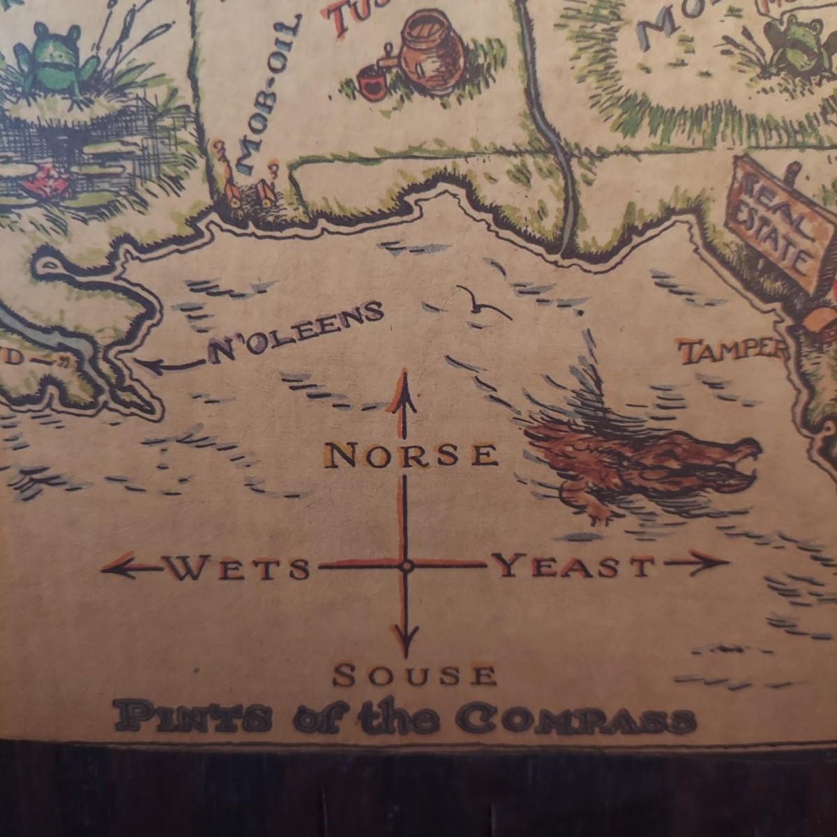 Large novelty bootlegger's map mounted on wood that measures 29” x 19"H. With a wooden ice bucket, glass drink Shaker and more. Please see photos for details. Shipping available