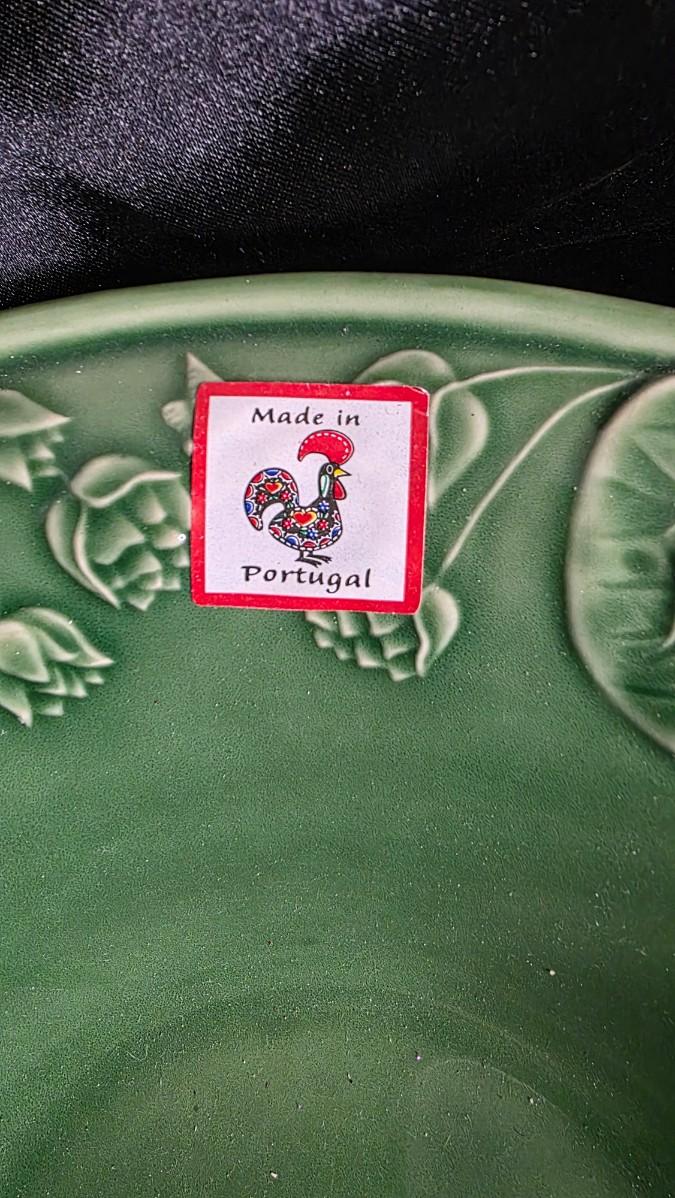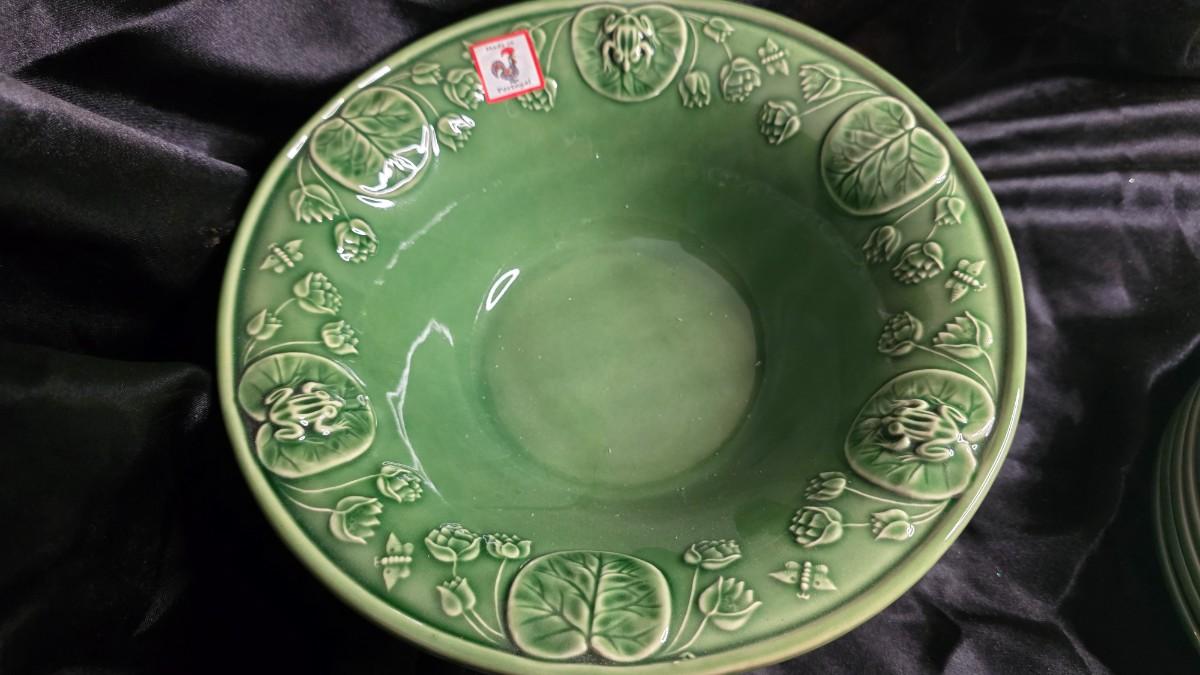Comps: Vintage Bordallo Pinheiro frog lily leaf majolica serving bowls (11" embossed green, pattern 010) sell $70–$140 on eBay/Etsy