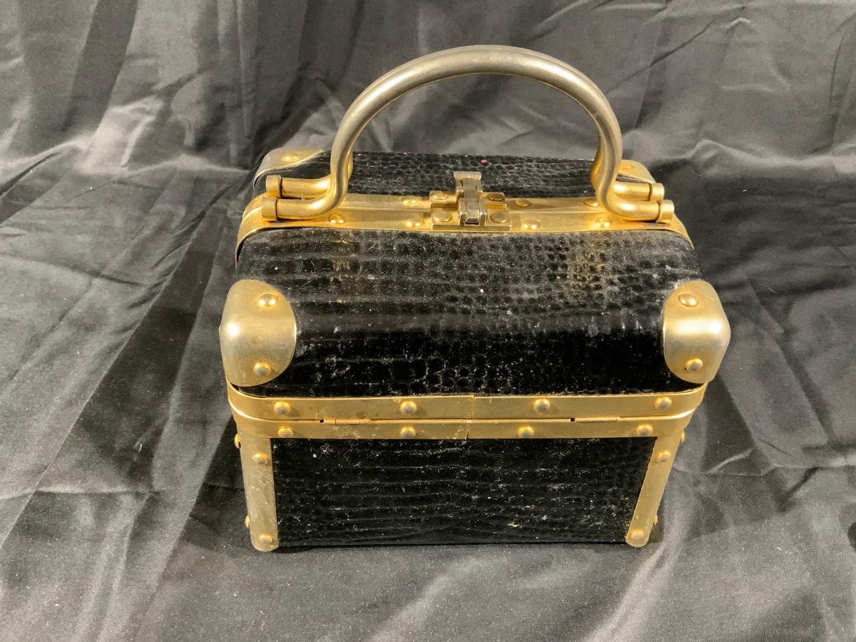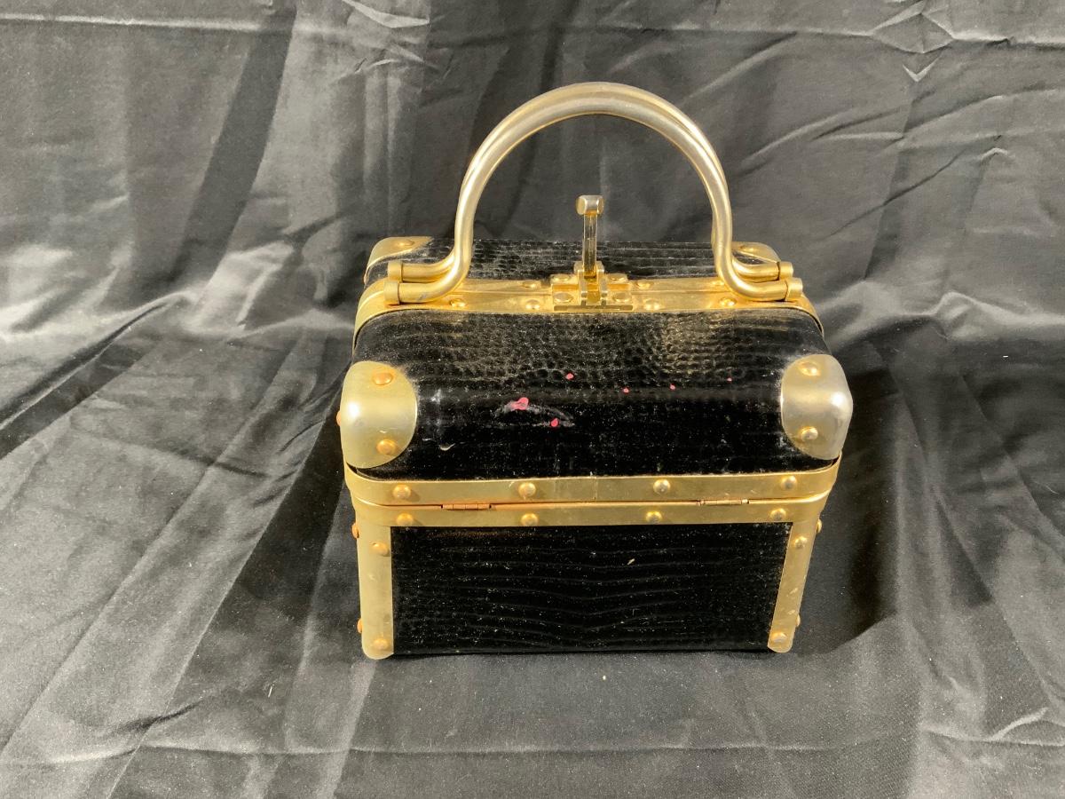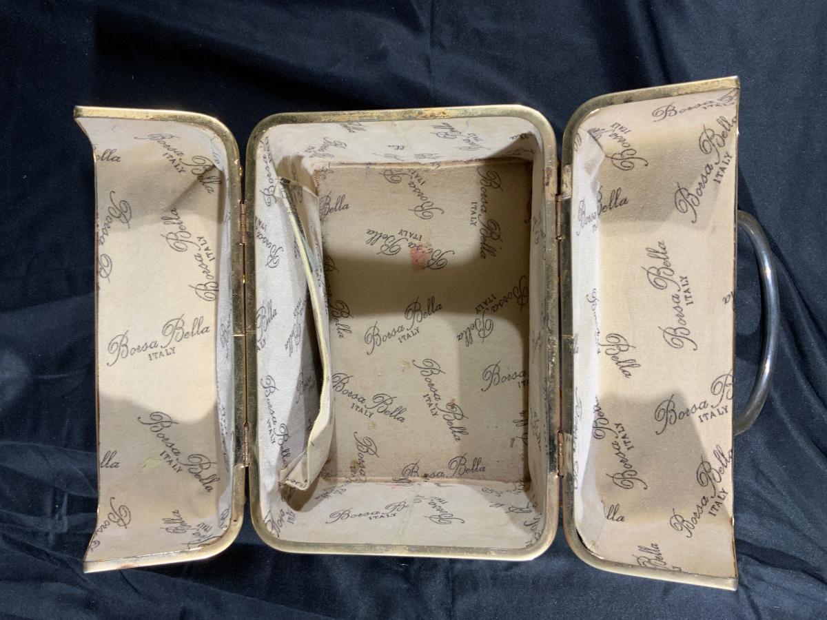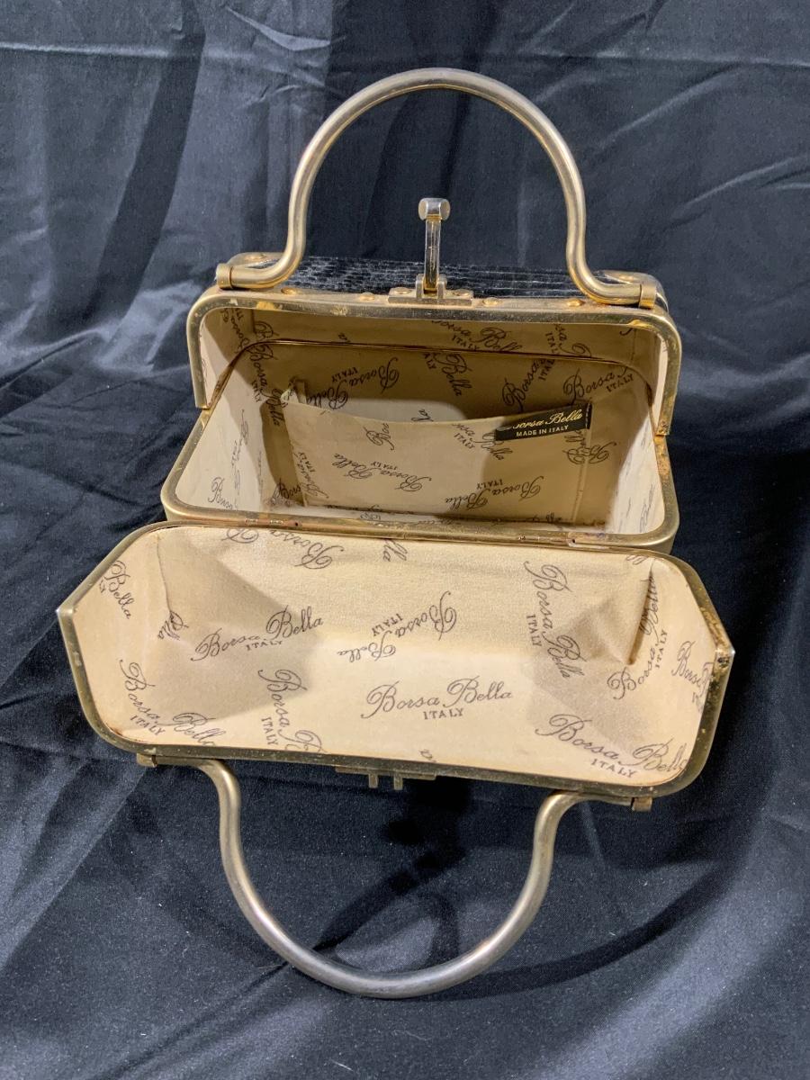 Vintage Borsa Bella Italy box purse in gold and black embossed