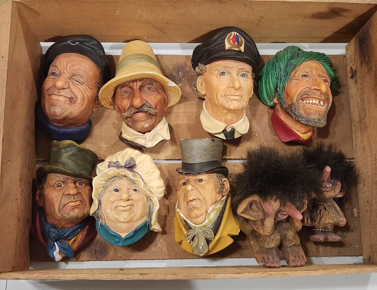 Vintage Bossons Chalkware Wall Hanging Heads - Lot of 9 - Condition: as is