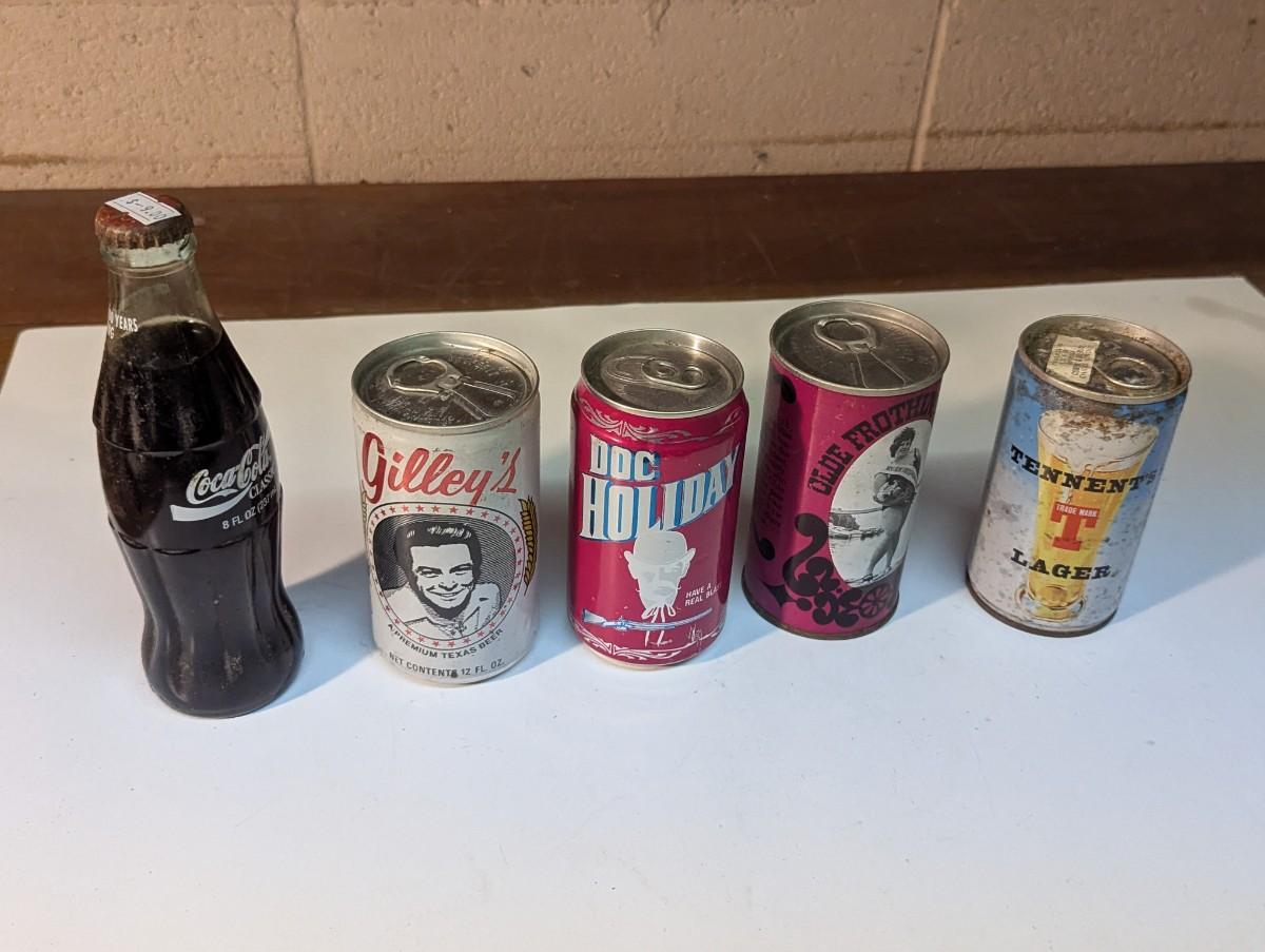 Vintage Bottle & Cans Gilley's Doc Holiday Tennent's Larger Olde Frothingslosh