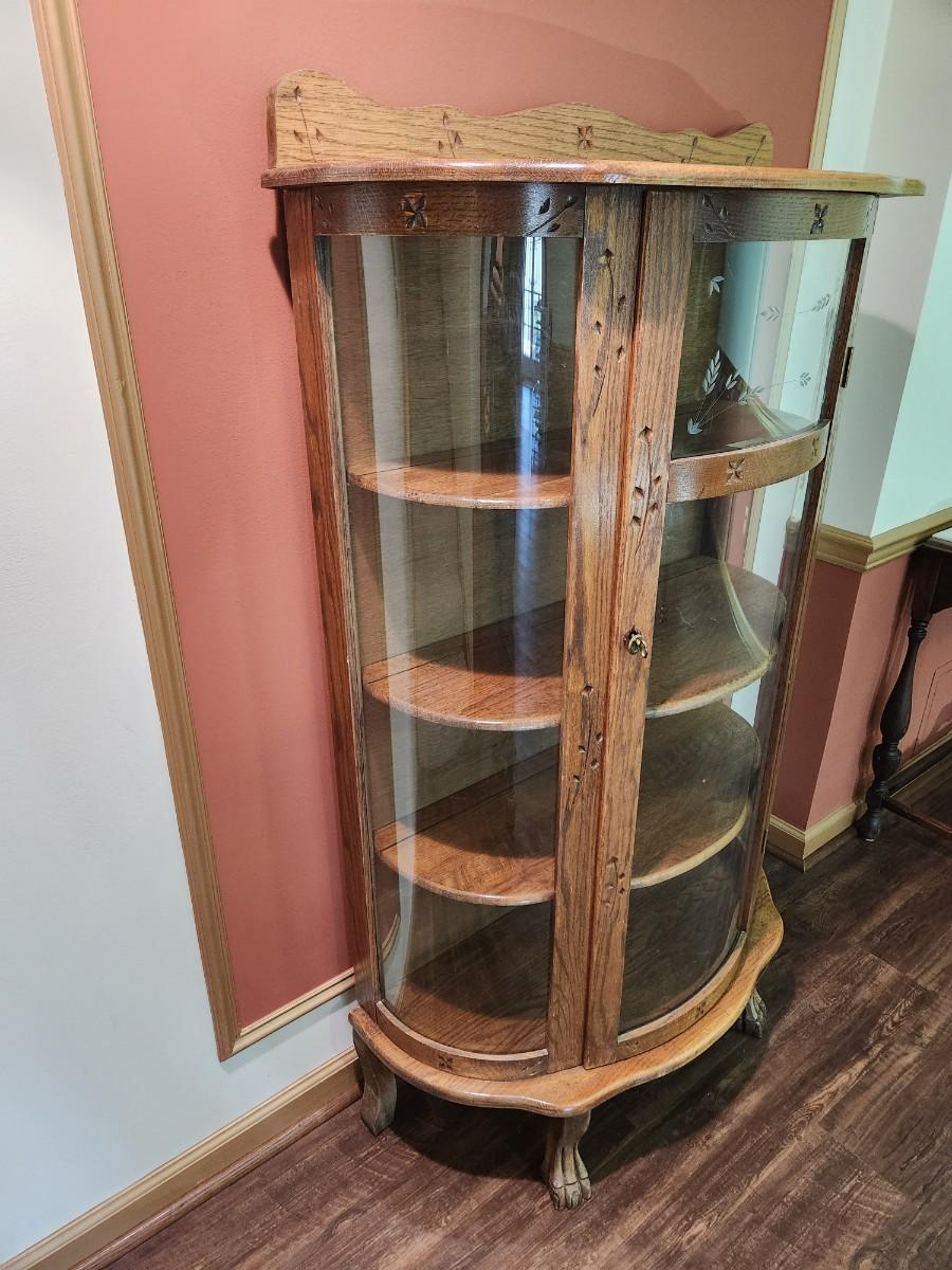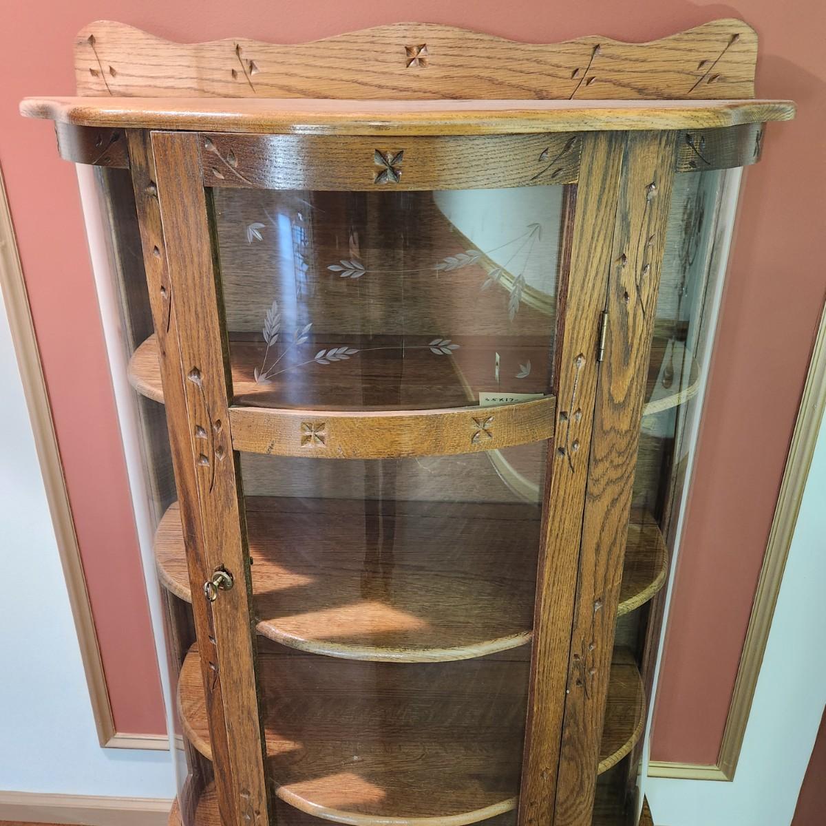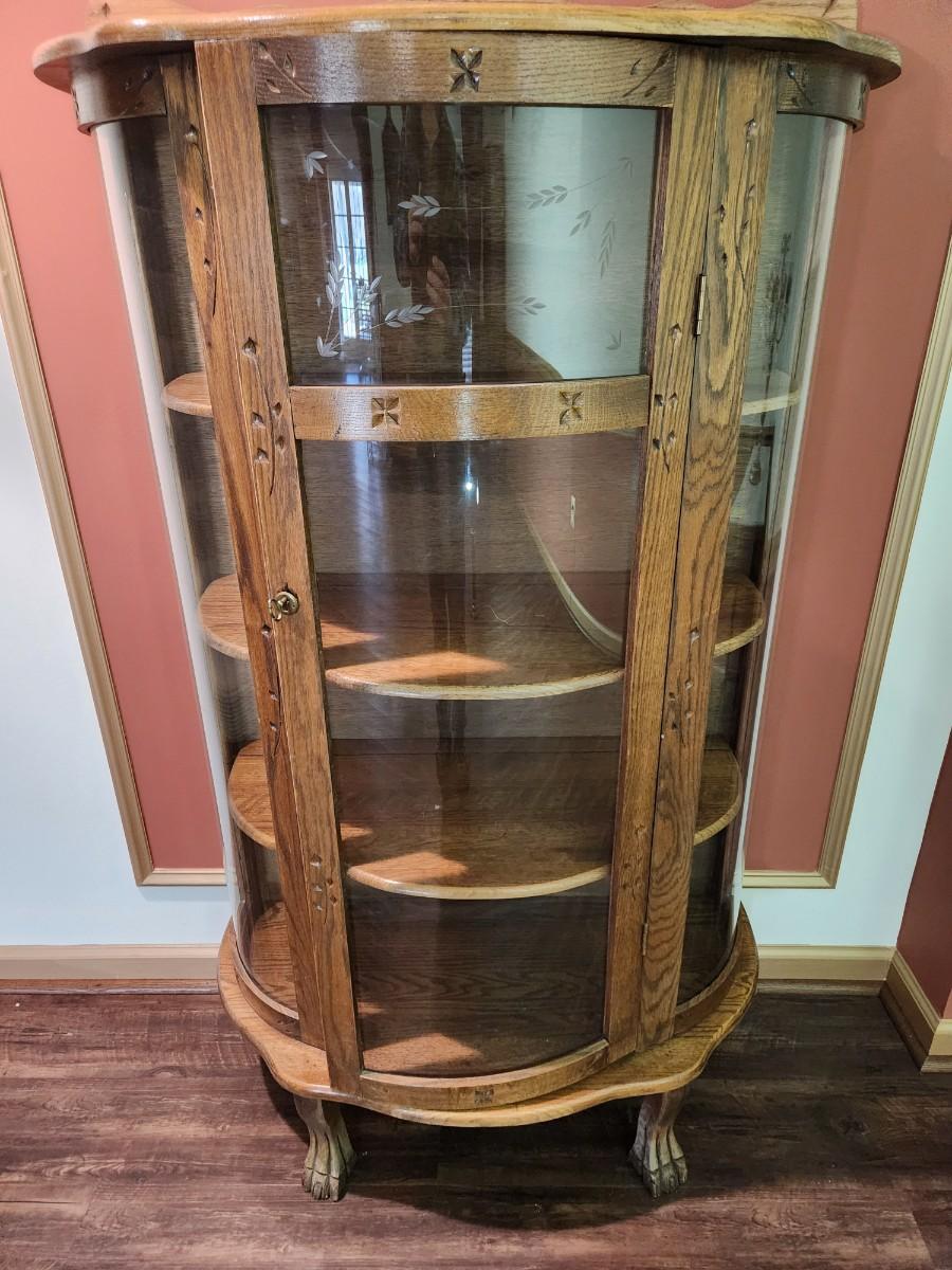 Vintage Bow Front Curio Cabinet 4 Shelves Etched Glass 35x17x62