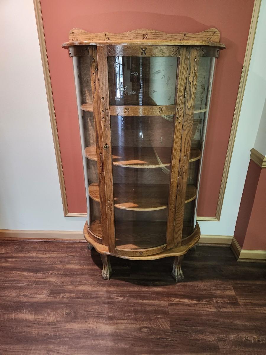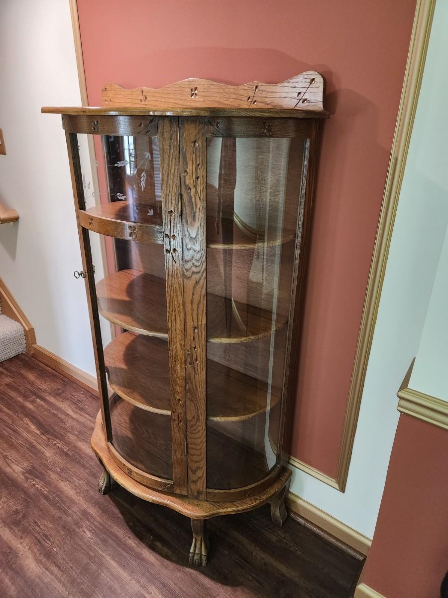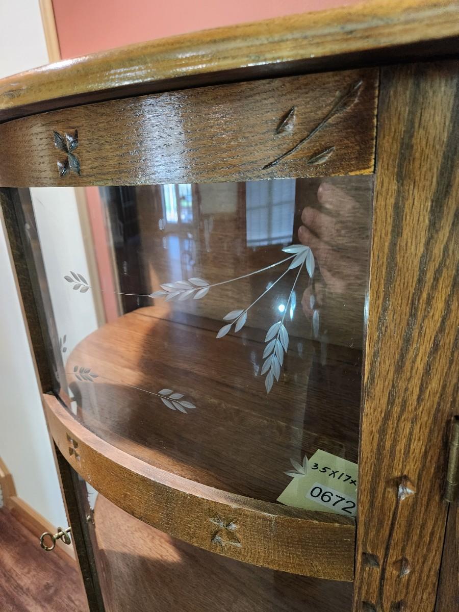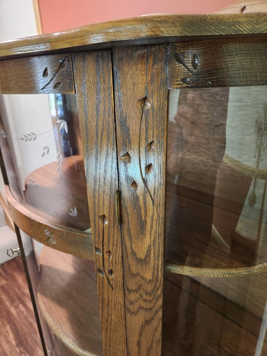 Vintage Bow Front Curio Cabinet 4 Shelves Etched Glass 35x17x62