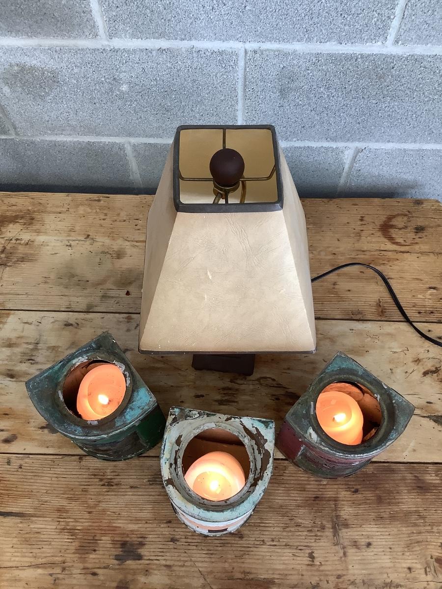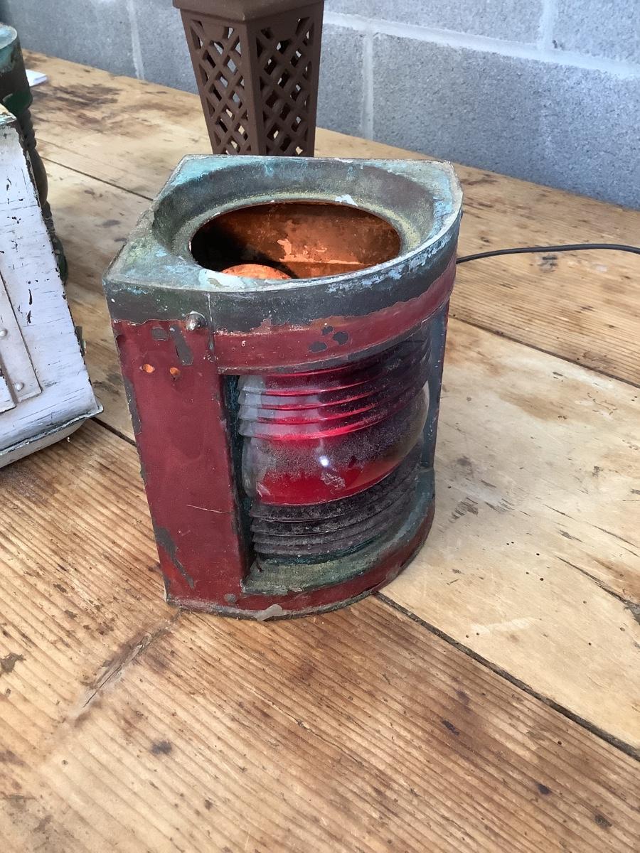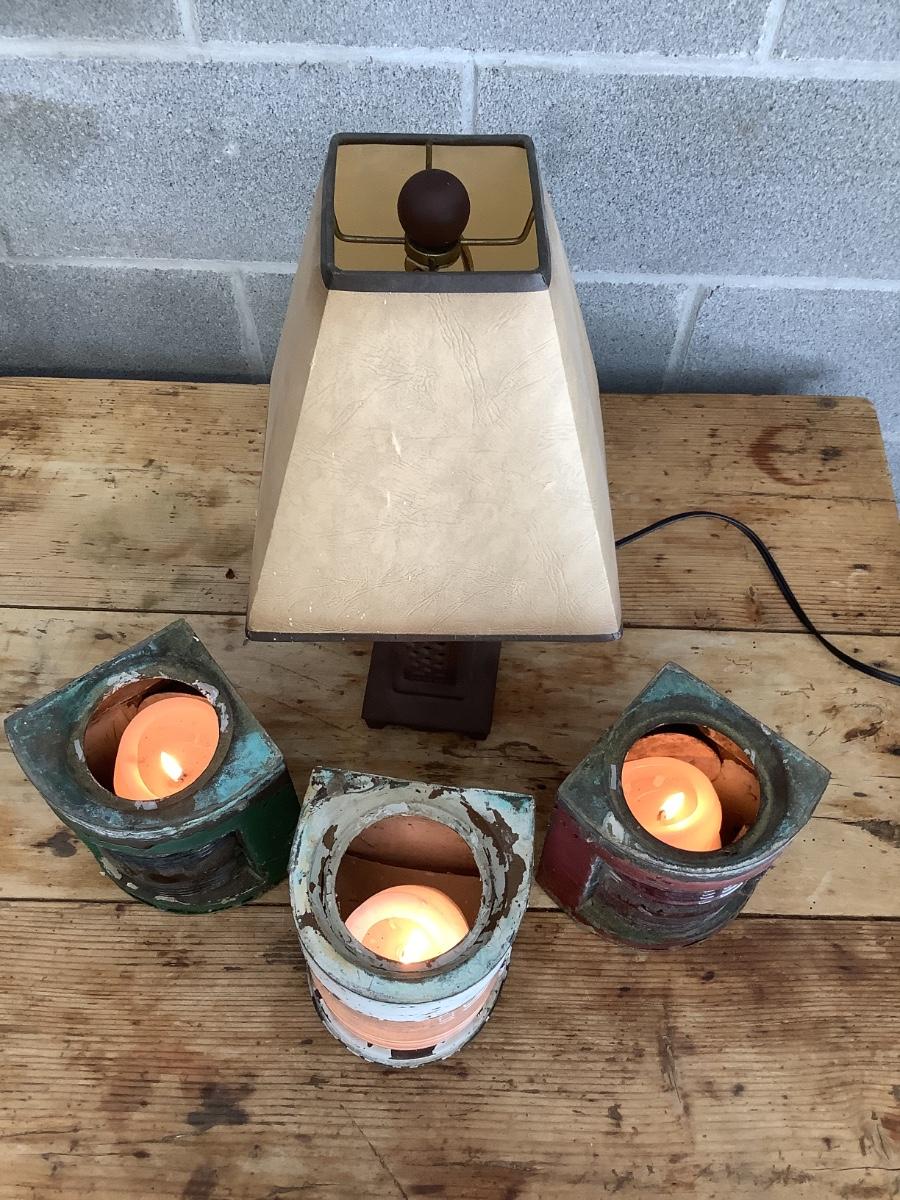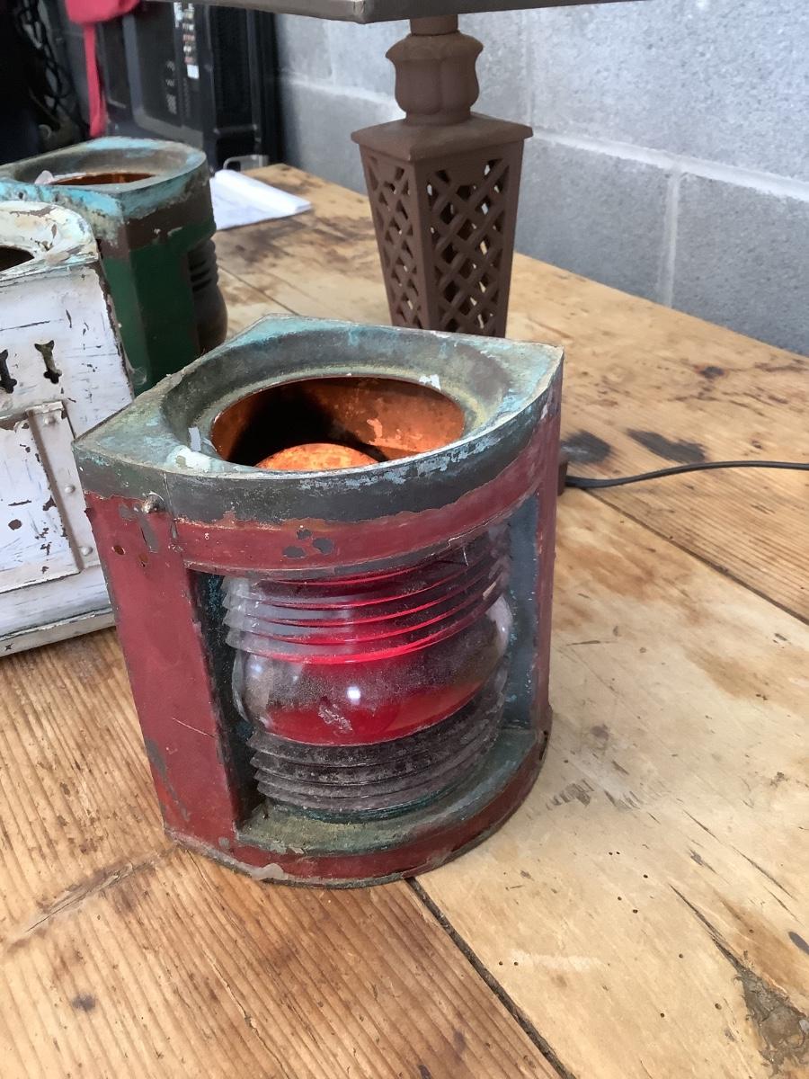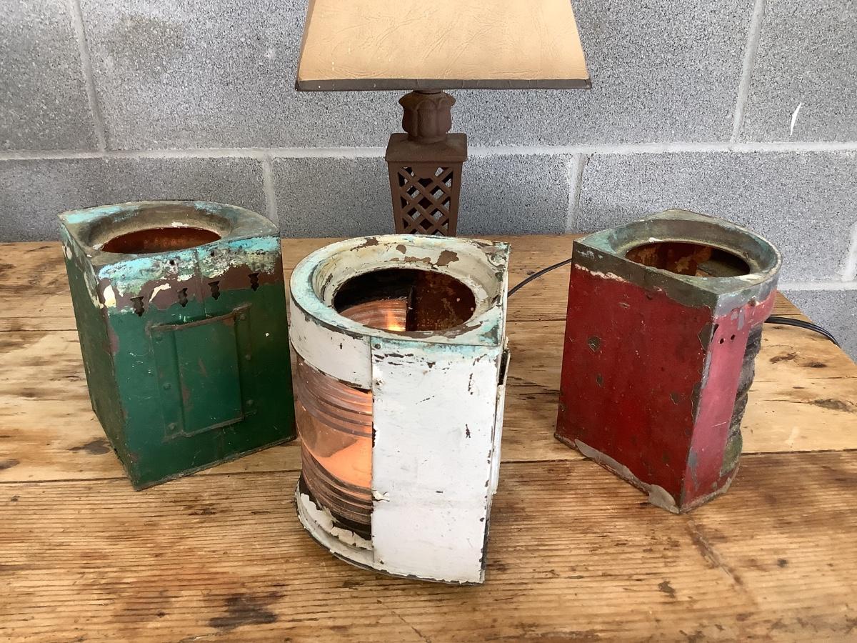 Vintage Bow & stern running lights shown with candles and a lamp