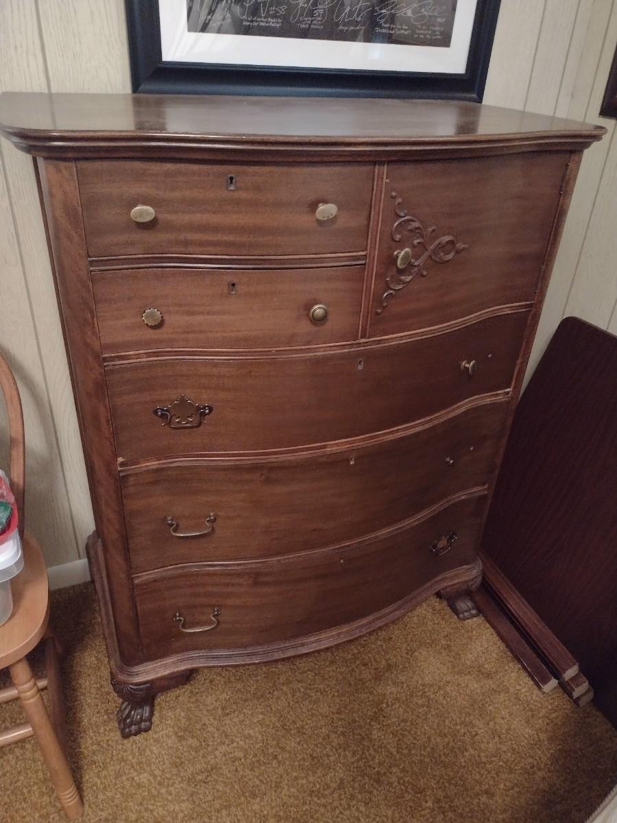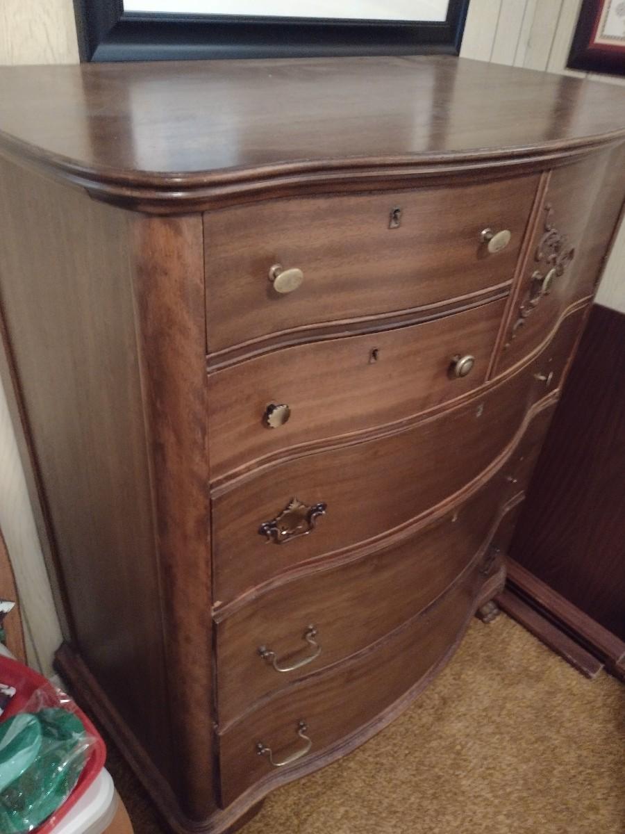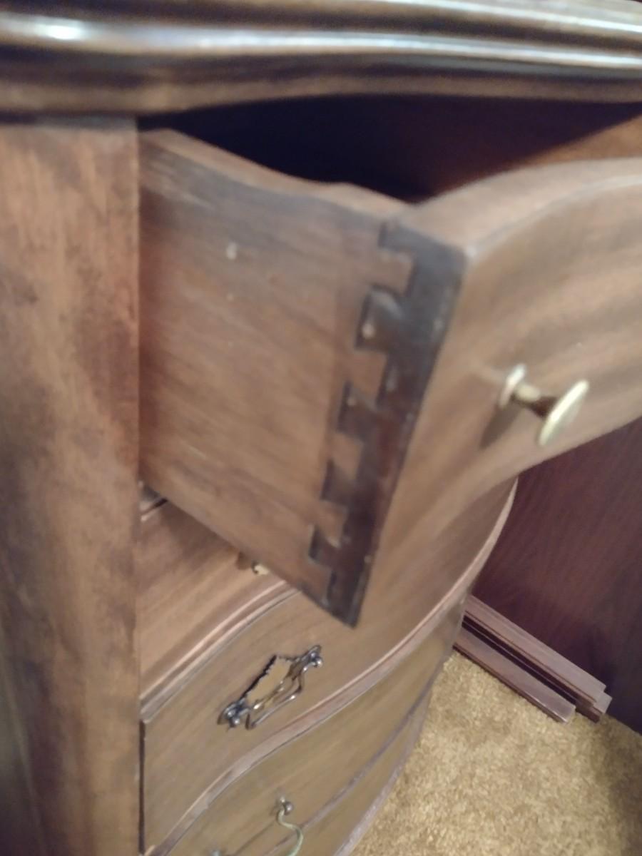 Vintage Bowfront Solid Wood Walnut Finish Chest of Drawers