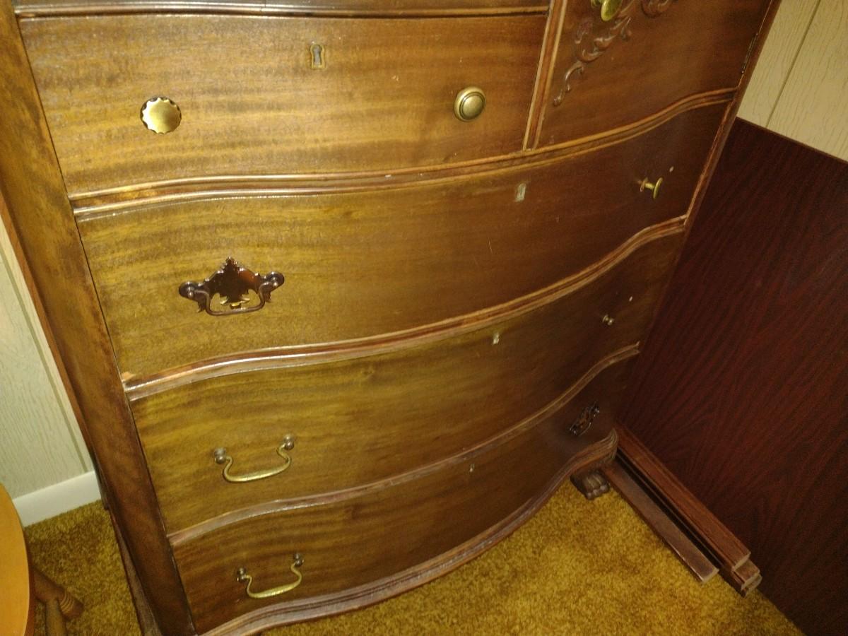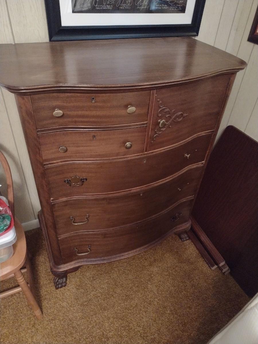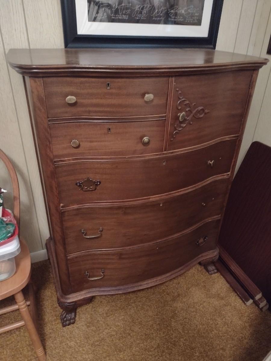 Vintage Bowfront Solid Wood Walnut Finish Chest of Drawers