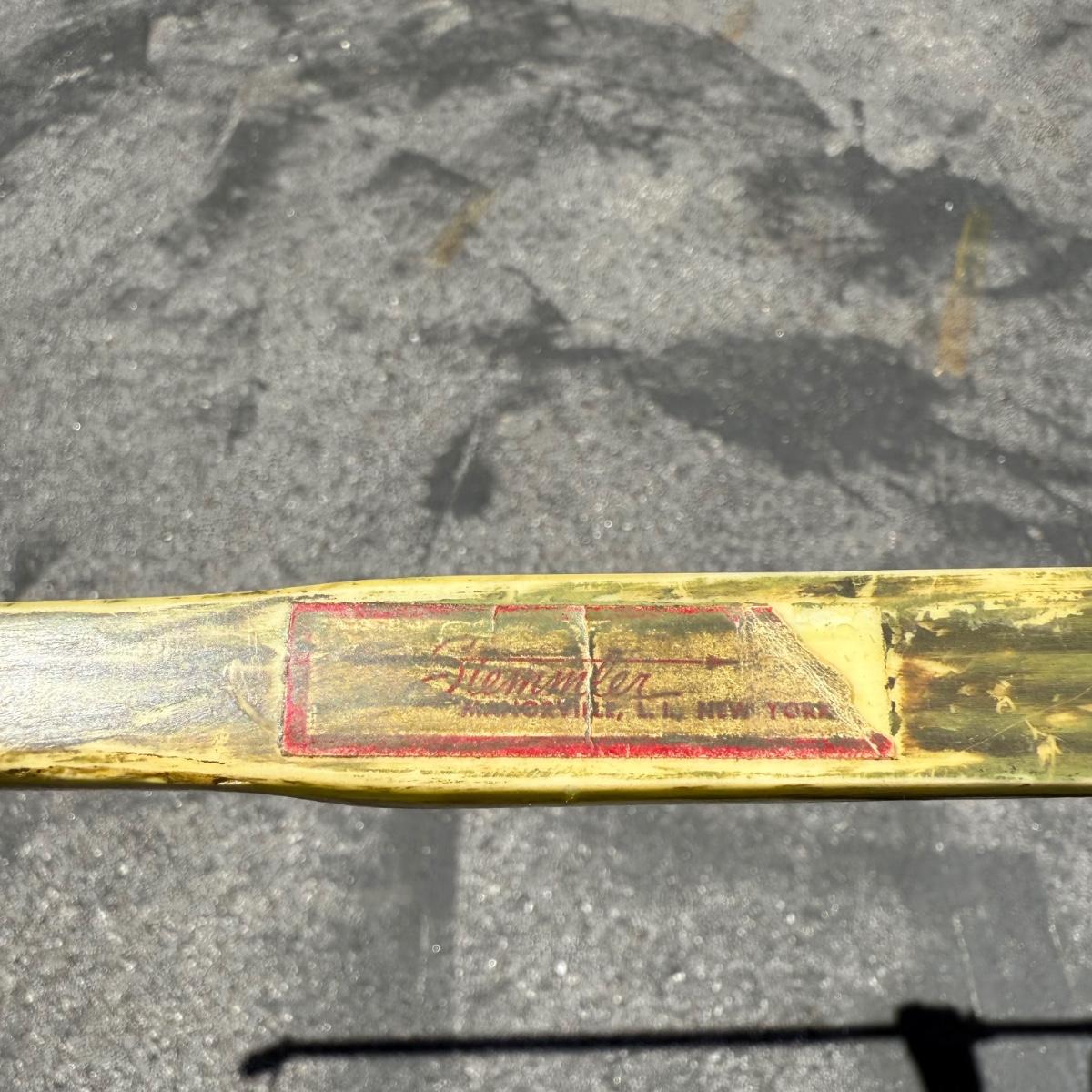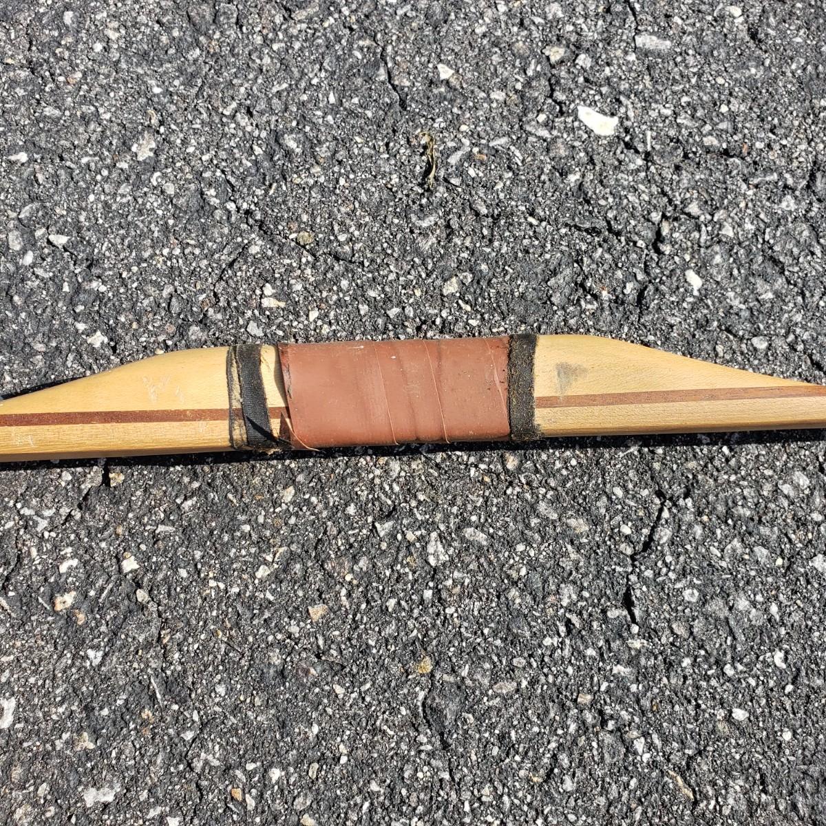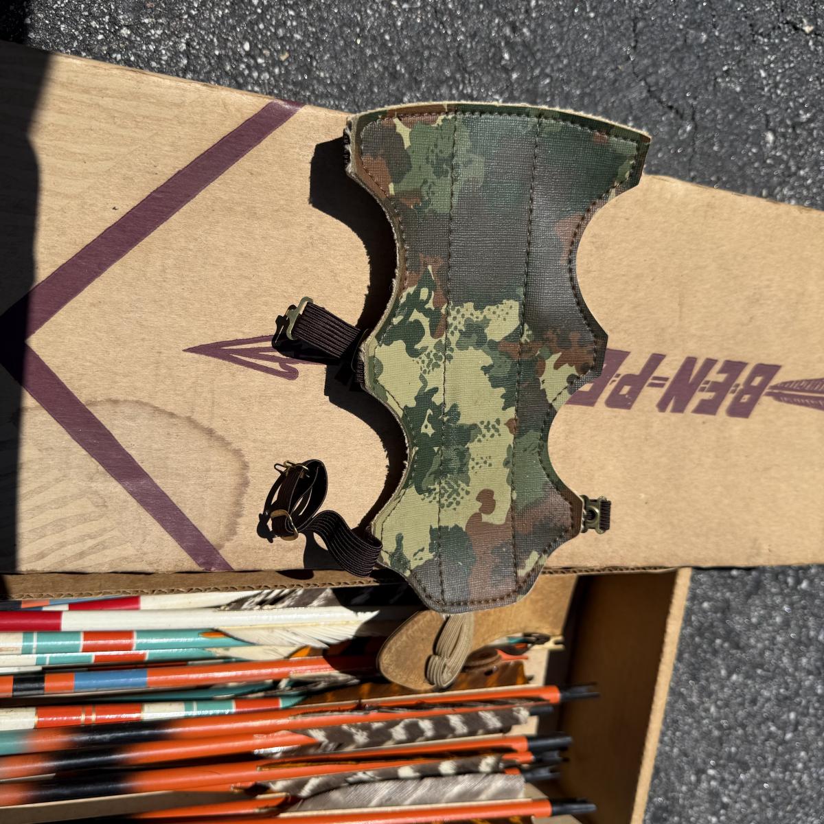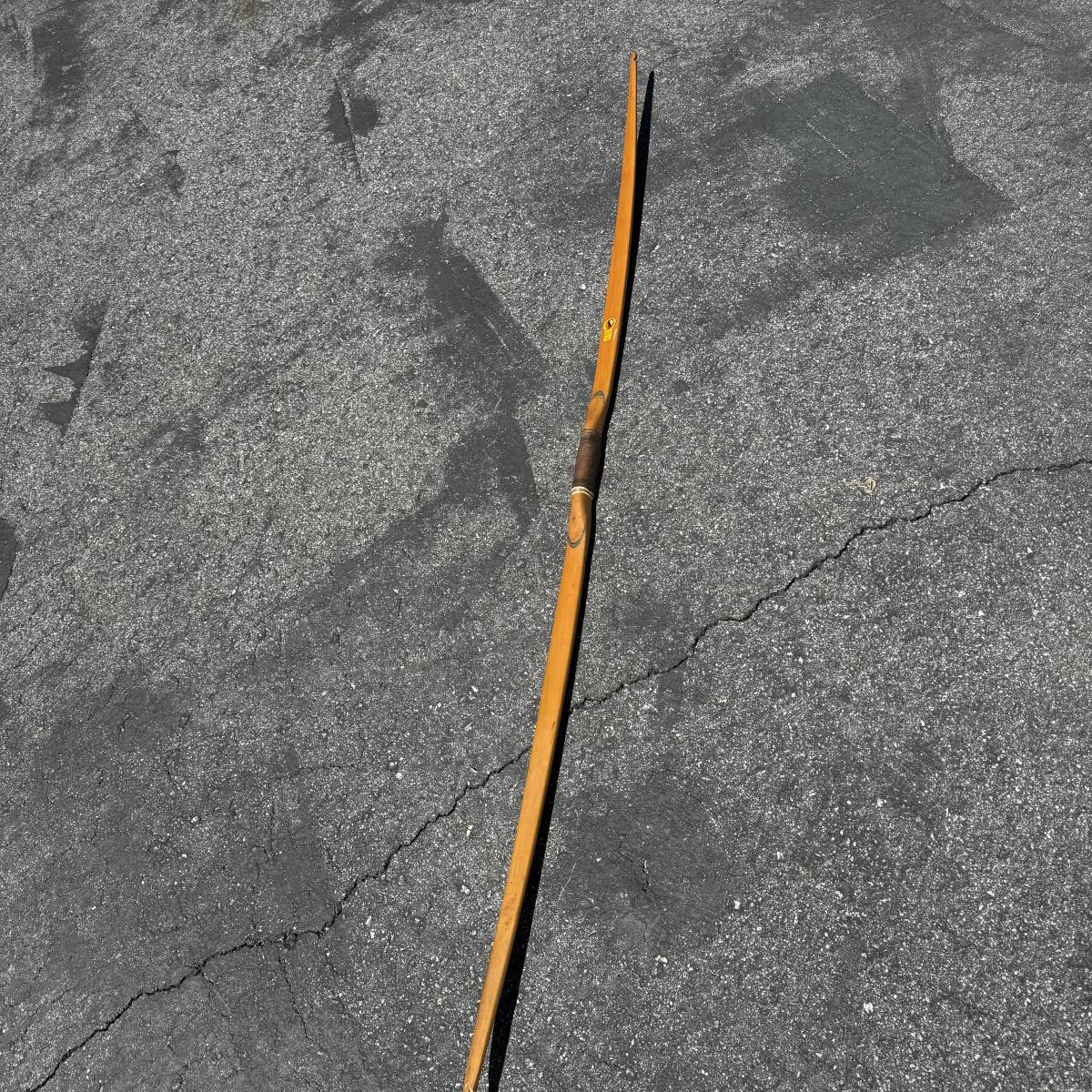 This lot contains four vintage bows and over 20+ arrows. The first is an Indian Archery wooden longbow with a leather grip and measures 1.5” x 68”. The next is a grey Amundson Archer bow that appears to be a plastic material with a plastic grip. This bow measures 1.25” x 60”. The Stemmler also appears to be some sort of plastic with a plastic grip. It measures .75” x 60”. The last bow pictured is unmarked. There is some tape separated at the handle. Also included are over 20 arrows with metal tips and feather backs which appear to be made of wood and a wrist guard. Shipping available