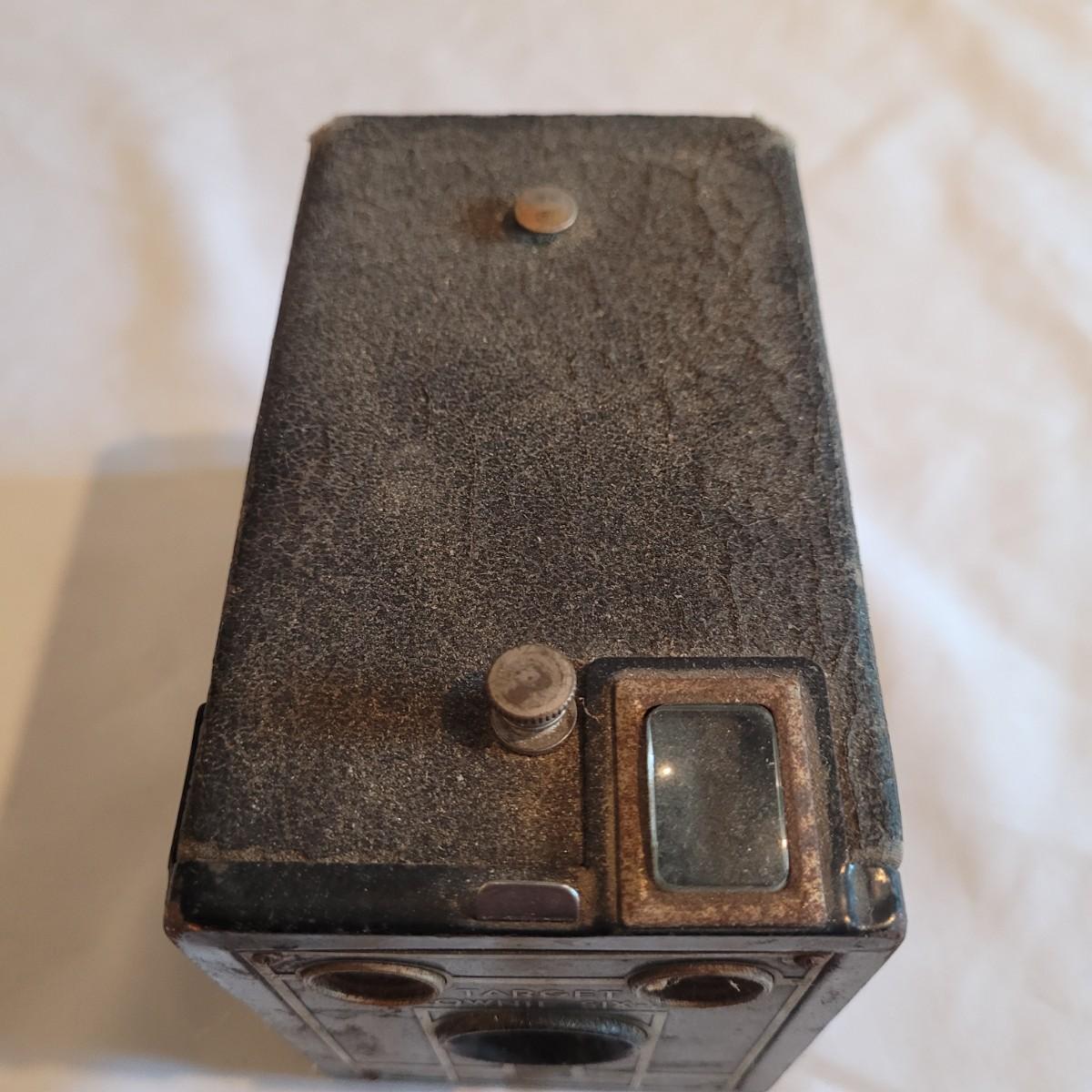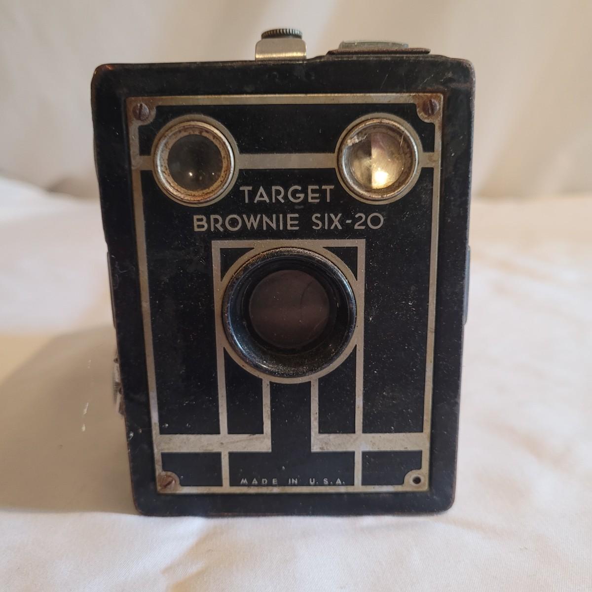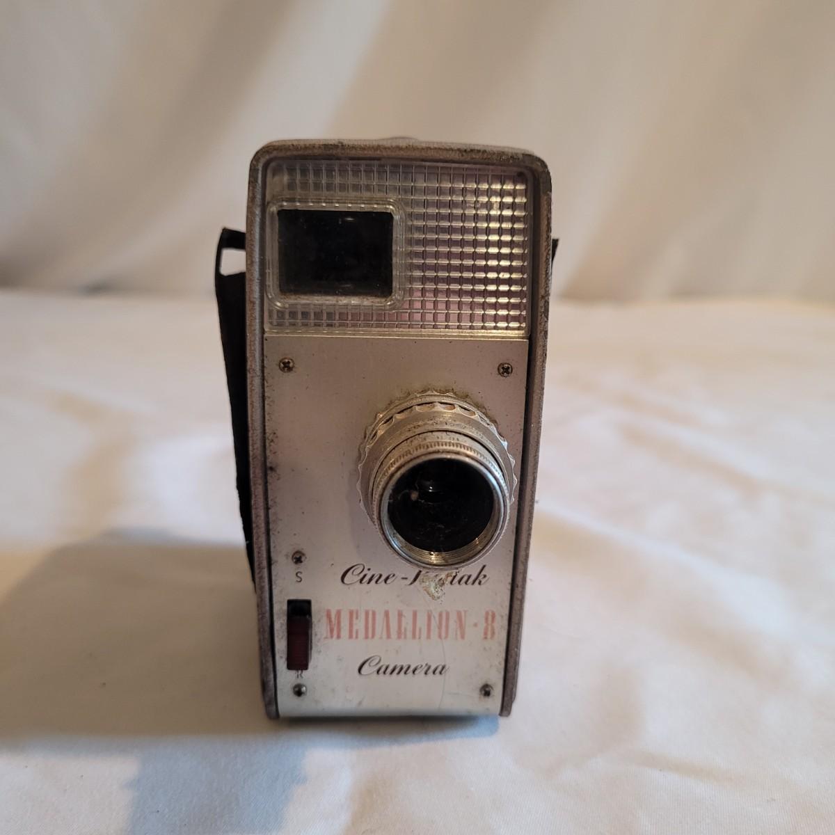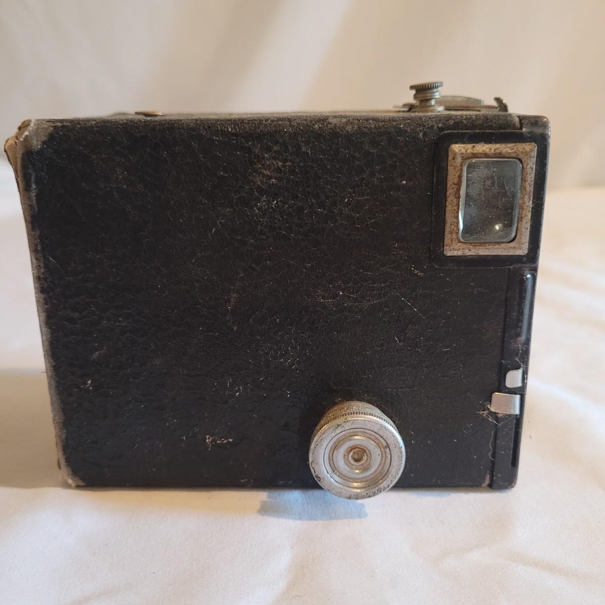 This lot includes four vintage box style cameras. The first camera is a Polaroid Colorpack 2. It features built in instructions and a carrying strap. The second camera is a Target Brownie Six-20. Manufactured in the late 30s and early 40s. The third camera is Cine-Kodak Medallion-8. It is a very small camera with many settings and features. The third camera is an Imperial Mark 7. It is a box style camera featuring a carrying strap. All cameras show signs of age. None of the cameras have been tested. The largest camera (the Polaroid) measures 7" x 7" x 6.5"H.