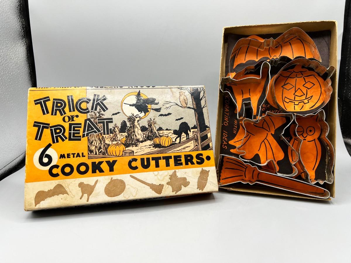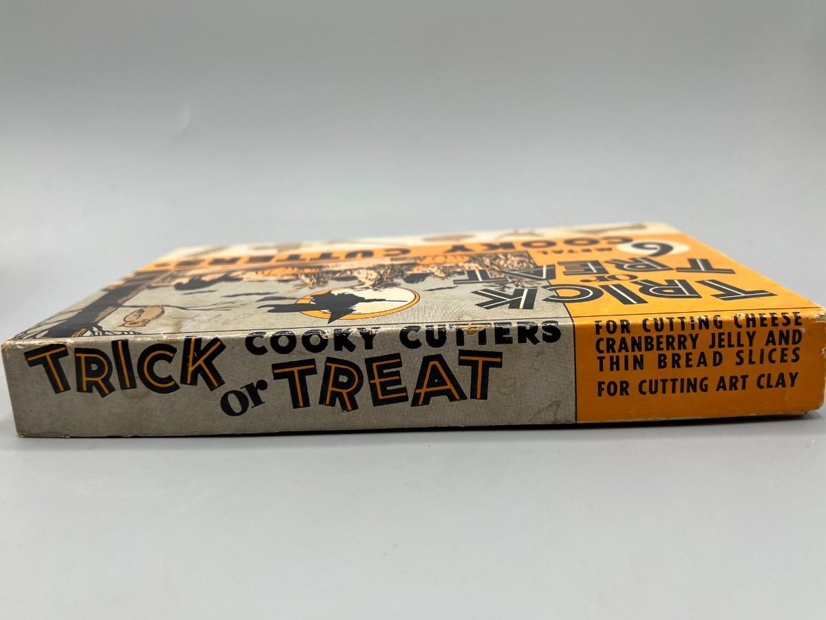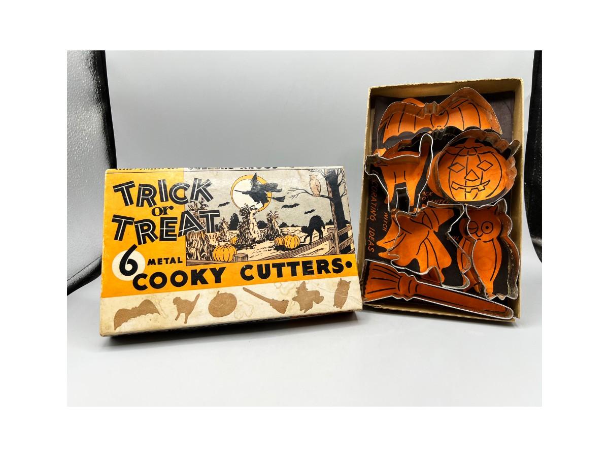 Vintage Box Set of Halloween Trick or Treat Cookie Cutters, Spooky Pumpkin, Flying WItch, & More