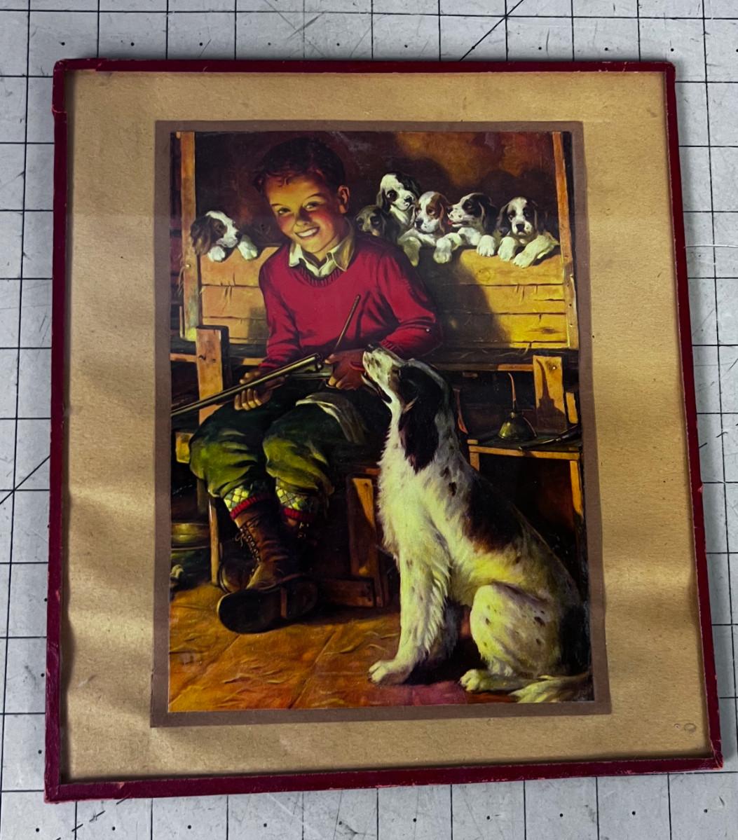 Vintage Boy and his Dog Print Under Glass