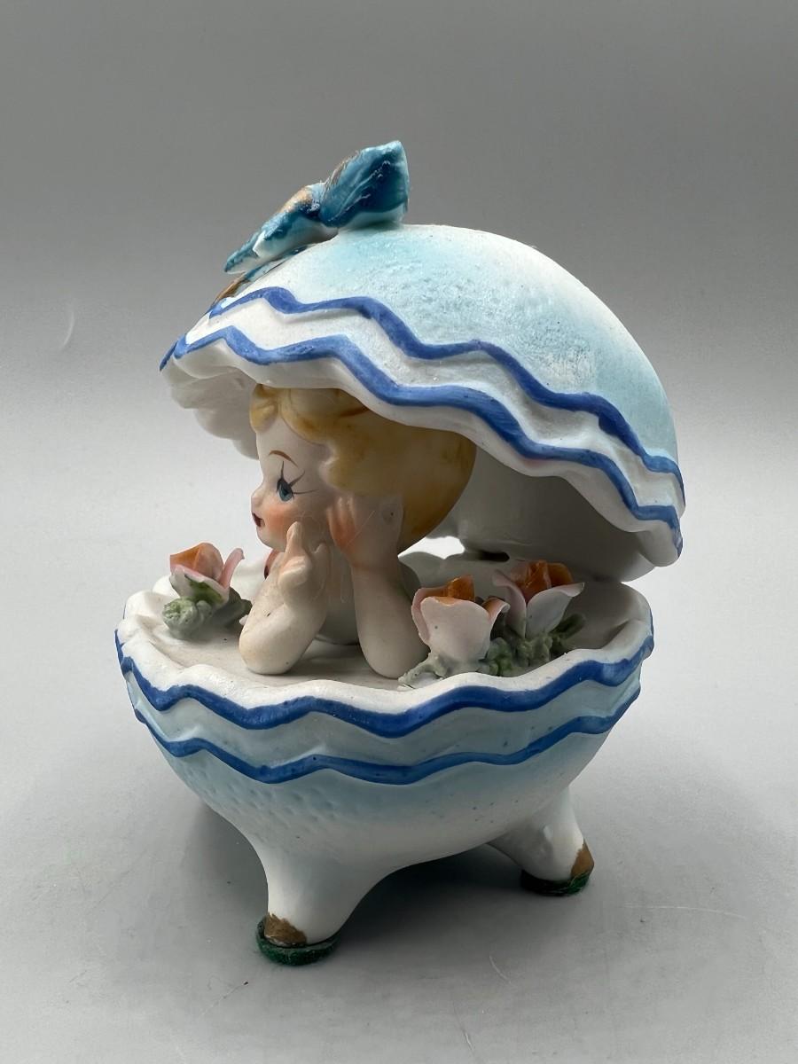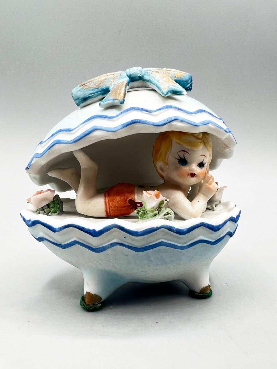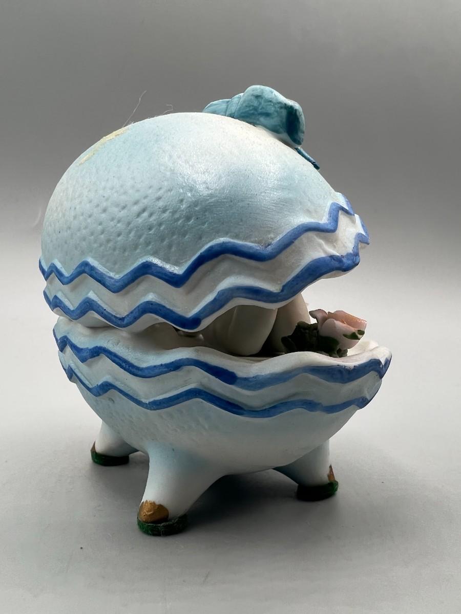 Vintage Boy Inside Egg Seashell Kitsch Porcelain Collectible Figurine