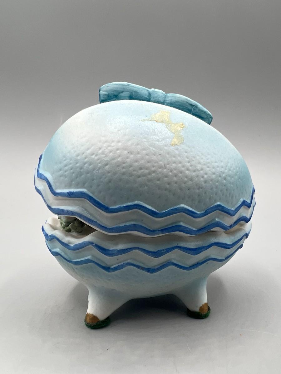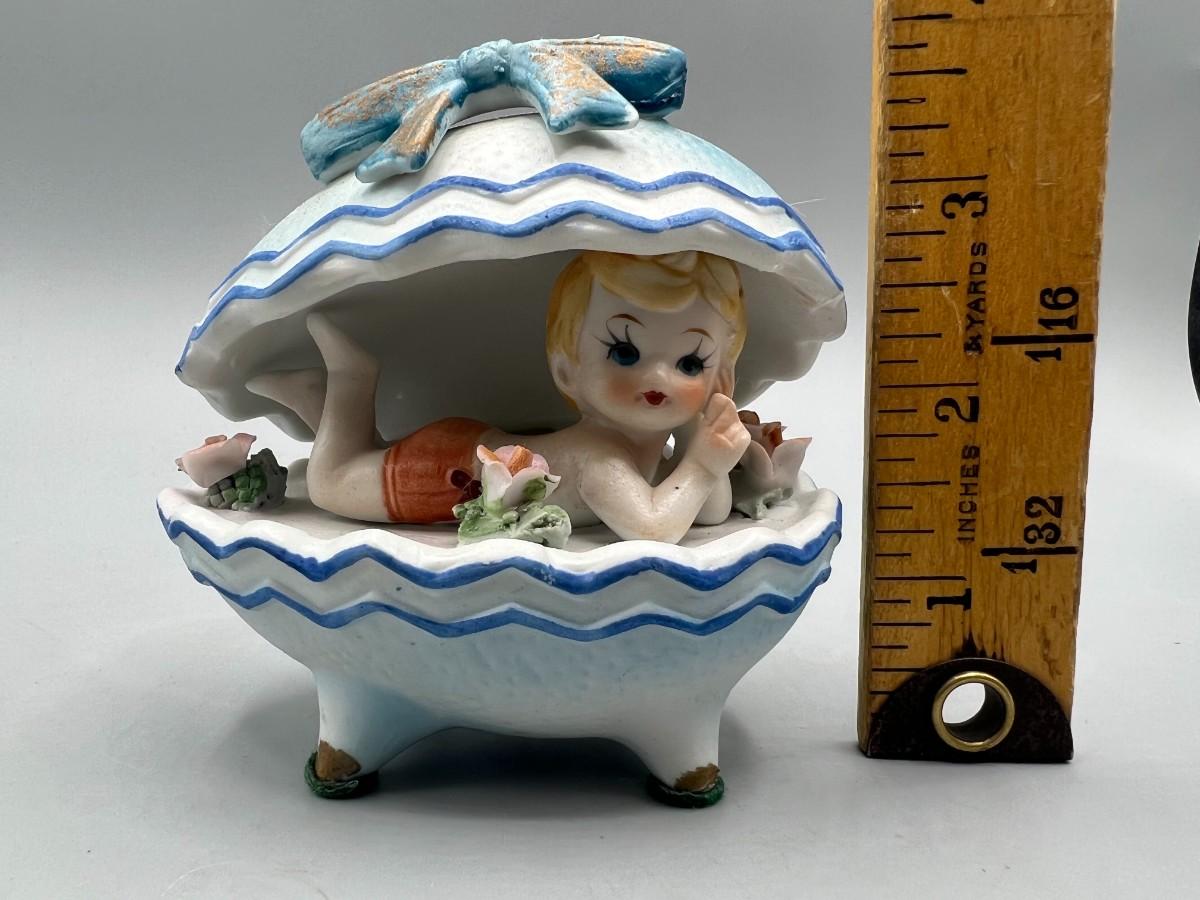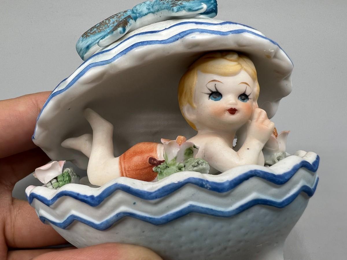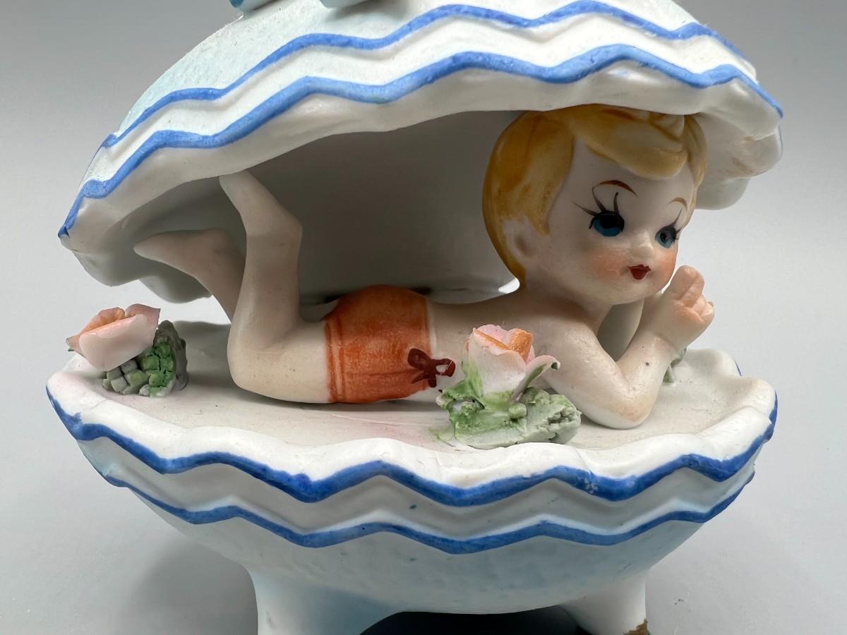 Vintage Boy Inside Egg Seashell Kitsch Porcelain Collectible Figurine