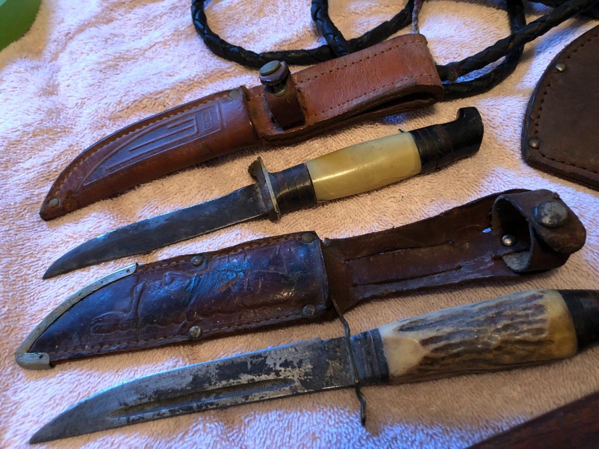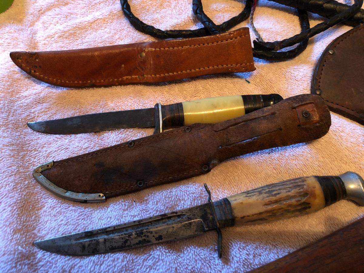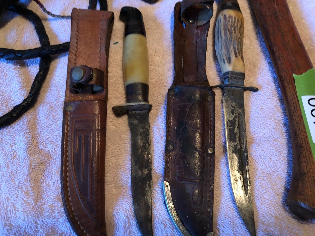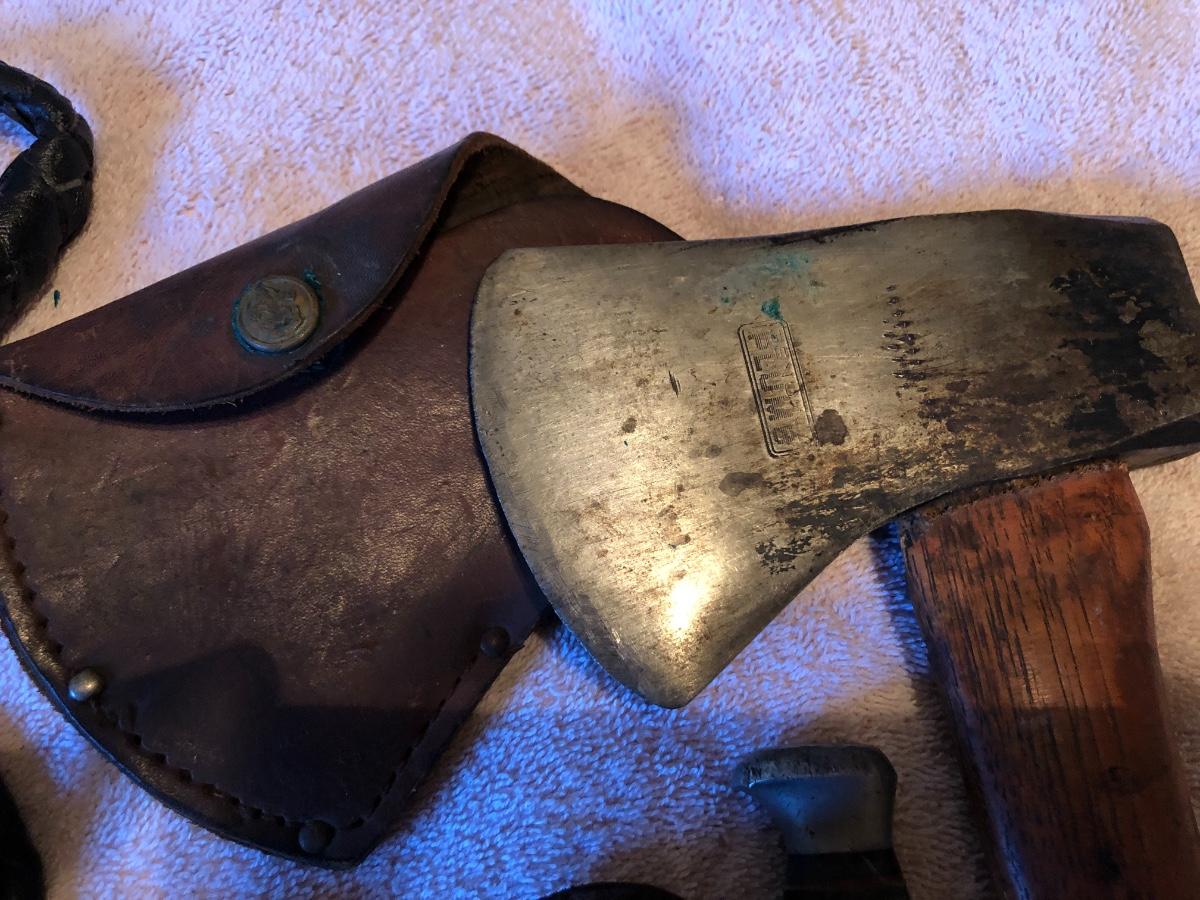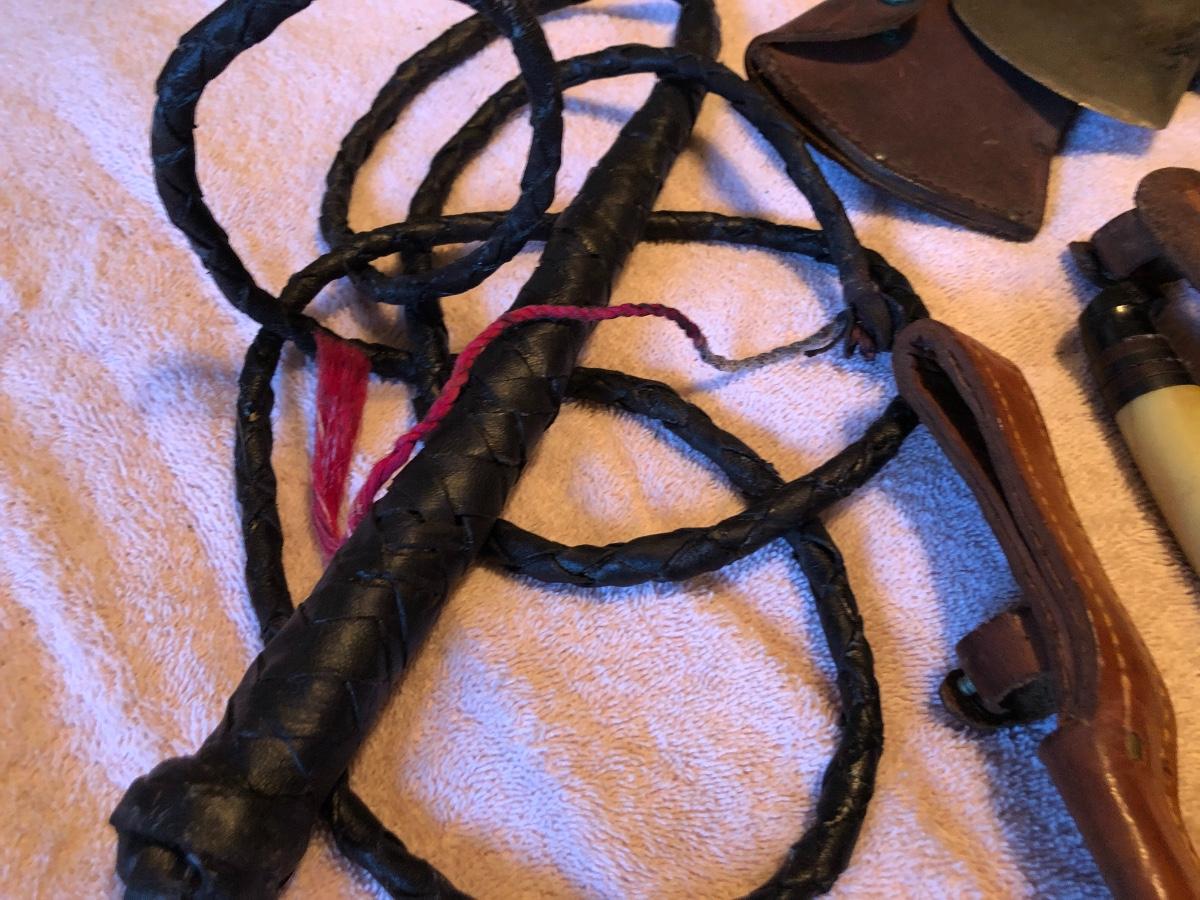 Vintage Boy Scout Axe, 2 Knives & Bull Whip. Lot #0674