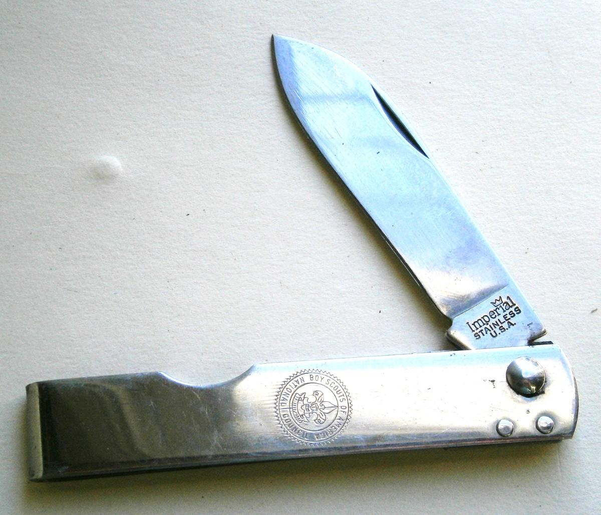 Vintage Boy Scout Knife by Imperial Knife Co., 3 1/2 in. long (closed), 2 1/2 in blade, stainless steel.