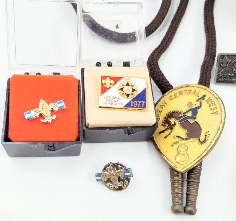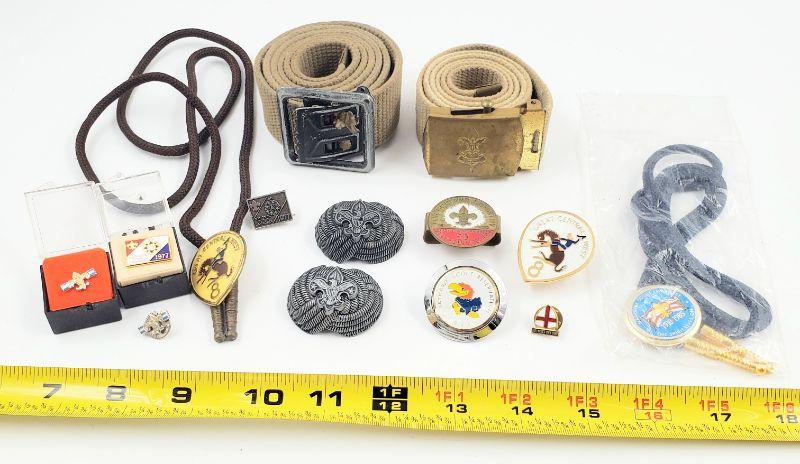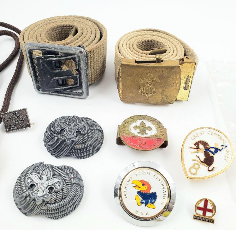 VINTAGE BOY SCOUT SLIDES, PINS & BELTS