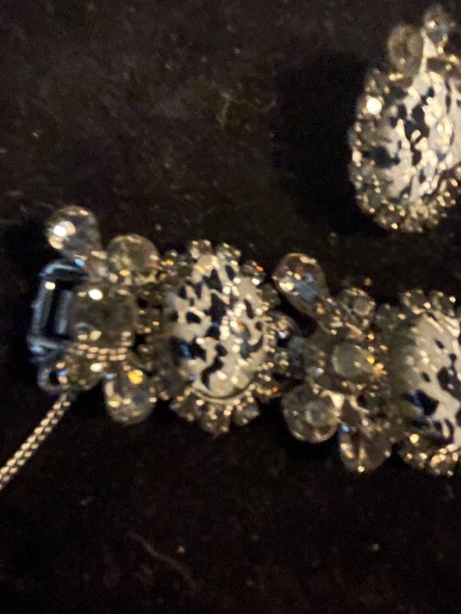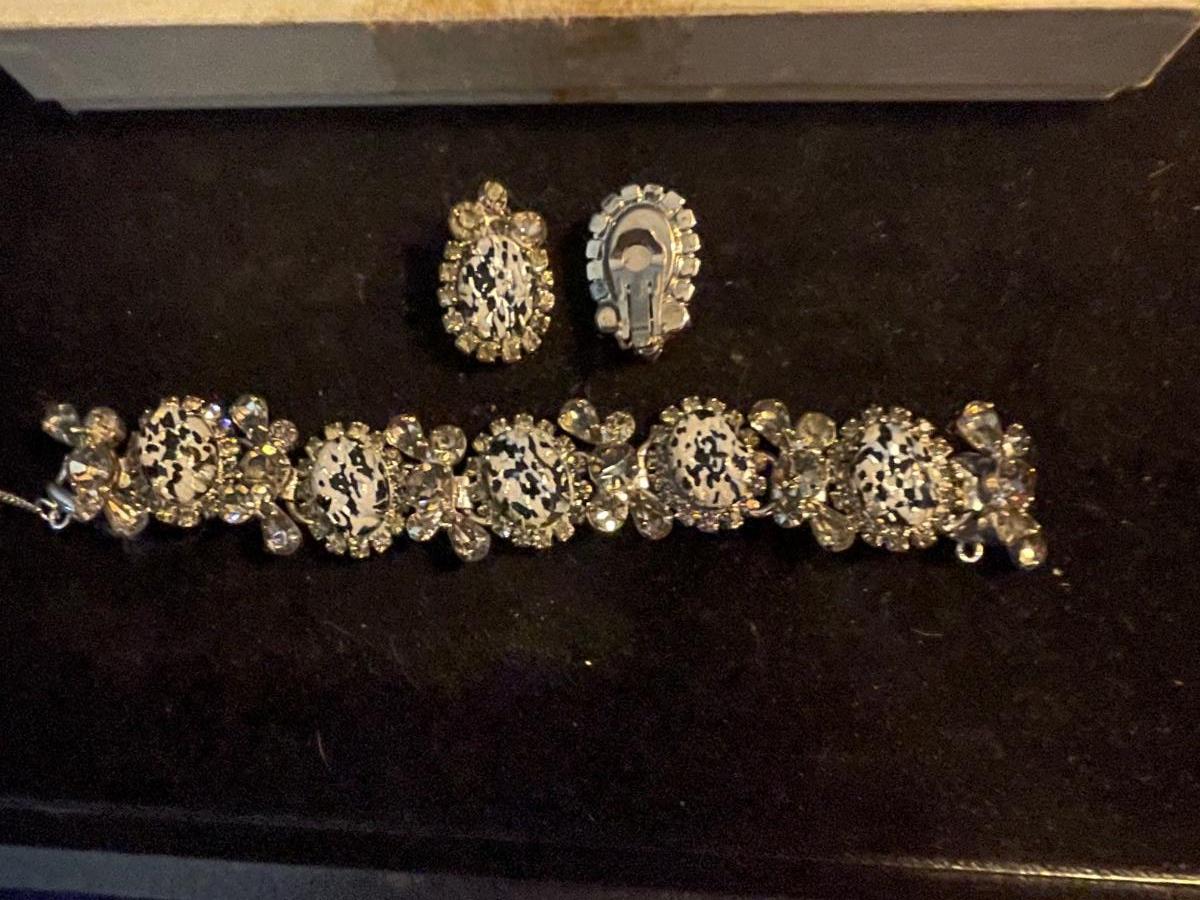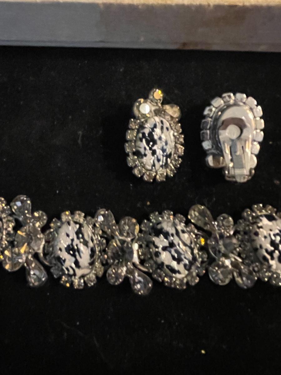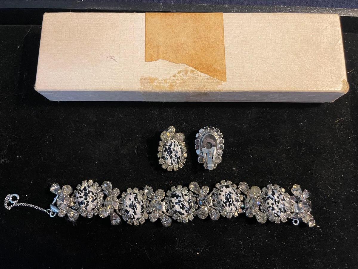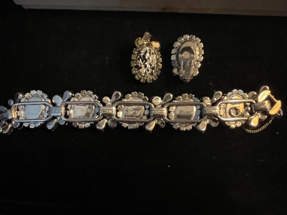 Vintage Bracelet and Clip Earrings BEAUTIFUL Sparkling Stones! One SMALL chip on end Stone as pictured- not noticeable