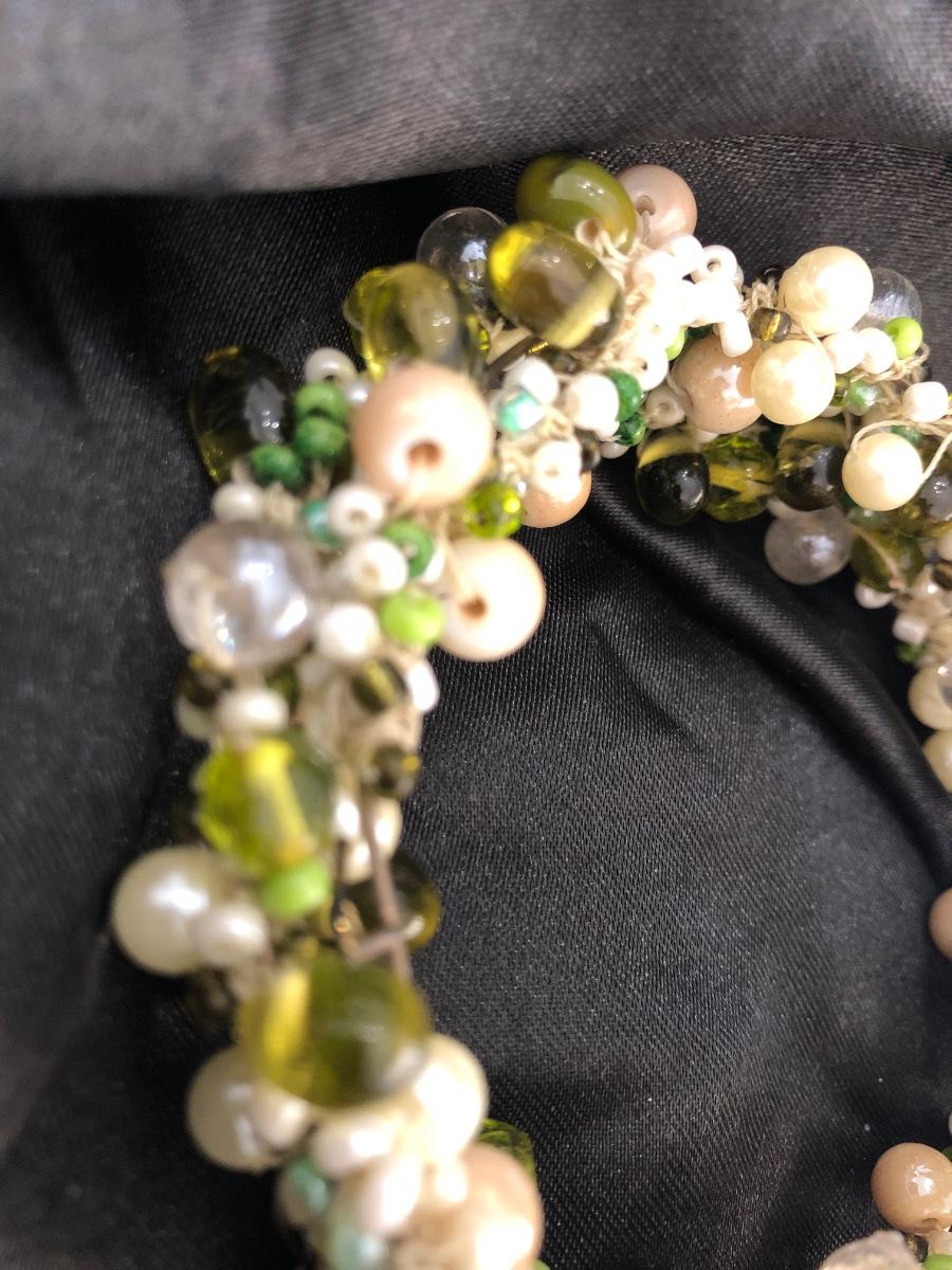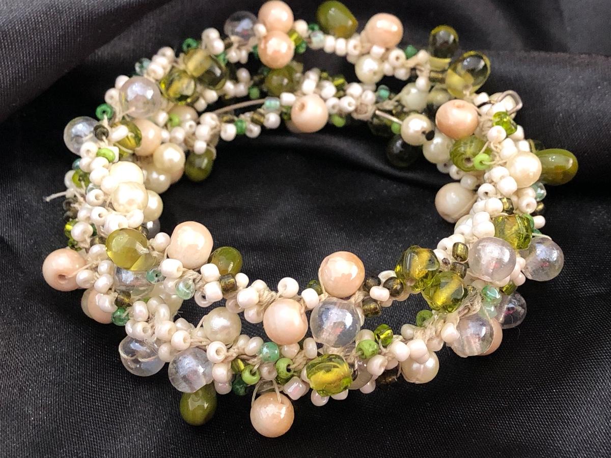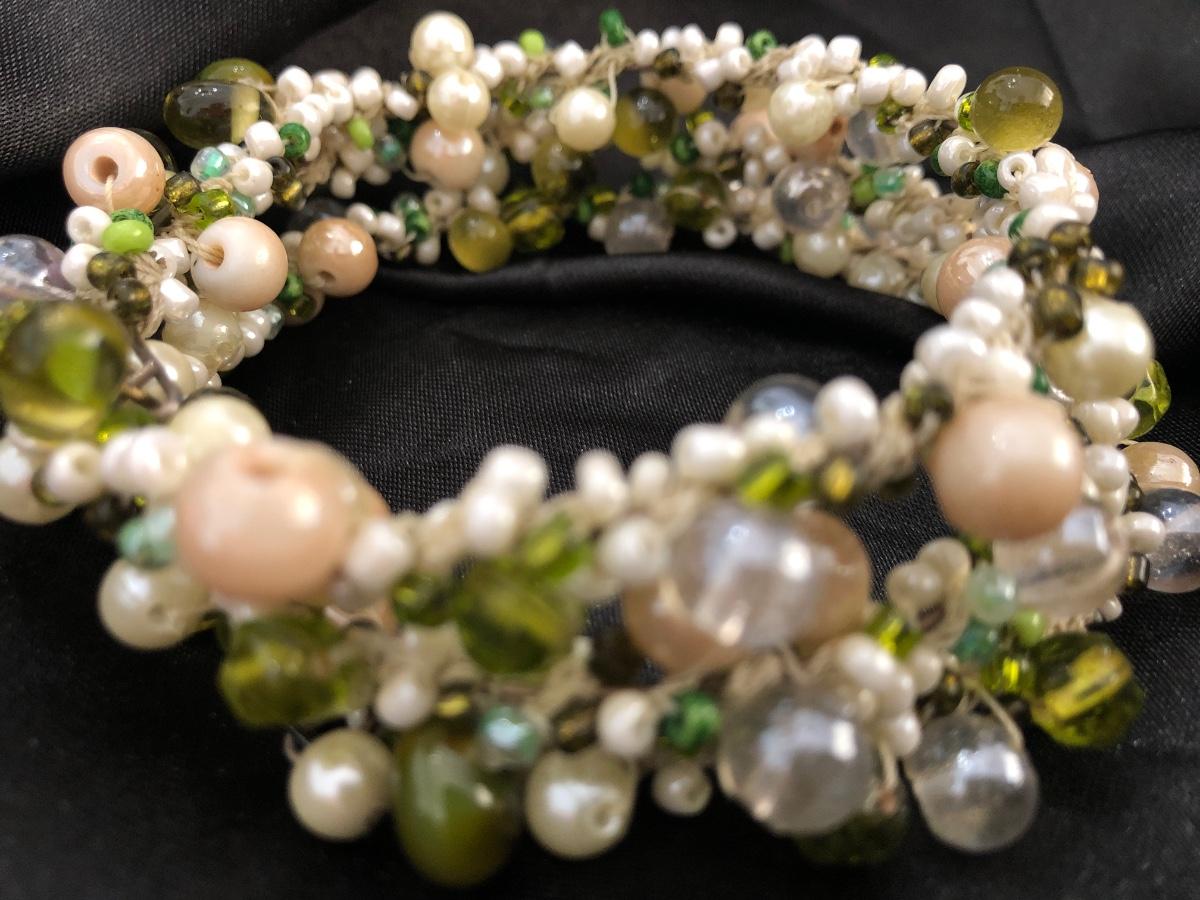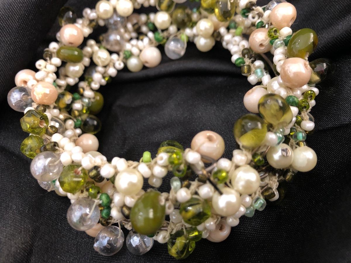 Vintage Bracelet. Beautiful Green and Iridescent Glass Beads