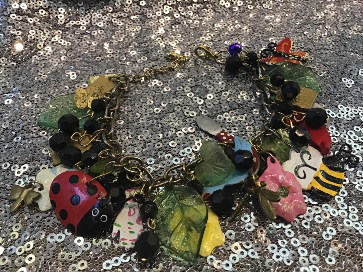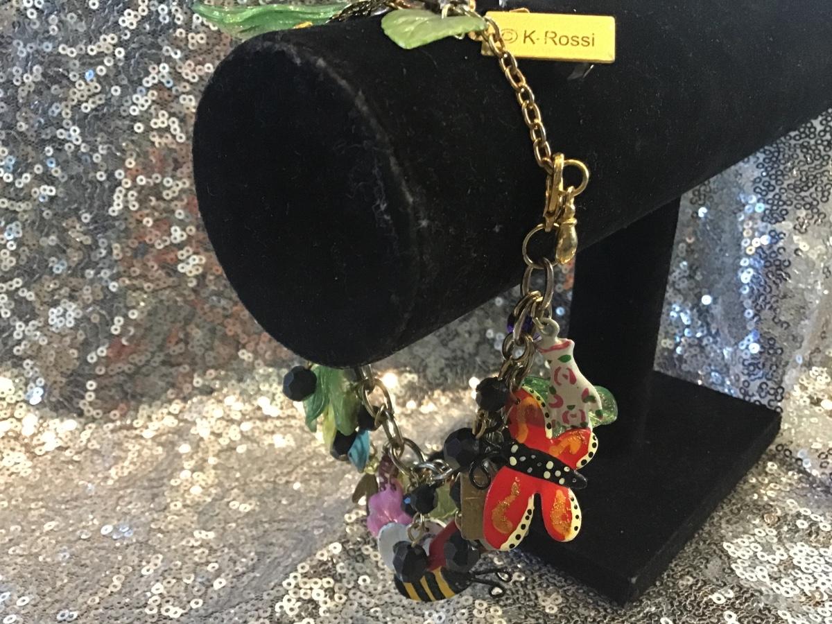 VINTAGE BRACELET DESIGNER K. ROSSI CHARM BRACELET COLLECTIBLE COSTUME JEWELRY