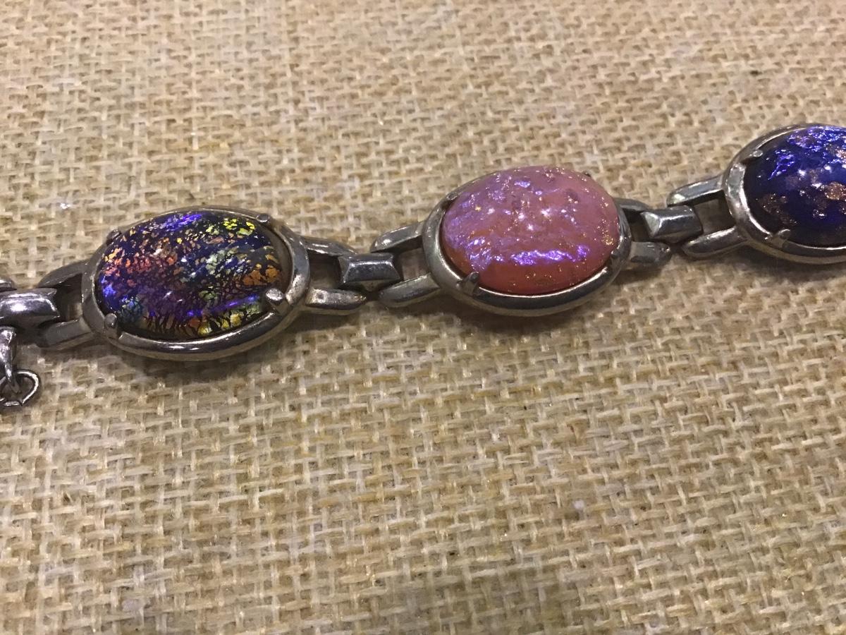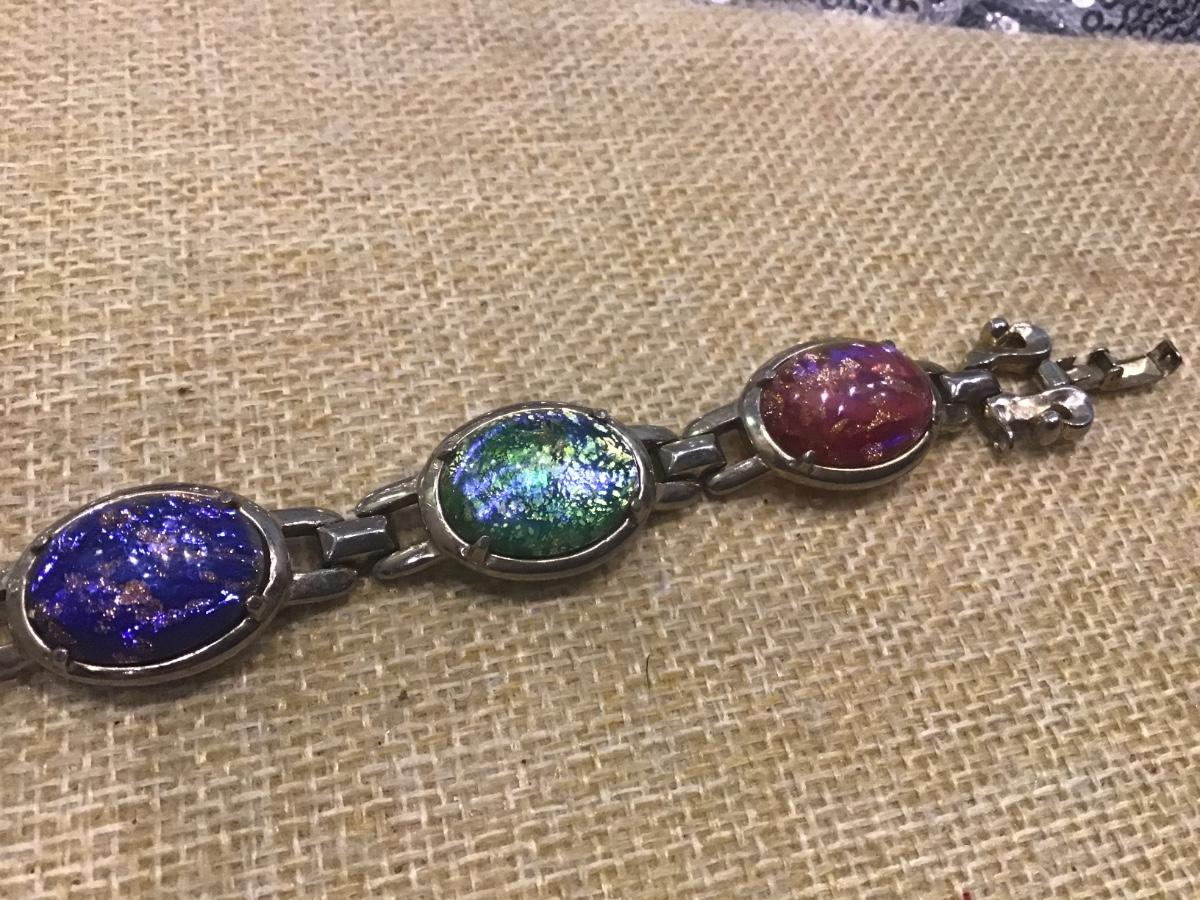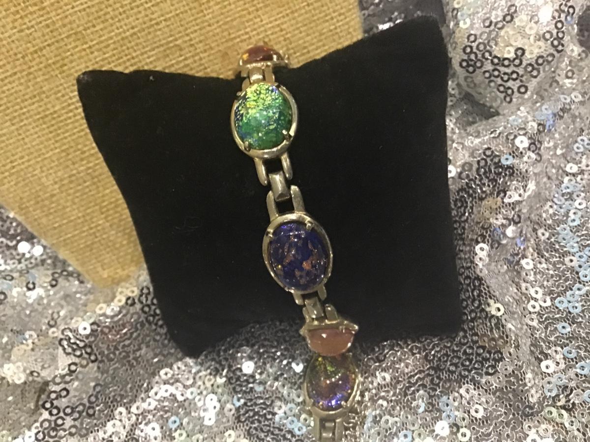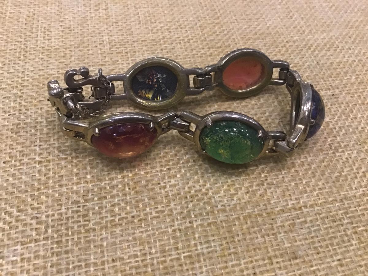 Vintage Bracelet Sherman Art Glass Rare Stunning Glass Stones Signed