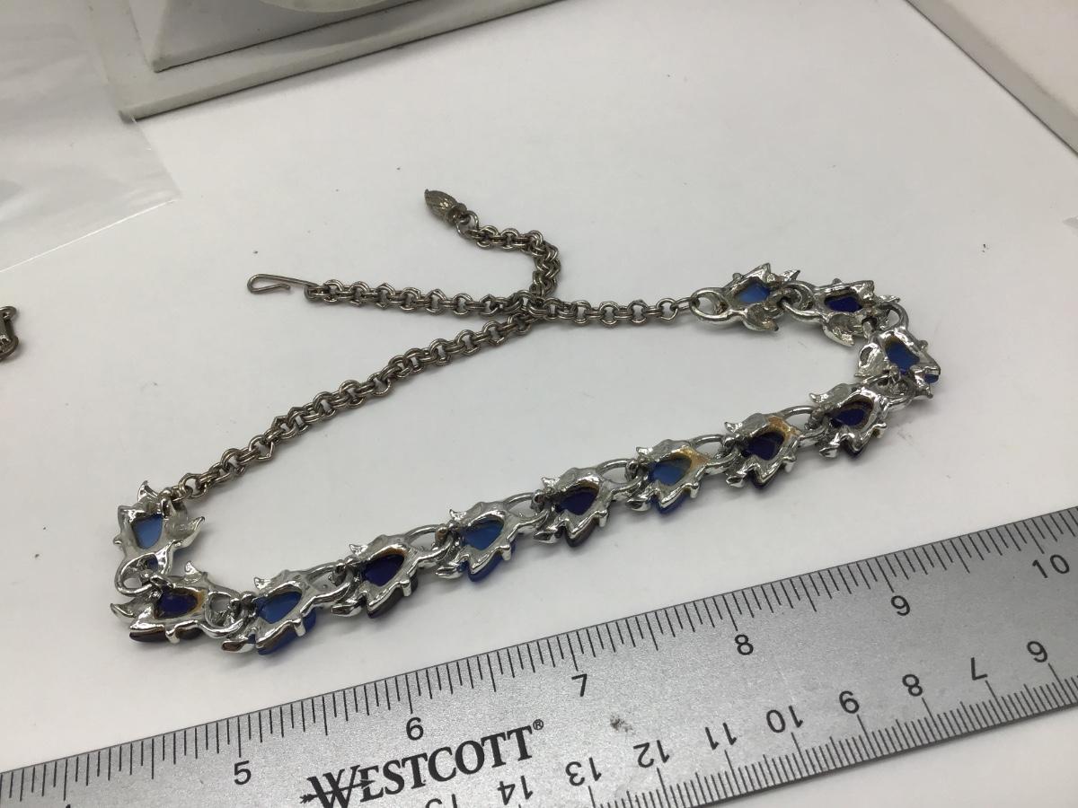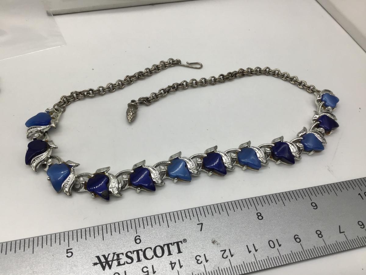 Vintage Bracelet Silvertone Links with Blue Thermoset Lucite Leaves
