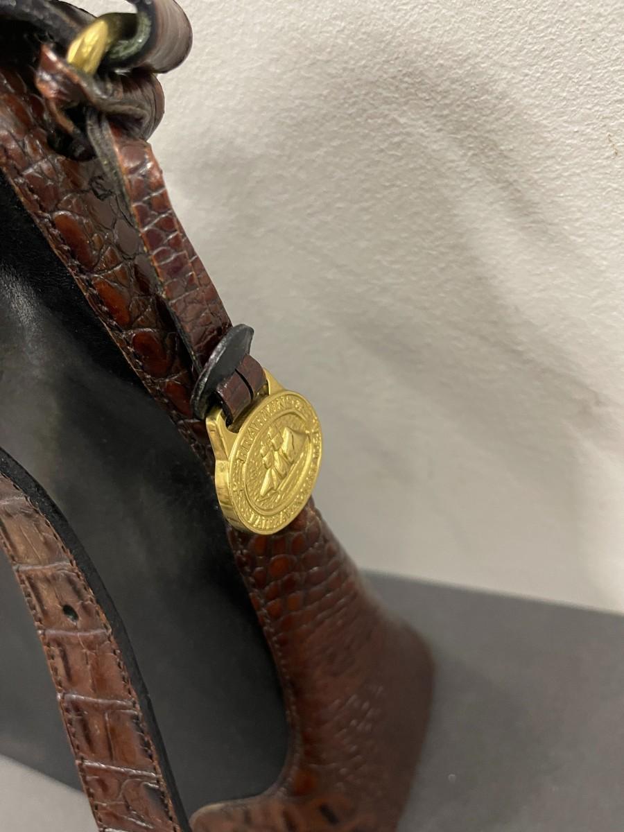 Vintage Brahmin Pecan Croc & Black Leather Handbag