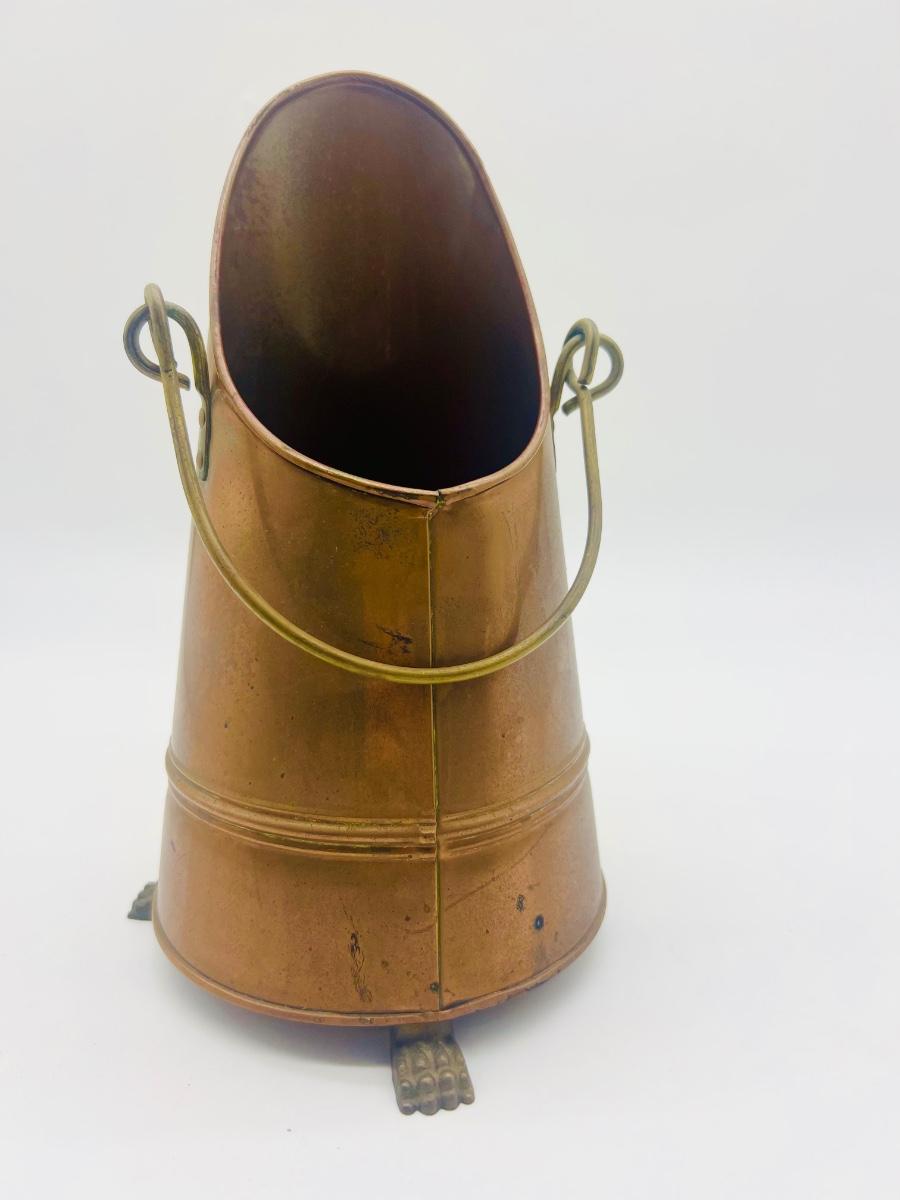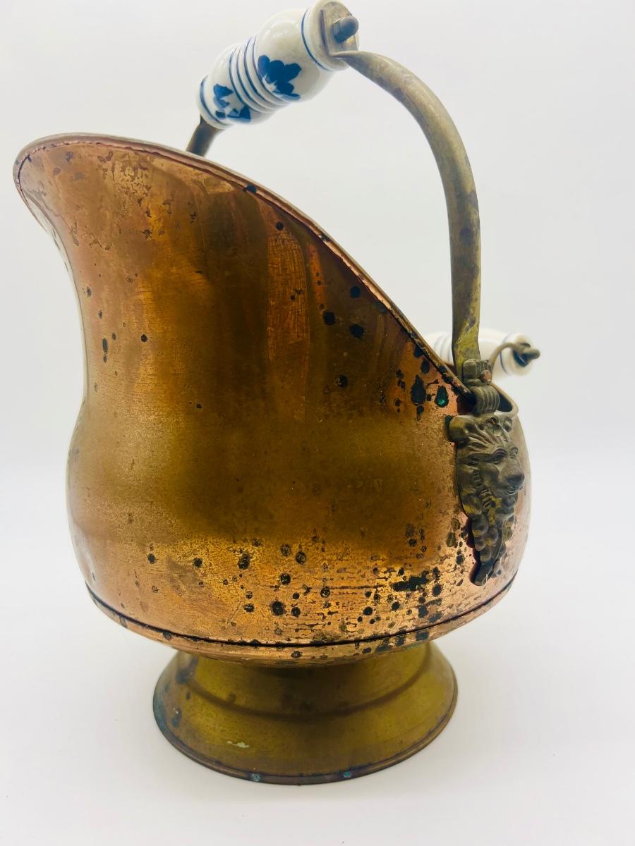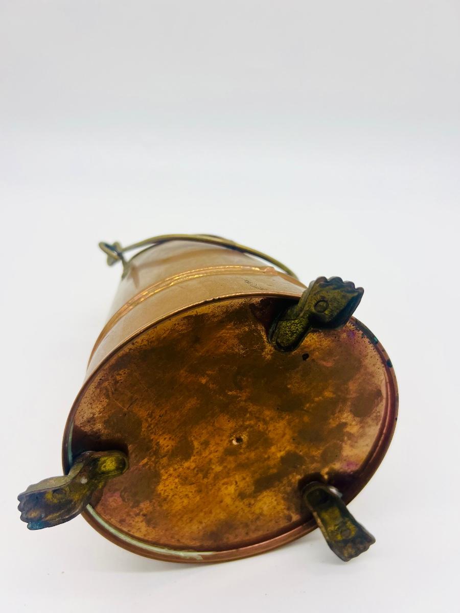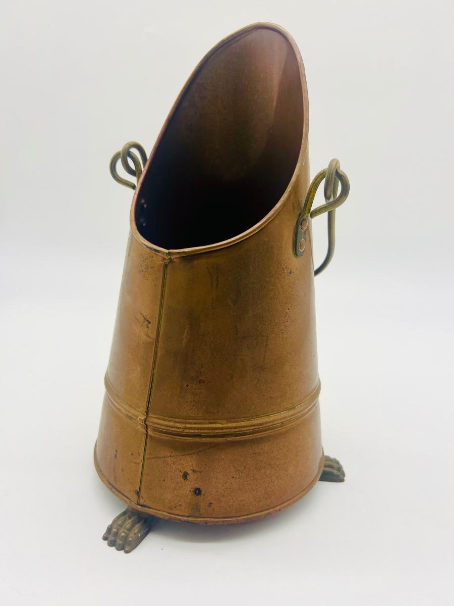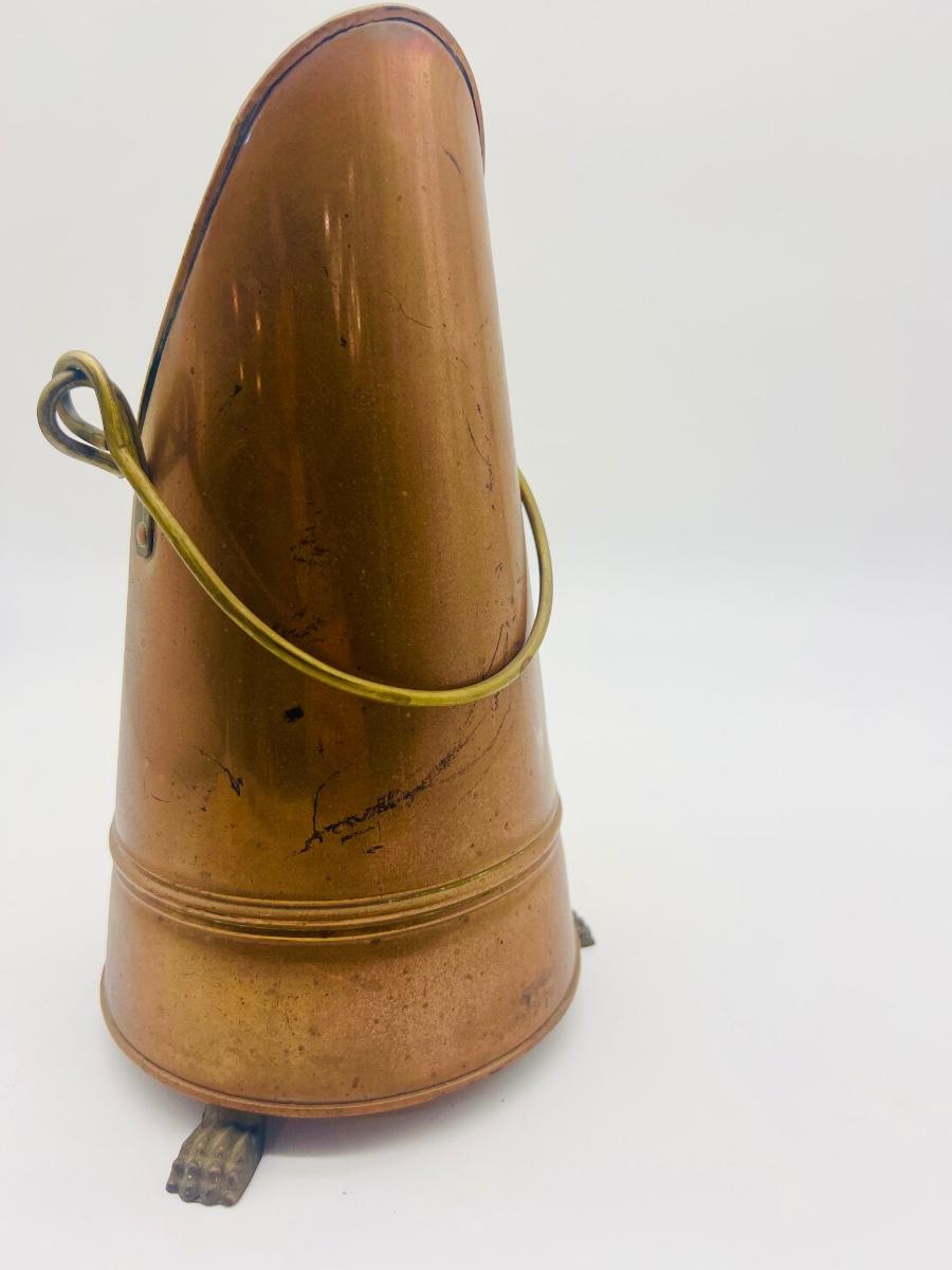 This are MUCH BIGGER THAN THEY APPEAR, read measurements! Early 20th Century lion head brass coal scuttle Ash bucket measures 13 1/2 tall Brass Cooper bucket 5 1/2 inches tall, Footed Brass Measures 10 1/2 inches tall.