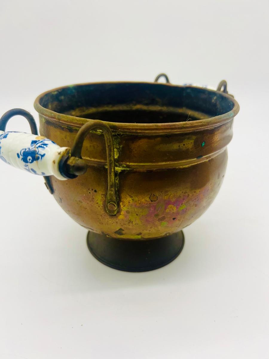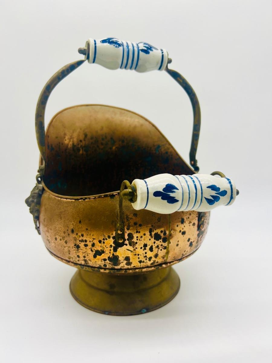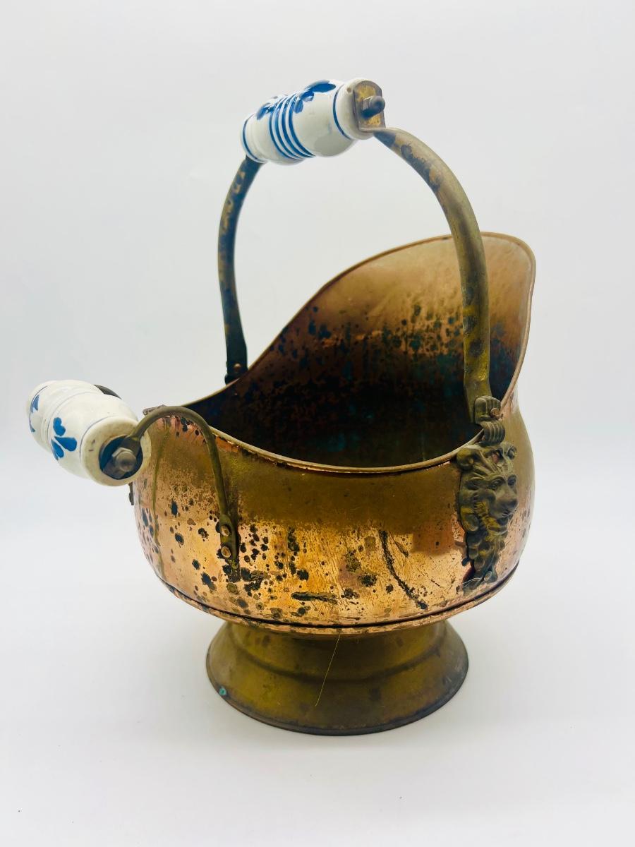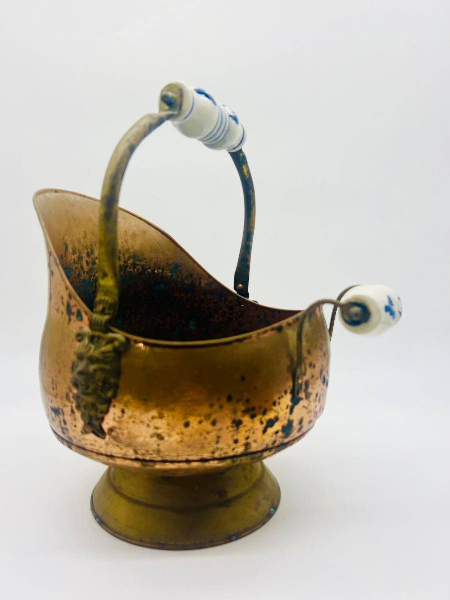 This are MUCH BIGGER THAN THEY APPEAR, read measurements! Early 20th Century lion head brass coal scuttle Ash bucket measures 13 1/2 tall Brass Cooper bucket 5 1/2 inches tall, Footed Brass Measures 10 1/2 inches tall.