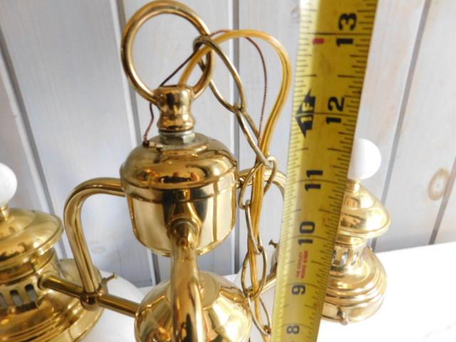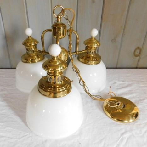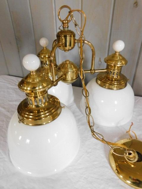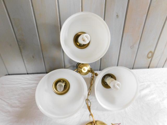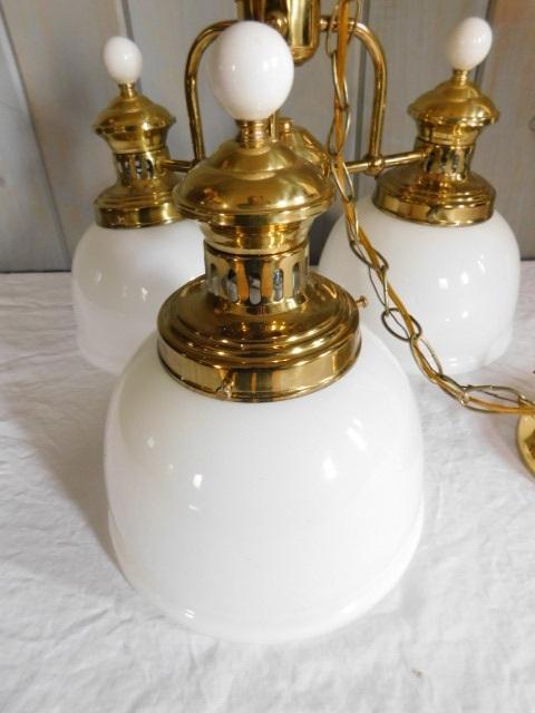 Vintage Brass 3 Arm Chandelier with Milk Glass Shades