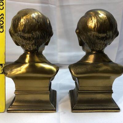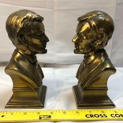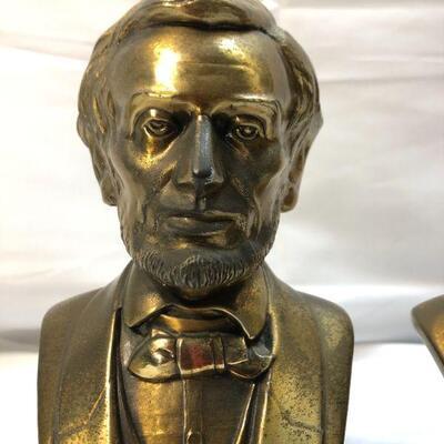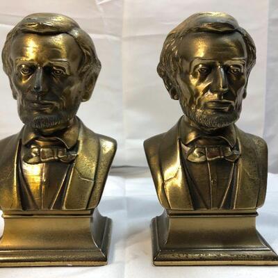 Vintage brass Abraham Lincoln bookends. About 9" height. One does have a spot of damage on the top of his head.
