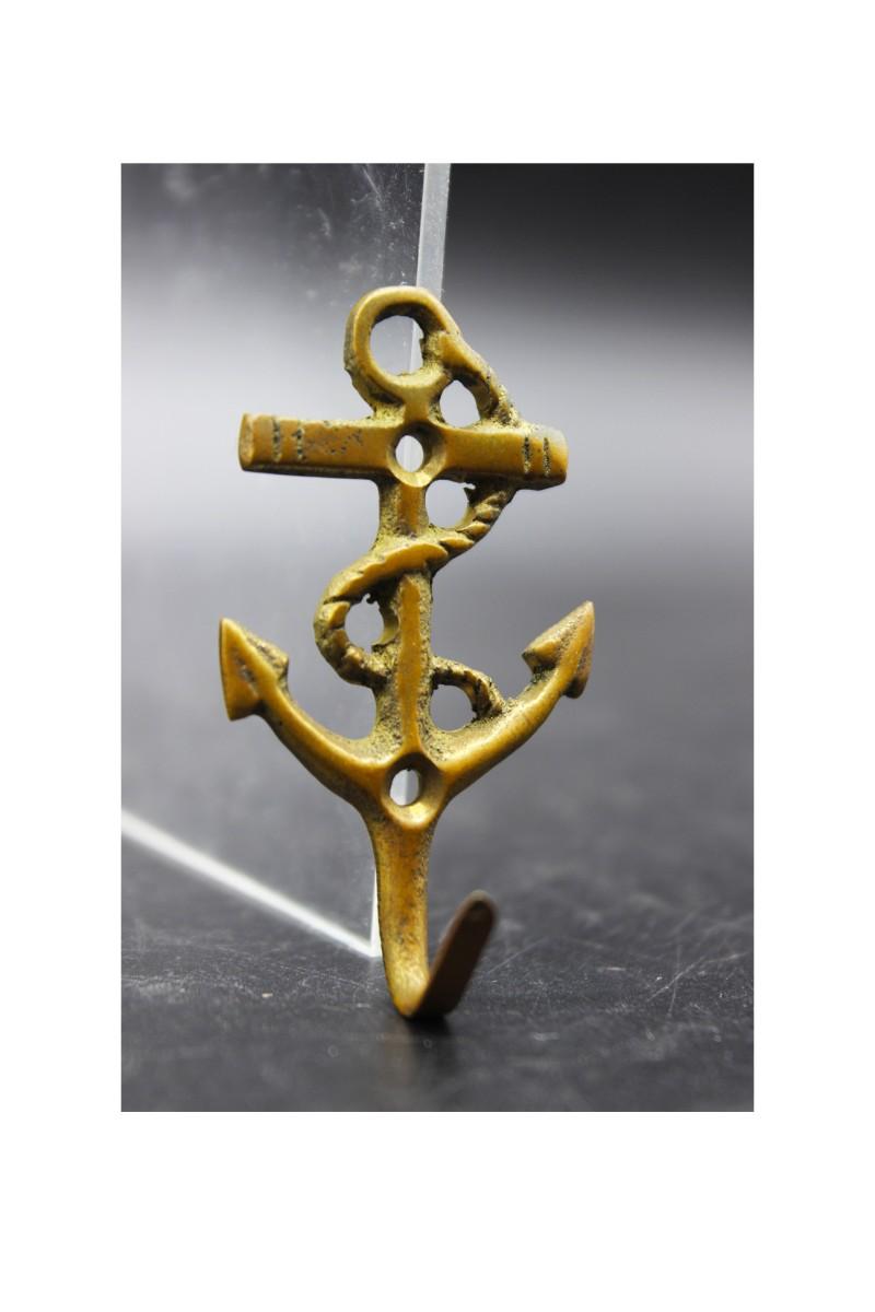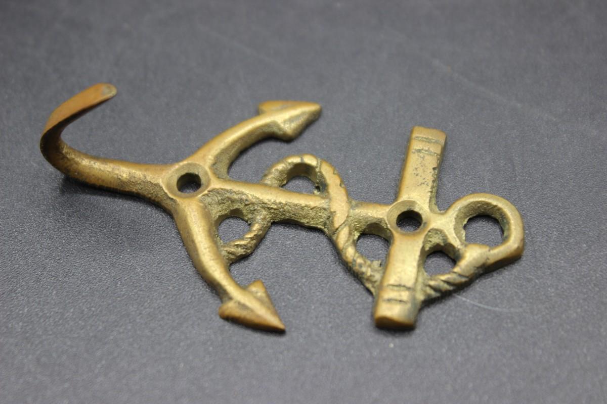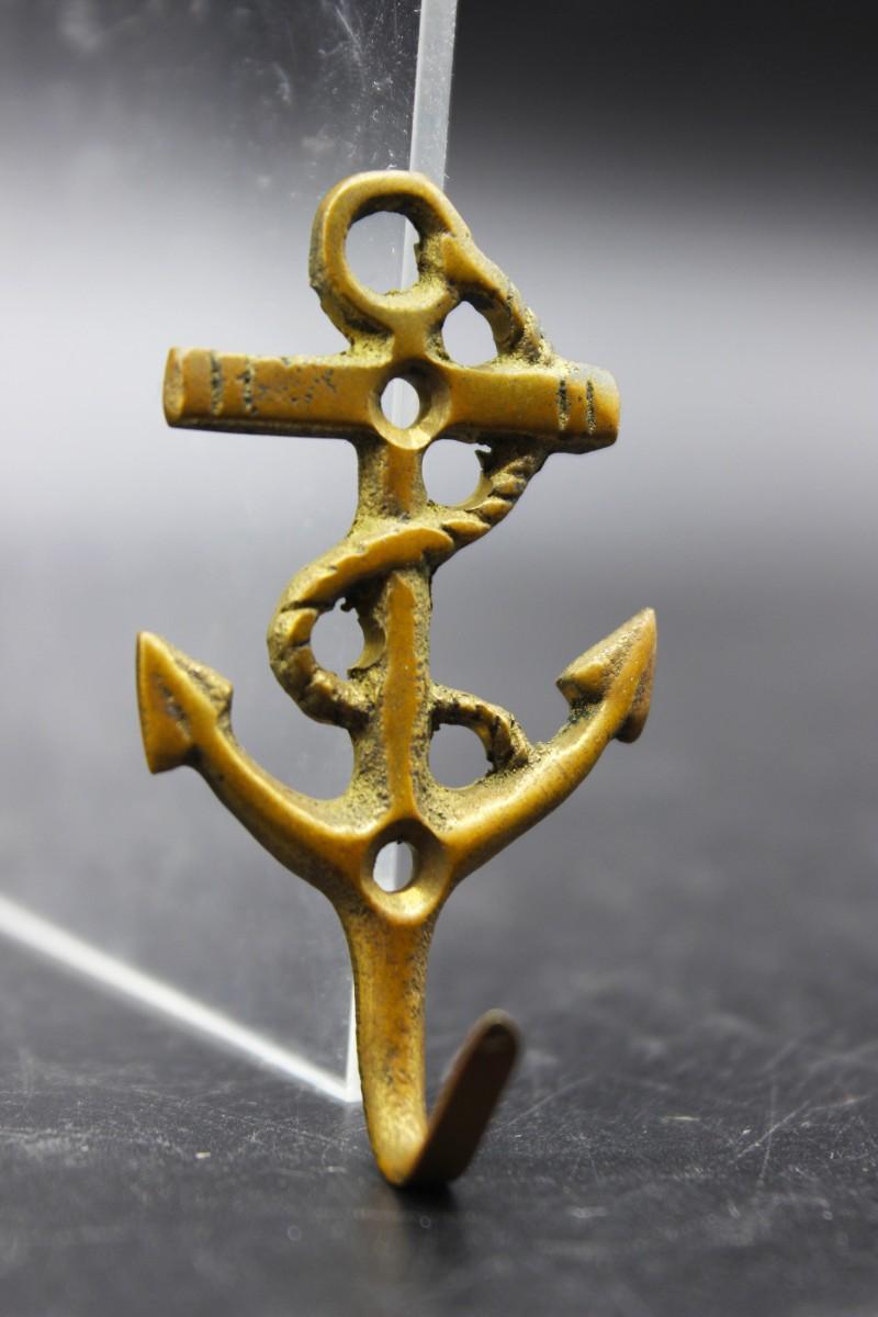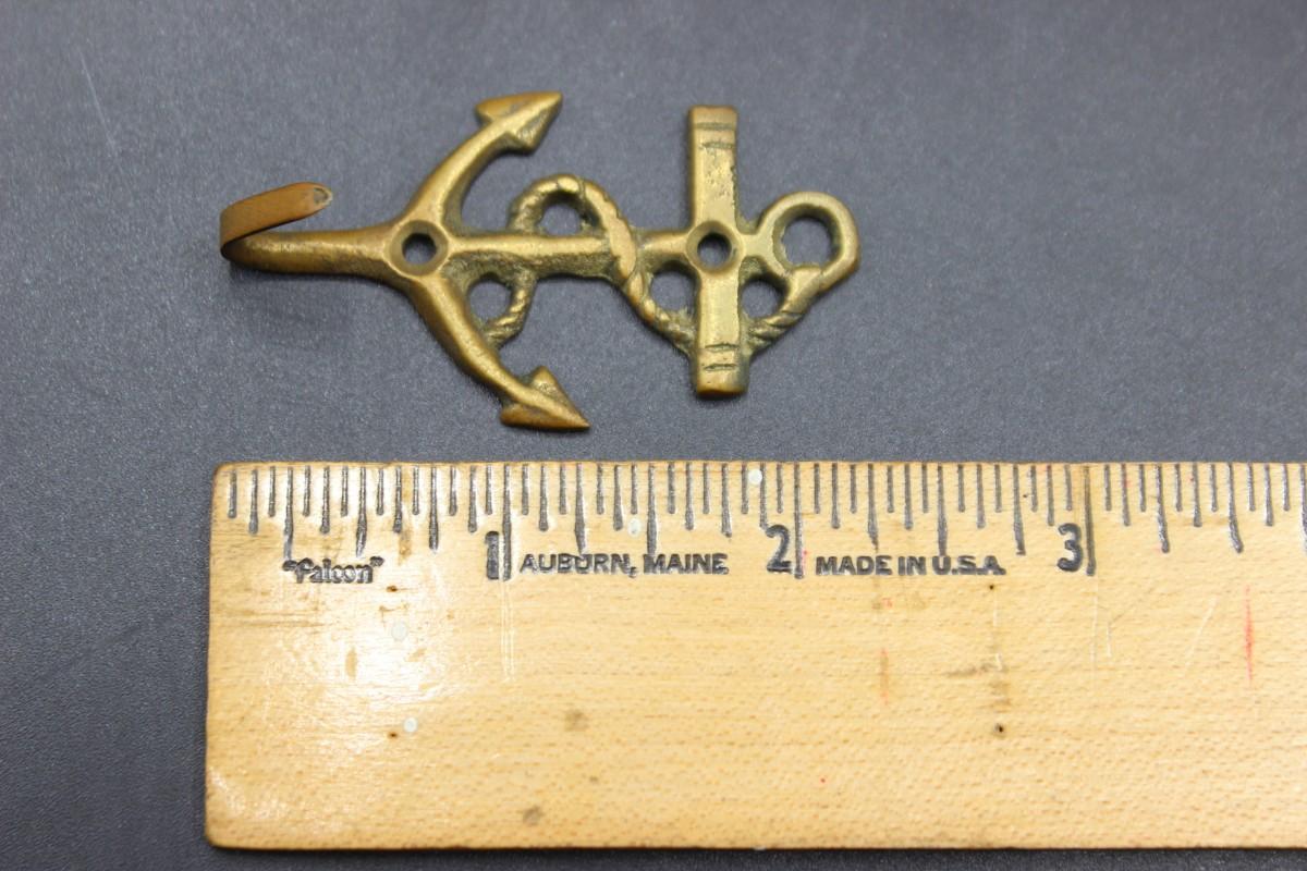 Small vintage brass anchor wall hook. A little over 2" size.