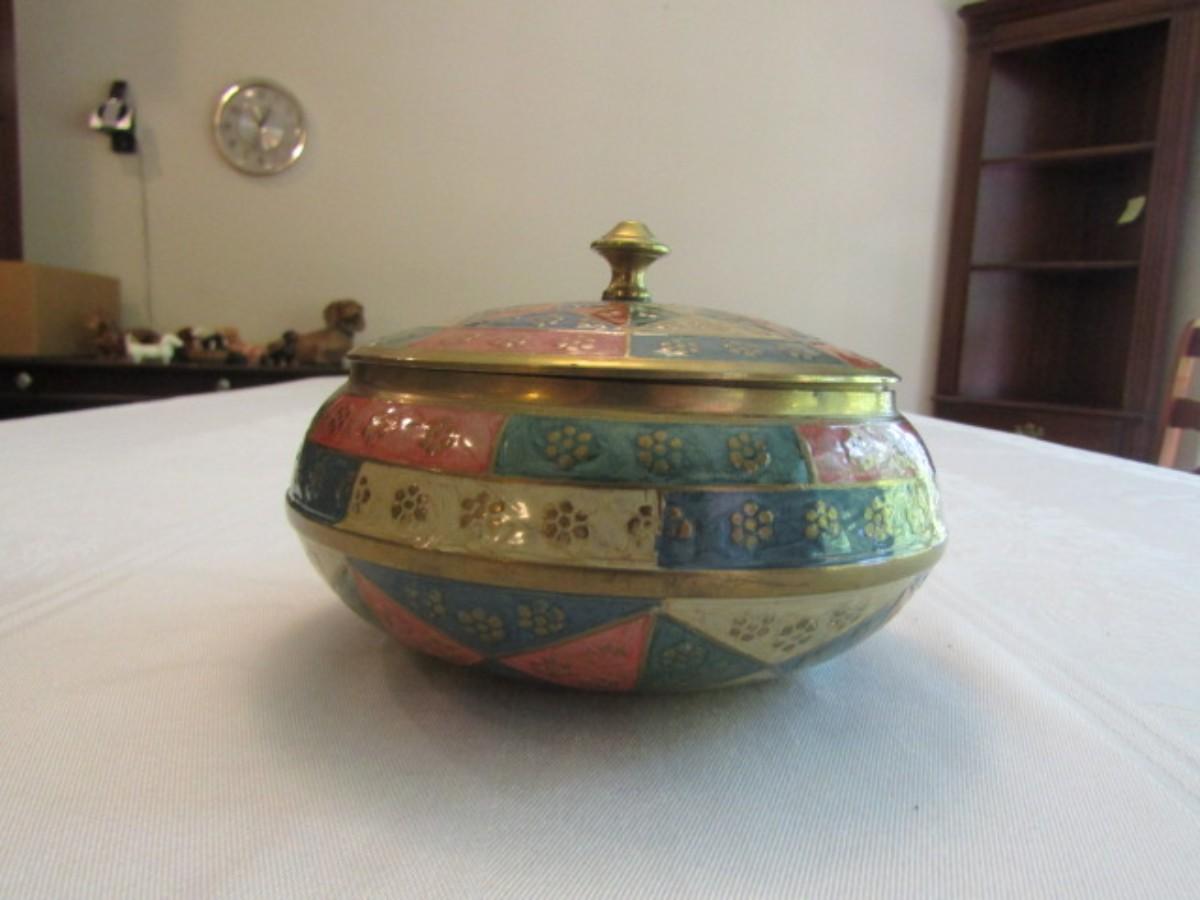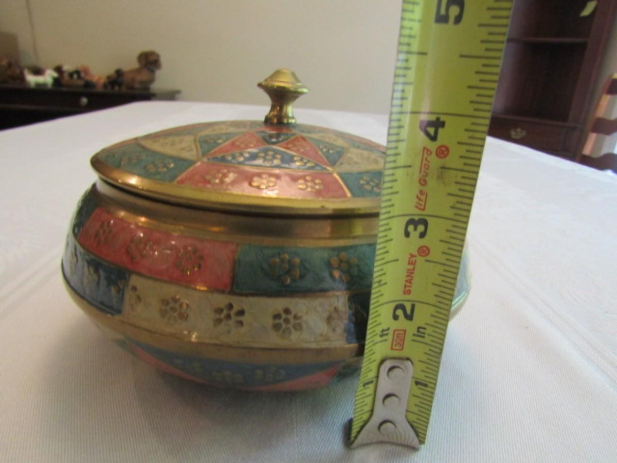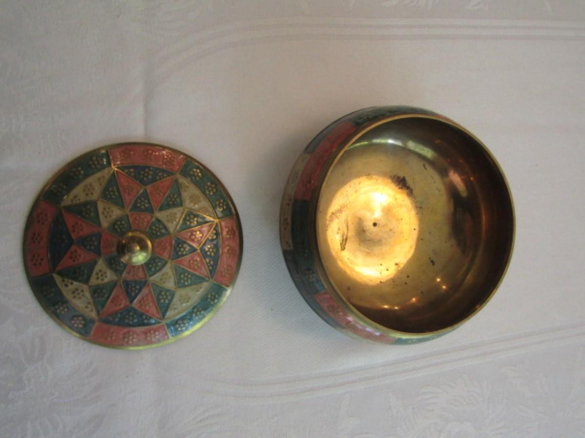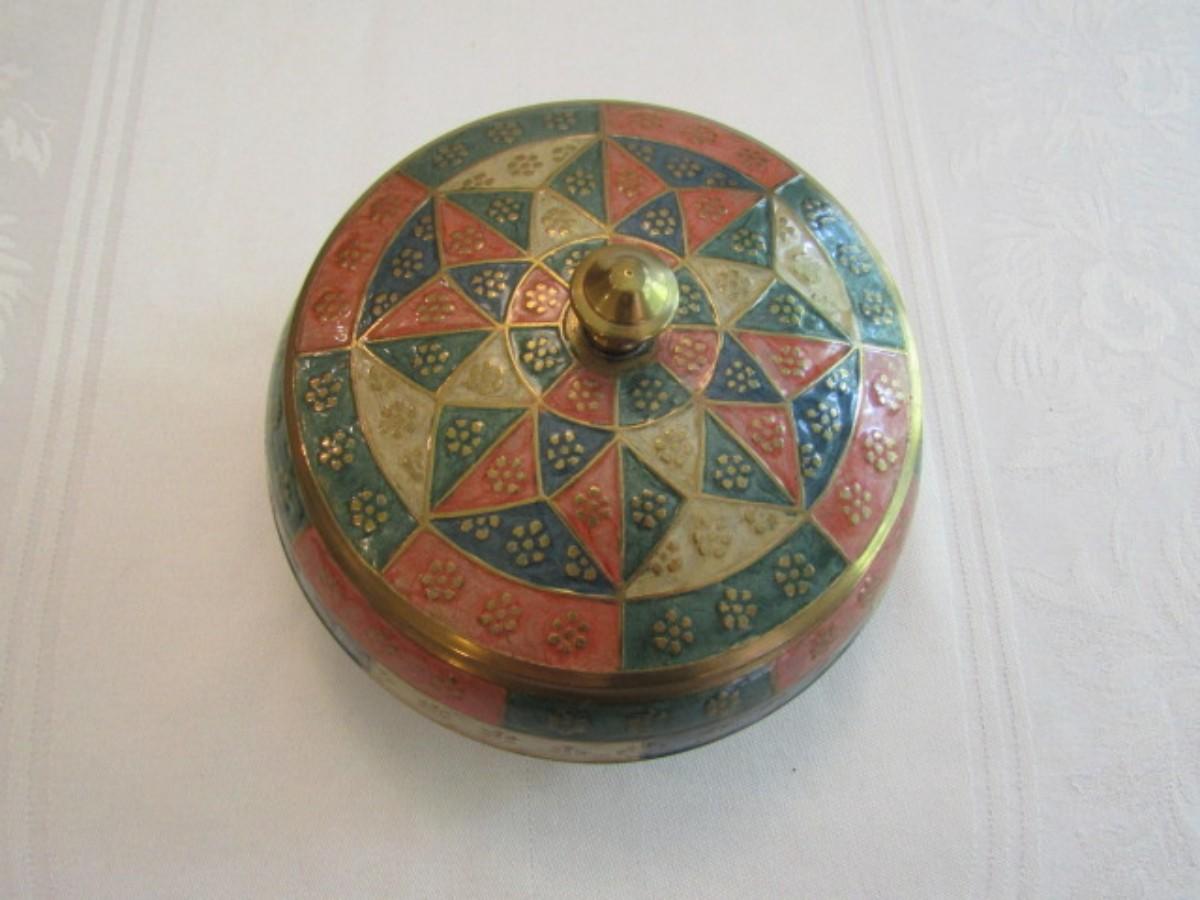 Vintage Brass and Enamel Lidded Trinket Bowl