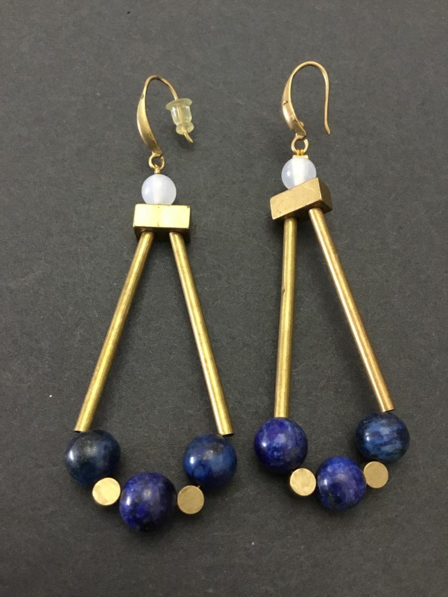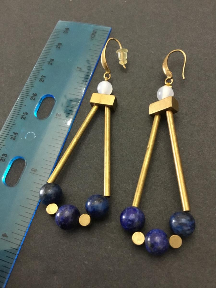 Vintage brass, and lapis stone statement earrings