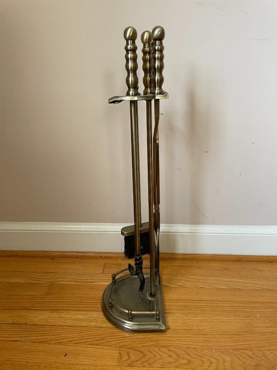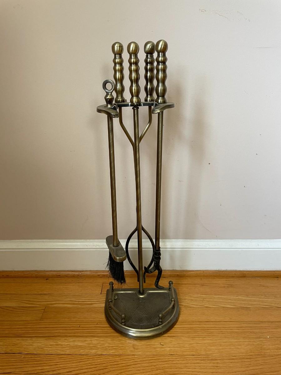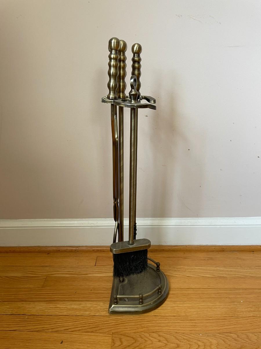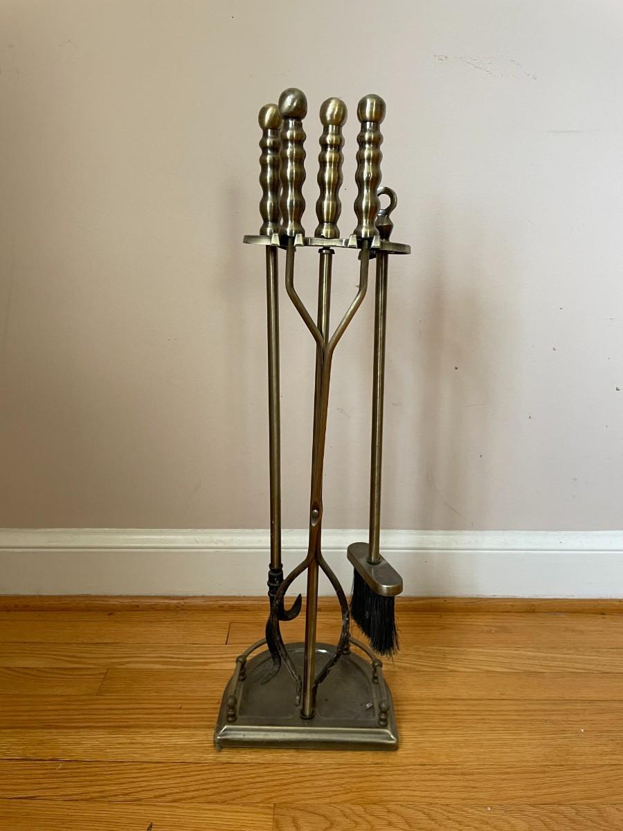 Vintage Brass and Wrought Iron Fireplace Tool Set