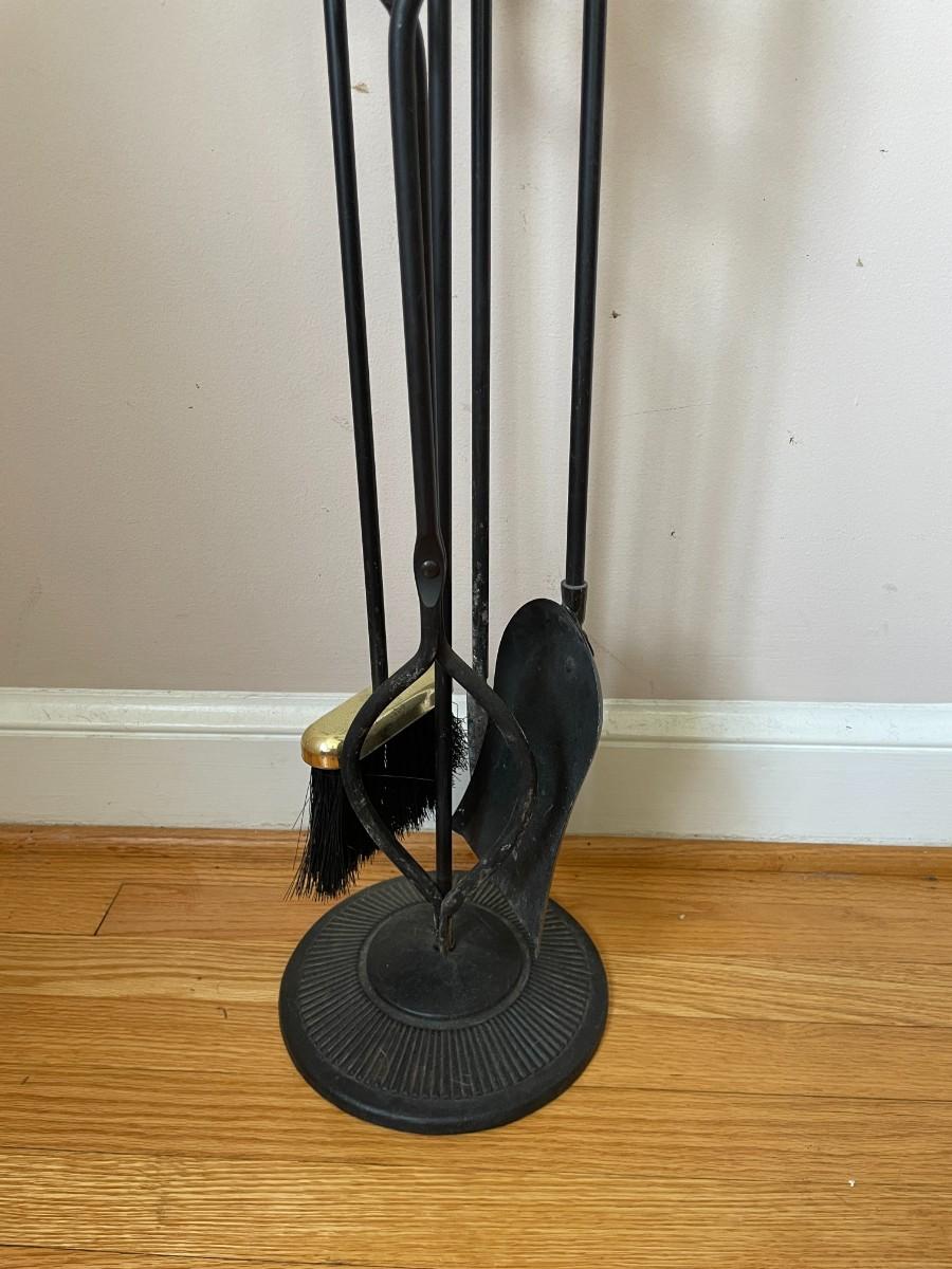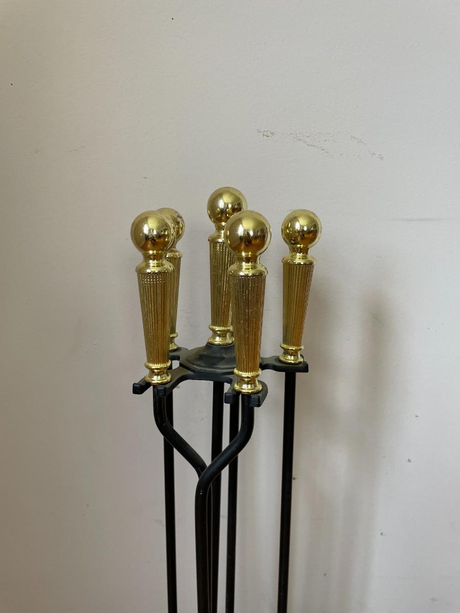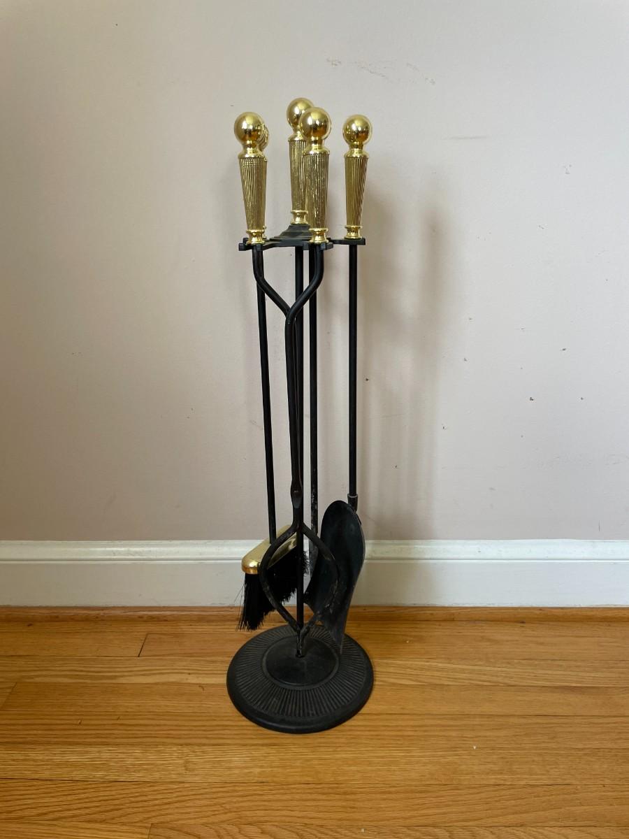 Vintage Brass and Wrought Iron Fireplace Tool Set