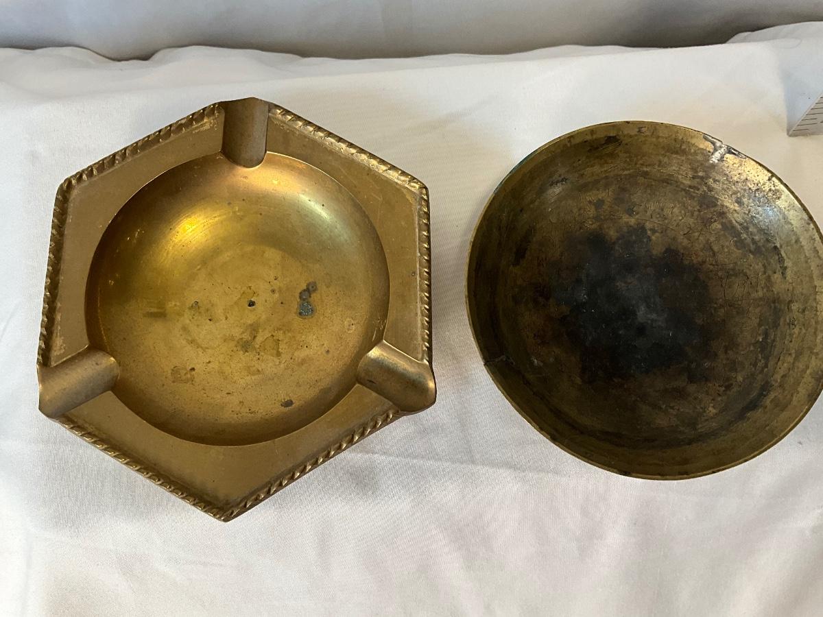 Vintage brass ashtray, and trinket bowl
