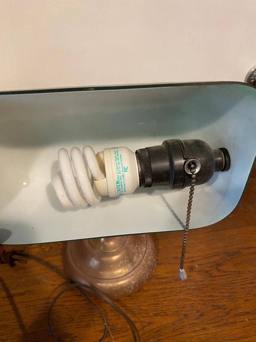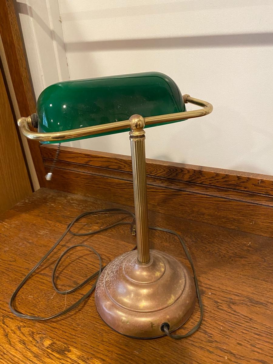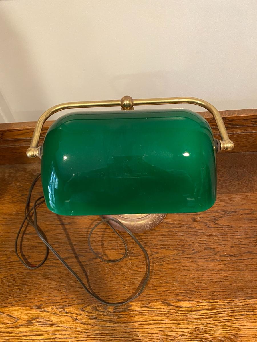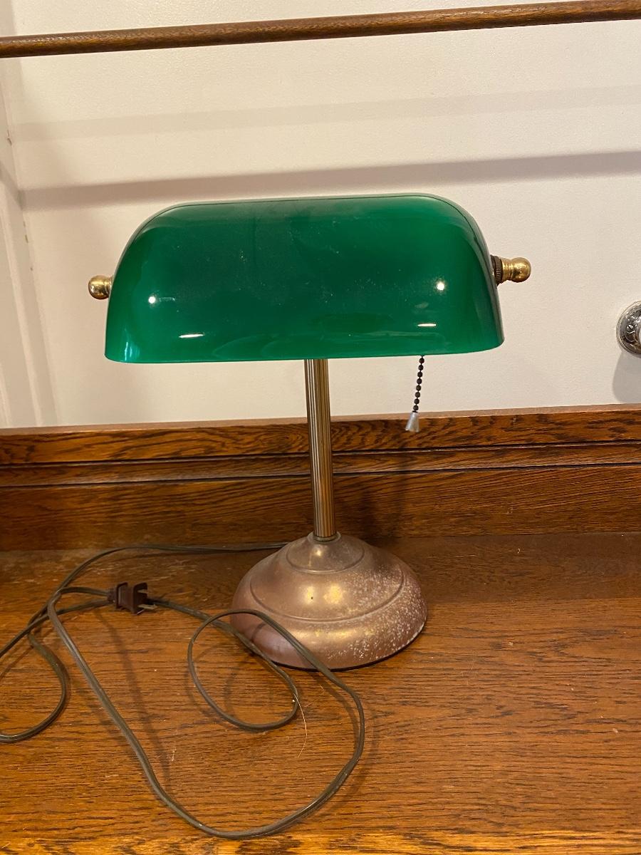 Vintage Brass Base Green Bankers Desk Lamp
