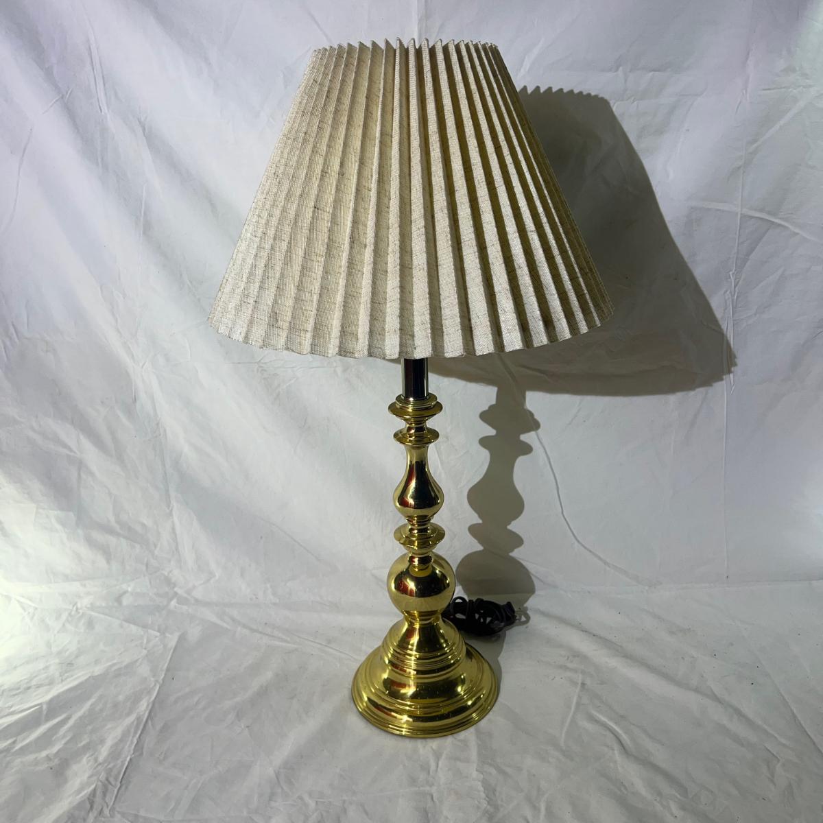 Vintage Brass Base Lamp & cream colored shade, Working!