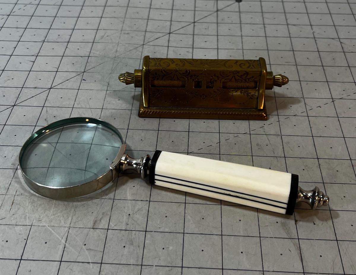 VINTAGE Brass Calendar and Magnifying Glass