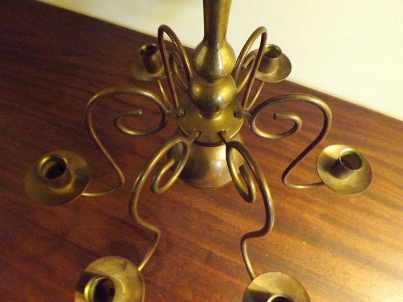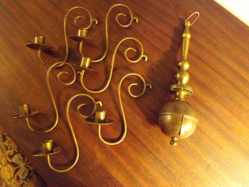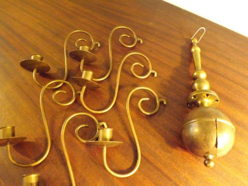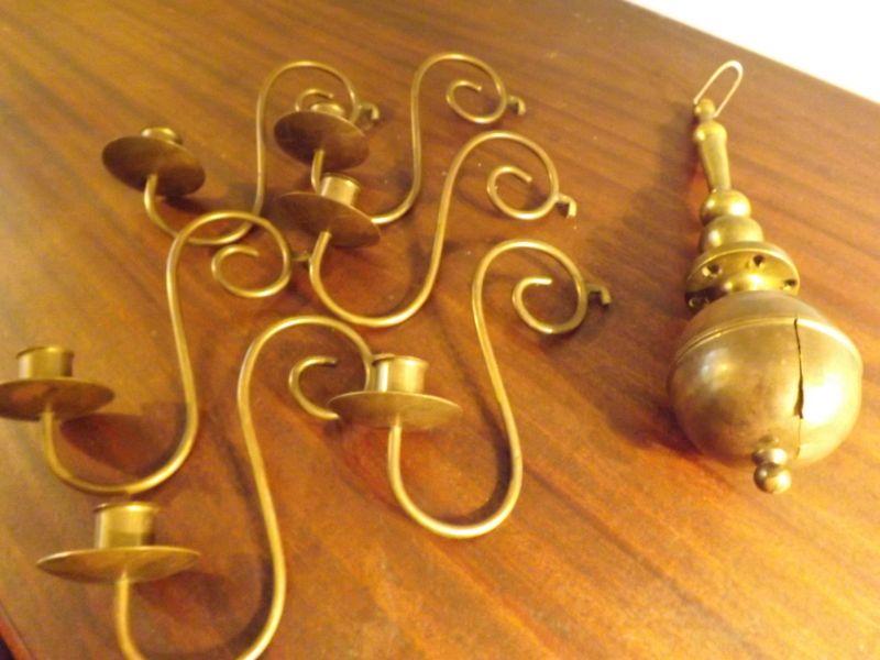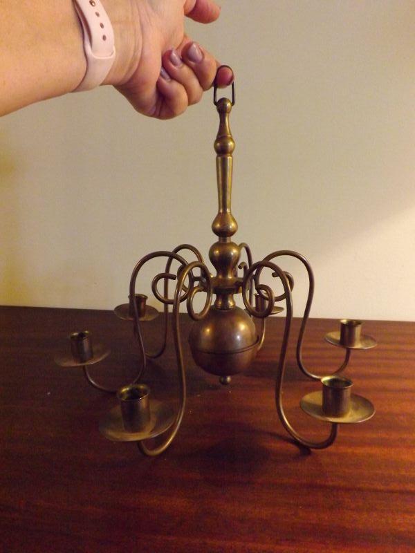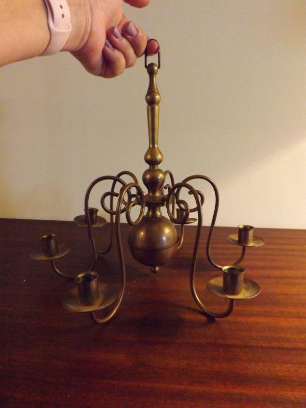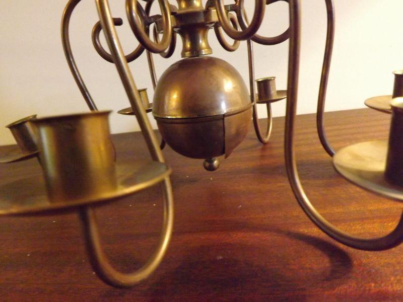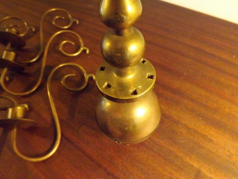 Vintage brass candelabra. The thin brass of the lower ball has a crack in it that could be fixed, **Please read Terms and Conditions before placing a bid. Pick up is Sunday, September 1, 2019 from 10am to 4pm in Williamstown. All sales are final. All sales are as is, where is. Please review all photos. Any props included in photos are not included in listing. All measurements are approximate. From home with cats.
