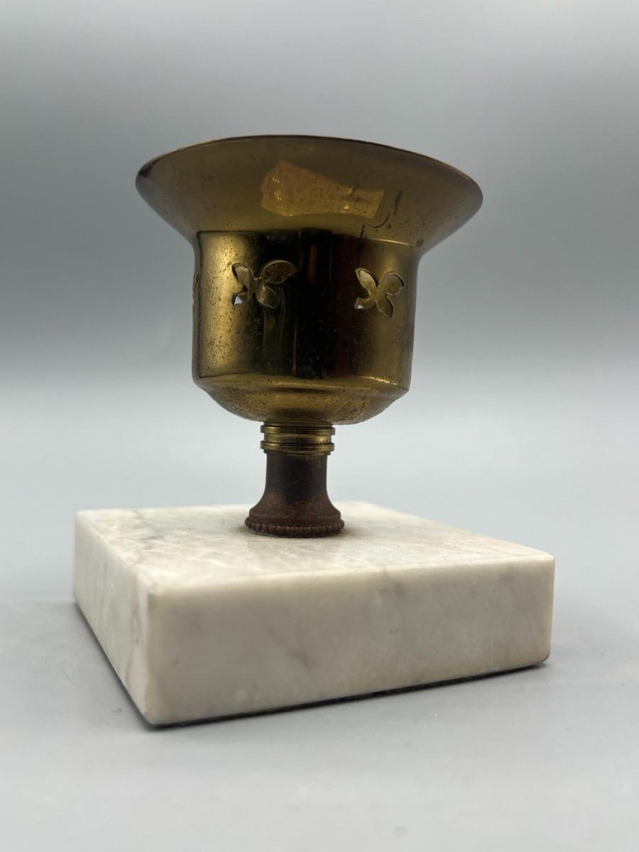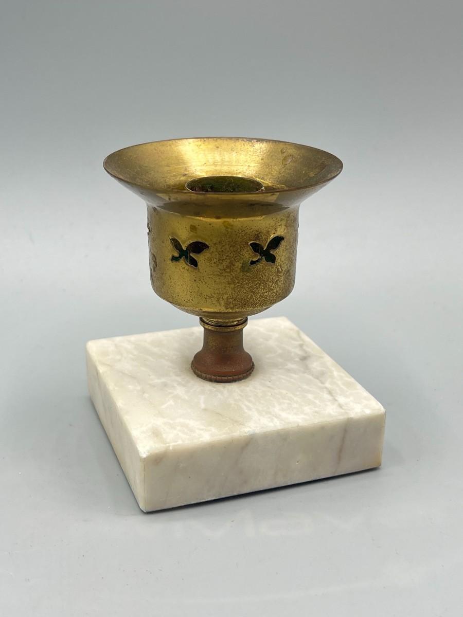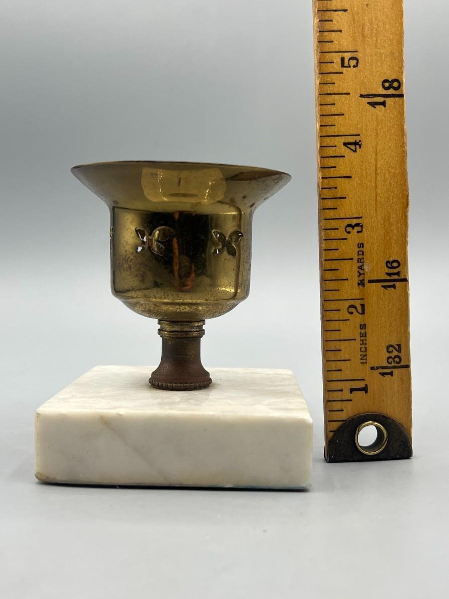 Vintage Brass Candle Holder on Marble Stone Stand, there is some light wear, but there is no significant damage to the candleholder and is in good vintage condition. Check pictures for more details and for sizing.