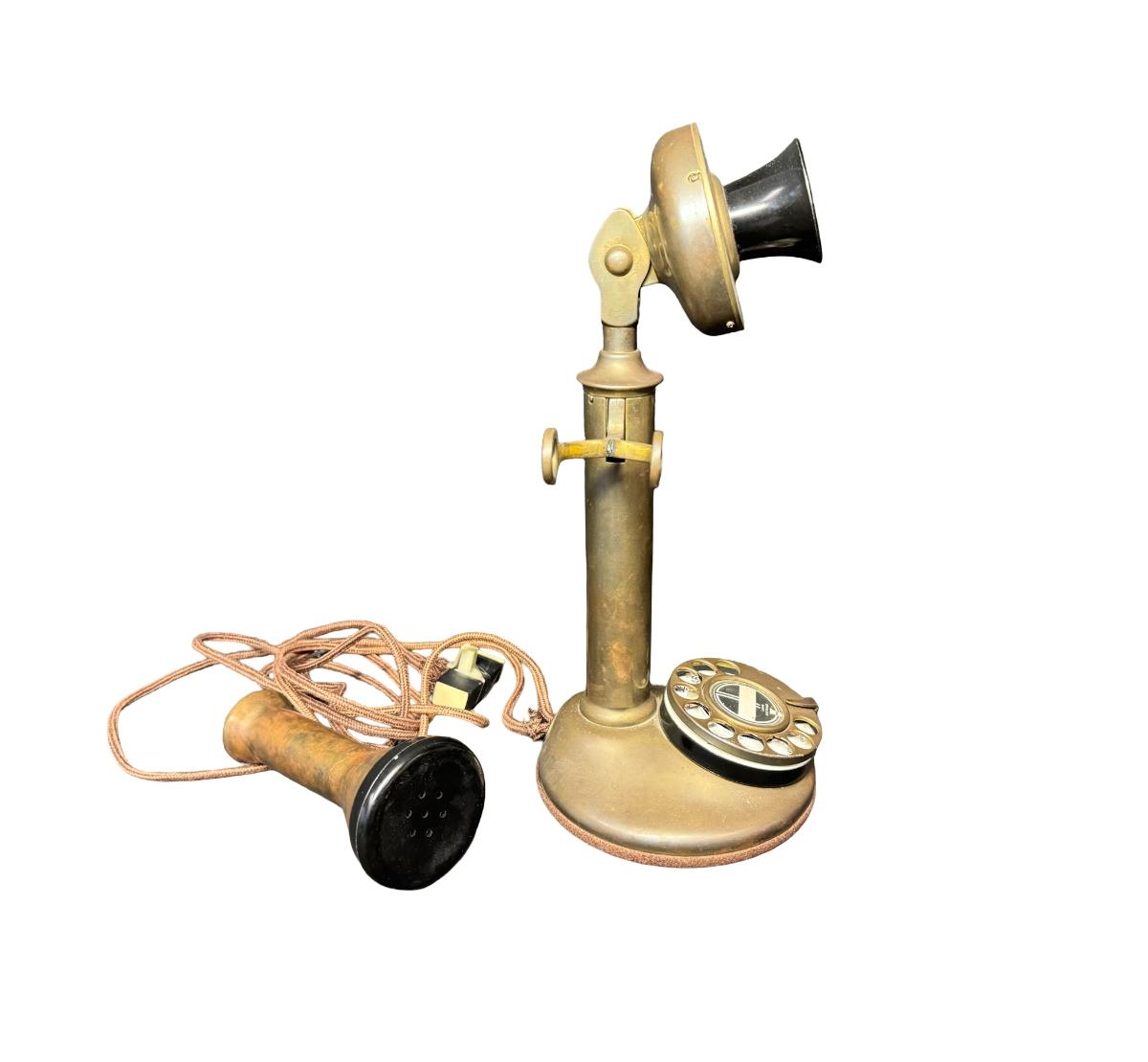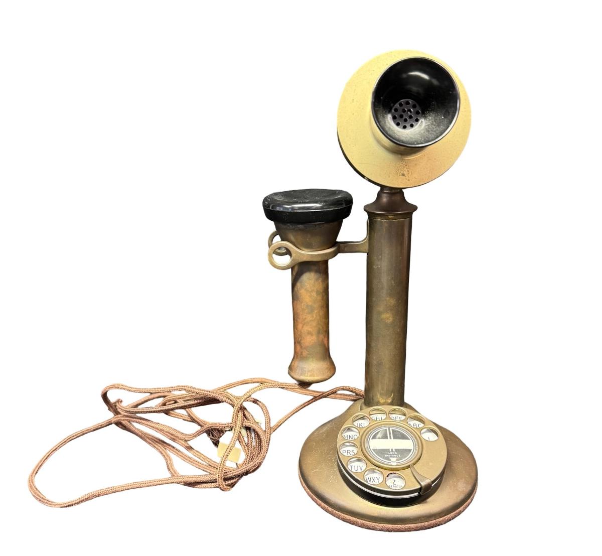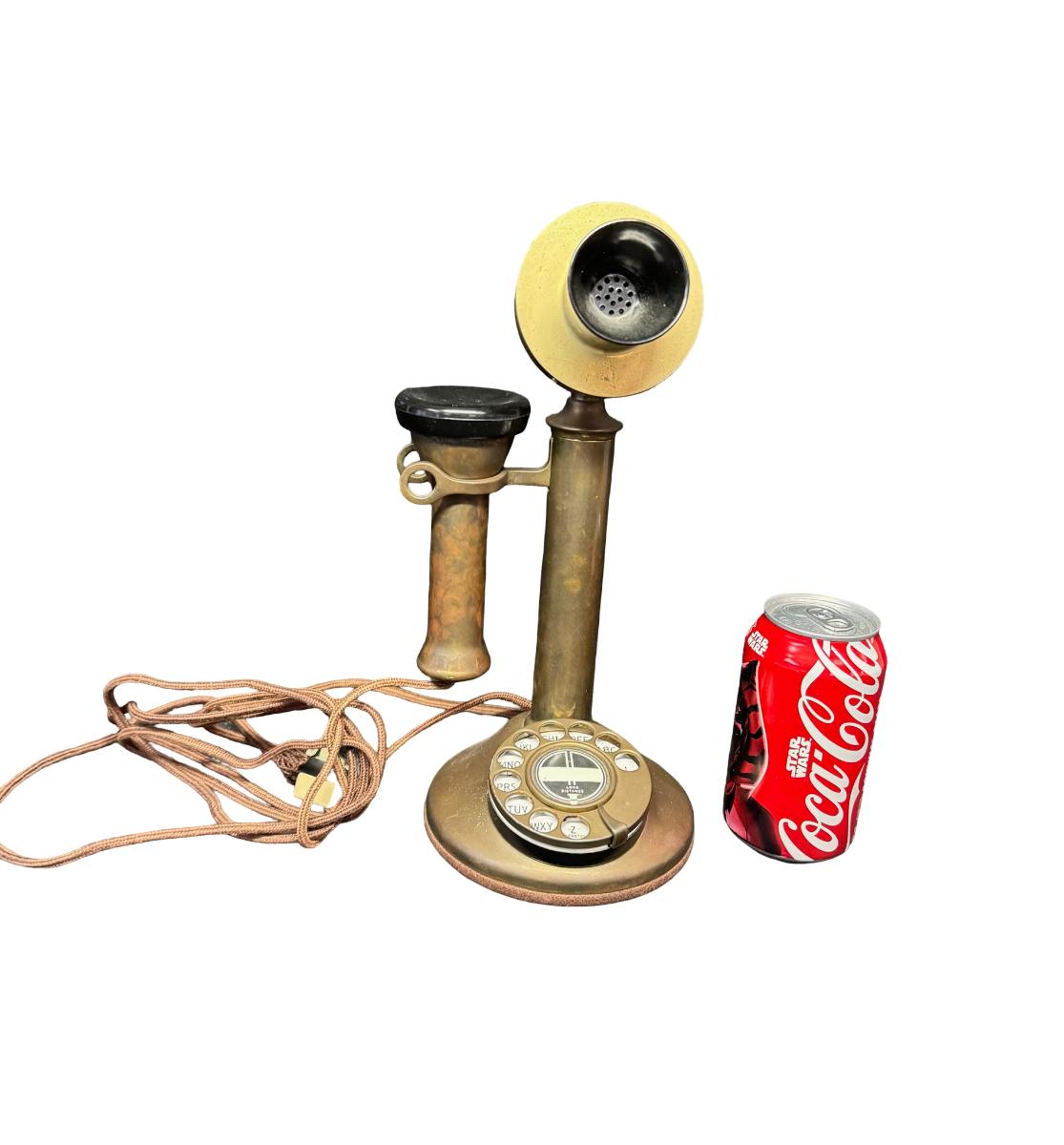 Vintage Brass Candlestick Telephone with Rotary Dial