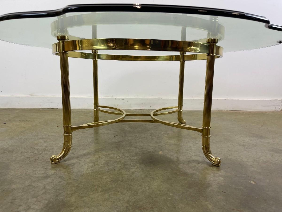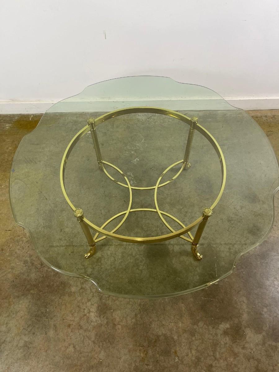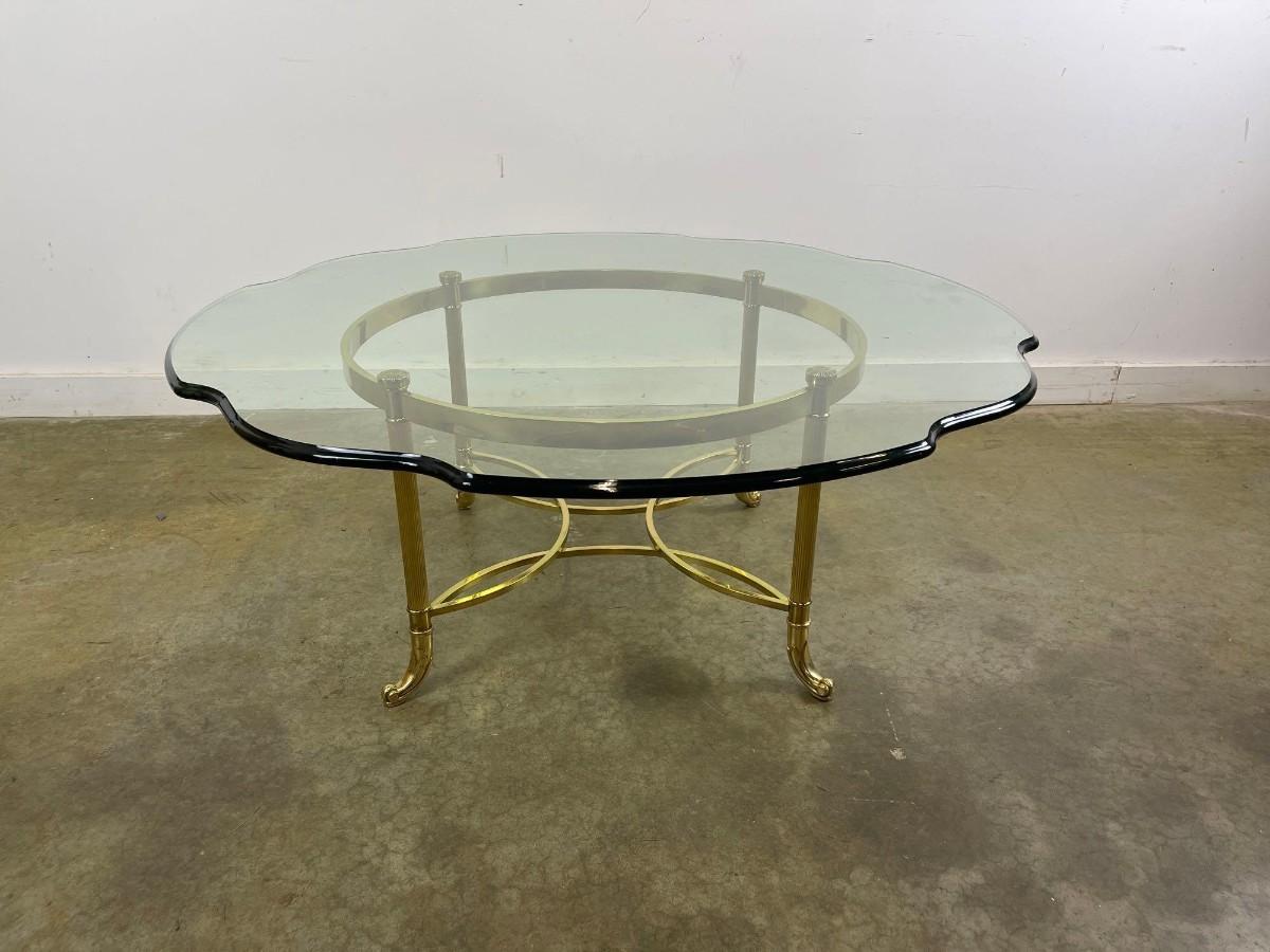 Vintage Brass Cocktail Table With Scalloped Glass Top